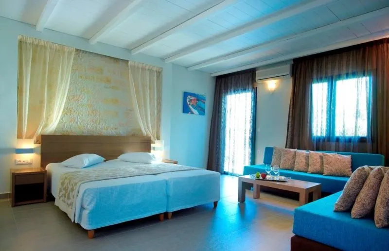 The apart hotel _MINOS VILLAGE is located approximately 350 m from a beach. The city centre is around 300 m away. The hotel has Wi-Fi, a supermarket, parking spaces as well as a TV lounge. Outside there is a children's pool, where sun loungers are available for free. Furthermore, you can relax outdoors on the sun terrace and in a garden. You can store your luggage in the hotel's storage room. There is also a laundry service available at an additional cost to customers. If necessary, you can contact the medical centre. If you want to explore the holiday region, you can use the car rental service close to the hotel (extra fee). Catering Dinner is served with desserts à la carte. Distances