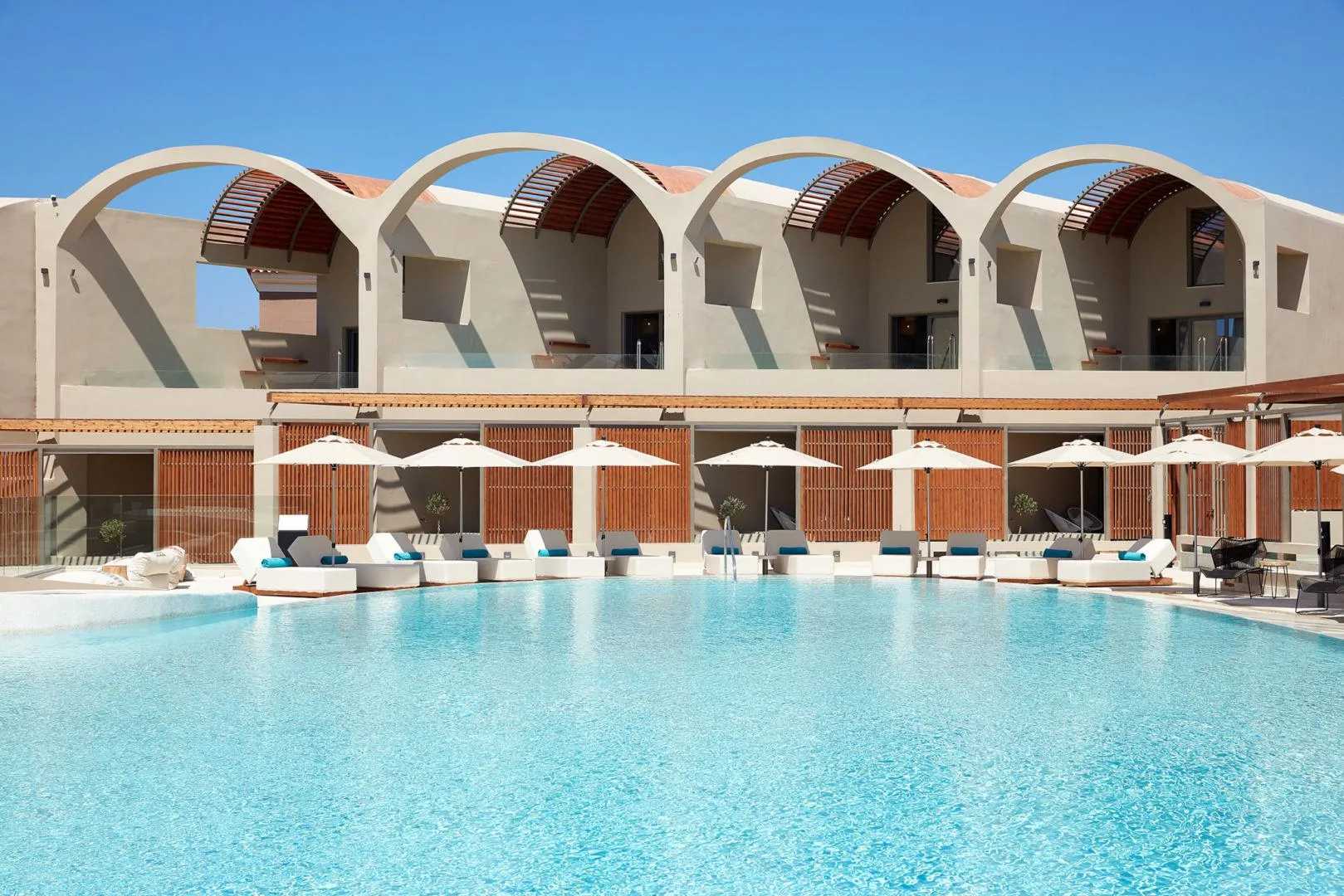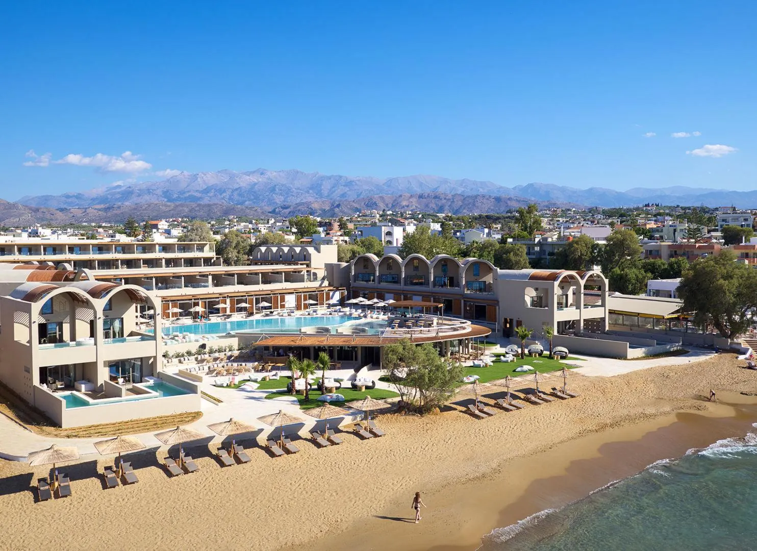 All of the 83 rooms and suites feature either a plunge pool, outdoor Jacuzzi® or a private pool with the option of a sea or pool view making it the perfect choice for couples and small groups of friends.Whichever option you will pick, earthy colors and pale shades, oversized windows and stunning verandas with sweeping views, handpicked furniture and a minimal design that match the natural surroundings, will allow you to loosen up at its indoor living area or to lounge at its private terrace or balcony, completely swept away.A day spend lazily…reading a book by one of the two swimming pools -you can either chill at the quite zone pool or get in a party mood at the vibrant sea view swimming pool with the resident dj’s sounds- or relaxing by the beach with its shallow waters and outstanding views, enjoying a cocktail while the breeze fondles your body…the choice is all yours!Dining at one of the two restaurants is a culinary experience in itself.Whether you are looking for a casual pool side setting at the Raw Bar, where cocktails pair great with your favorite kinds of sushi and sashimi or Zeen Restaurant, savouring delicious Cretan recipes with a twist, Domes Noruz caters to all summer appetites.After your dip, salt-rimmed margaritas or refreshing ice-cold beverages at one of the three bars will keep you cool and then, after a long day of relaxation and sunbathing, while watching the most beautiful sun downs, sip a drink, and let the night roll under a canopy of stars.For some extra invigoration, head over to the Soma Spa -a 500sq.m area-, which is a fabulous wellness center with an indoor pool, Elemis spa treatments and massage rooms, a sauna, a hammam, a beauty salon and a fitness center for your daily workout.