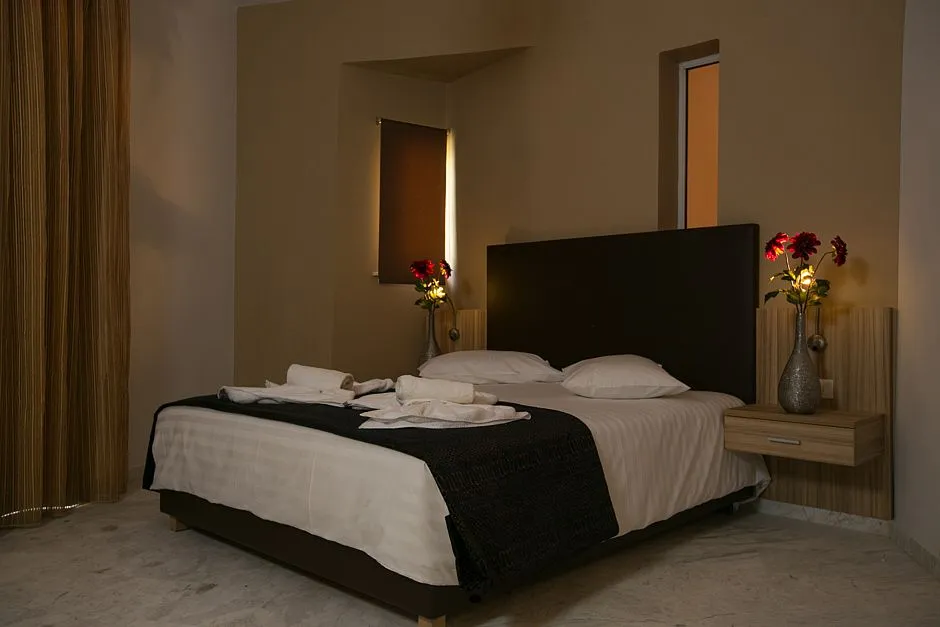 The Hotel offers 30 spacious air-conditioned rooms, decorated with traditional Cretan cultural element and feature a LED television, private furnished balconies and a bathroom with rainfall shower heads. Housekeeping is 6 times per week. The Hotel also offers an outdoor Swimming pool with a poolside snack bar where delicious Cretan dishes are served. The Roof garden restaurant serves buffet Breakfast from 08:00 – 10:00 and buffet dinner from 19:00-21:00.