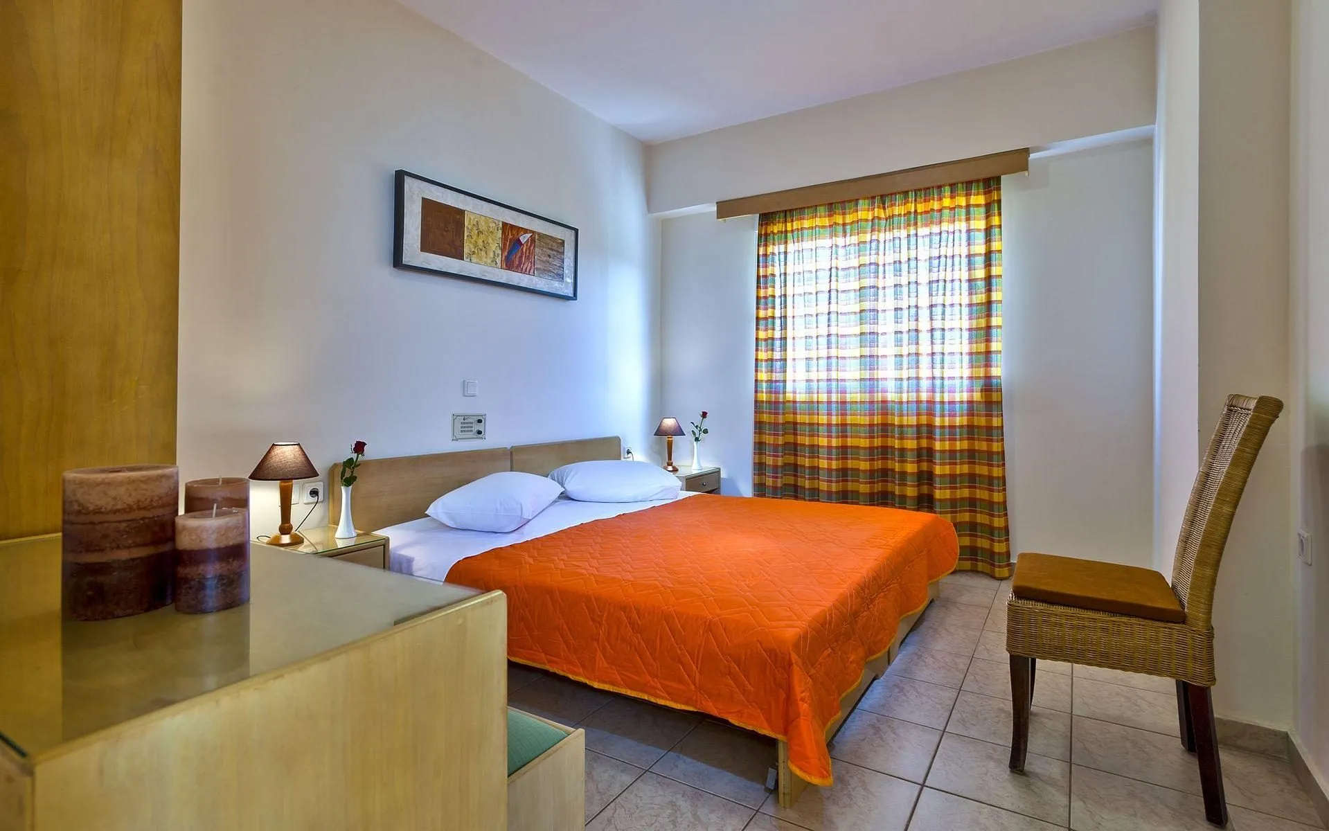 Descriere generală Hotelul Veronica Apartments este situat in Agioi Apostoloi, la cca. 200 m de o plajă cu nisip. Locul de cazare se află la doar câțiva metri de centrul turistic al stațiunii. Orașul Chania este la aprox. 2 km. Puteți face cumpărături în diverse magazine și într-un magazin alimentar aflat la cca. 100 m distanță. La cele mai apropiate baruri și restaurante se poate ajunge într-un timp foarte scurt. Pentru îngrijiri medicale în caz de urgență, există un spital la cca. 6 km distanță. Aeroportul (CHQ) se află la aprox. 16 km. Un alt aeroport (HER) este la cca. 143 km. Facilități Hotelul familiar dispune de 2 etaje și peste 34 camere. Acesta oferă oaspeților săi recepție (check-in de la 02:00, check out până la 12:00), lobby, lift, aer condiționat, seif (contra cost) și parcare (gratuită). Pentru a servi masa vă stau la dispoziție un restaurant și un snackbar. Accesul la internet WiFi este disponibil gratuit pentru oaspeții hotelului. Serviciul de menaj este gratuit. Spălătorie, călcat și serviciul medical sunt disponibile la un cost suplimentar. Piscină Zona exterioară a hotelului include o piscină cu apă dulce precum și o piscină pentru copii integrată în piscina principală. Acolo sunt disponibile umbrele de soare gratuite. Un bar lângă piscină oferă oaspeților băuturi răcoritoare. Catering Mic dejun bufet suedez. Sport/Leisure Oferte pentru sport și divertisment: Fitness. Oferte de wellness: Saună și masaje contra cost. Informații suplimentare Pentru anumite facilități sau activități se pot aplica taxe suplimentare. Unele servicii depind de anotimp și de condițiile climatice locale. Limbi de serviciu: engleză, germană și rusă. Carduri de credit: card EC, Visa, American Express și Euro/MasterCard. Standard Apartment: Cameră cu living, o canapea extensibilă ca pat suplimentar, pat pentru bebeluși (gratuit), pardoseală cu gresie, chicinetă, încălzire controlată centralizat, ceainic (gratuit), balcon sau terasă, acces la internet (gratuit), seif (contra cost), TV prin satelit și canale locale precum și aer condiționat reglabil individual. Baie cu cadă. Prosoapele se schimbă de 3 ori pe săptămână. Dimensiune: 40 m². Standard Studio (Economy): Dotate cu o canapea extensibilă ca pat suplimentar, pardoseală cu gresie, chicinetă, încălzire controlată centralizat, ceainic (gratuit), acces la internet (gratuit), seif (contra cost), TV prin satelit și canale locale precum și aer condiționat reglabil individual. Baie cu cadă. Prosoapele se schimbă de 3 ori pe săptămână. Dimensiune: 25 m².