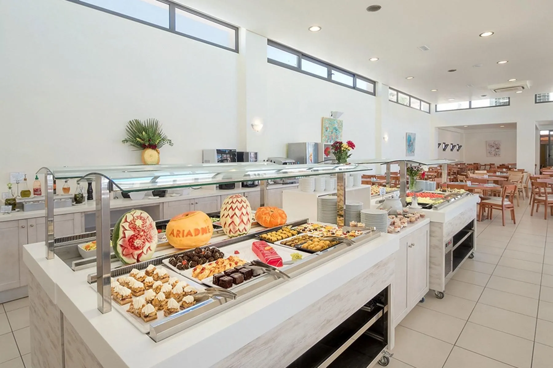 Descriere generală Hotelul Ariadne Beach Ag. Nikolaos, care este deosebit de popular printre cei aflați în luna de miere, este situat la cca. 1 km de Agios Nikolaos (Heraklion cca. 60 km). Cea mai apropiată plajă, o plajă cu pietriș se află la doar câțiva metri distanță. Pe plajă sunt disponibile umbrele de soare și șezlonguri la un cost suplimentar. Centrul turistic al stațiunii se află la aprox. 1,2 km. Magazinele sunt la aprox. 1,2 km de hotel, și veți găsi un supermarket la cca. 800 m. De asemenea, cele mai apropiate baruri și restaurante sunt la cca. 1,2 km. O discotecă aflată la aprox. 1,2 km vă invită la dans. De asemenea, la cca. 1,2 km de hotel este un cinematograf. Există posibilitatea de a închiria mașini și motociclete. De asemenea, aveți în apropiere o stație de autobuz și o stație de taxi (cca. 1,2 km) cea ce vă oferă mobilitate în timpul vacanței. Pentru îngrijiri medicale în caz de urgență, există un spital la cca. 1,2 km distanță. Aeroportul (CHQ) se află la aprox. 208 km. Un serviciu de transfer (posibil contra cost) face legătura între hotel și aeroport. Un alt aeroport (HER) este la cca. 65 km. Facilități Hotelul dispune de 2 etaje și peste 149 camere. Acesta oferă oaspeților săi recepție (check-in de la 14:00, check out până la 12:00), lobby cu bar, aer condiționat, seif (contra cost), minimarket și parcare (gratuită). Pentru a satisface apetitul aveți la dispoziție în hotel 2 restaurante cu aer condiționat și un snackbar. Accesul la internet WiFi este disponibil gratuit pentru oaspeții hotelului. Serviciul de menaj este gratuit. Room service, spălătorie, călcat și serviciul medical sunt disponibile la un cost suplimentar. Este posibil să se perceapă un cost suplimentar pentru serviciul de concierge. Piscină Zona exterioară a hotelului include 3 piscine cu apă sărată. La piscine sunt disponibile gratuit șezlonguri și umbrele de soare. Un bar lângă piscină oferă oaspeților băuturi răcoritoare (deschis între orele 10:30 - 18:00). Catering Mic dejun (între orele 07:30 - 10:30) bufet suedez. Demipensiunea include micul dejun și prânzul sau cina. All Inclusive: micul dejun, prânzul și cina. Micul dejun, prânzul și cina pot fi servite numai în anumite restaurante. Cocktailuri. Băuturi răcoritoare (10:30 - 22:45), cafea și ceai (10:30 - 22:00), prăjituri și produse de patiserie (16:00 - 17:30), aperitive (10:30 - 12:00), bere (10:30 - 22:45), vin (10:30 - 22:45), băuturi alcoolice naționale (10:30 - 22:45), anumite băuturi alcoolice importate (între orele 10:30 - 22:30, în anumite restaurante sau baruri), 1 masă pe sejur în restaurantul à la carte și internet gratuit. All Inclusive Plus: micul dejun, prânzul și cina. În plus băuturi răcoritoare (10:00 - 18:00), cafea, ceai (10:00 - 18:00), aperitive (10:00 - 18:00) și băuturi alcoolice naționale (10:00 - 18:00). Bere, băuturi alcoolice internaționale și prăjituri și produse de patiserie. Minibar gratuit. 1 masă în restaurantul à la carte. All Inclusive Light include micul dejun, prânzul și cina. Băuturi răcoritoare (11:00 - 22:45). În plus aperitive, bere, vin, băuturi alcoolice naționale și internaționale, cafea și ceai și prăjituri și produse de patiserie. Sport/Leisure Este disponibil: Darts (gratuit), biliard (contra cost), tenis (posibil contra cost, la cca. 150 m distanță), fitness și tenis de masă (gratuit). La cca. 400 m de hotel, sunt oferite sporturi nautice (unele de către furnizori locali). Există serviciu de închiriere de biciclete. Oferte de wellness: Baie turcească contra cost. Zonă de spa posibil contra cost. Divertisment pentru adulți: muzică live. Informații suplimentare Pentru anumite facilități sau activități se pot aplica taxe suplimentare. Unele servicii depind de anotimp și de condițiile climatice locale. Nu se servește alcool în acest hotel. Limbi de serviciu: engleză, italiană și greacă. Carduri de credit: Euro/MasterCard și Visa. Standard Bungalow: Cameră cu pat dublu, pat twin sau pat single, o canapea extensibilă ca pat suplimentar, pardoseală cu gresie, ceainic (gratuit), balcon sau terasă, acces la internet (gratuit) și TV prin satelit precum și aer condiționat reglabil individual. Baie cu cadă și duș. Prosoapele se schimbă de 3 ori pe săptămână. Dimensiune: 16 m². Superior Bungalow (Seitlicher Meerblick): Cameră cu pat dublu, pat twin sau pat single, o canapea extensibilă ca pat suplimentar, pardoseală cu gresie, ceainic (gratuit), balcon, acces la internet (gratuit), seif (contra cost) și TV prin satelit precum și aer condiționat reglabil individual. Baie cu cadă și duș. Prosoapele și lenjeria de pat se schimbă de 3 ori pe săptămână. Dimensiune: 20 m². JuniorSuite (Seitlicher Meerblick): Cameră cu pat twin sau pat single, o canapea extensibilă ca pat suplimentar, pardoseală cu gresie, ceainic (gratuit), balcon, acces la internet (gratuit), seif (contra cost), aparat de cafea cu capsule (gratuit) și TV prin satelit precum și aer condiționat reglabil individual. Baie cu cadă și duș. Prosoapele și lenjeria de pat se schimbă de 3 ori pe săptămână. Dimensiune: 20 m². Suite (Seitlicher Meerblick): Cameră cu living, pat dublu, pat twin sau pat single, o canapea extensibilă ca pat suplimentar, pardoseală cu gresie, ceainic (gratuit), balcon, acces la internet (gratuit), seif (contra cost), aparat de cafea cu capsule (gratuit) și TV prin satelit precum și aer condiționat reglabil individual. Baie cu cadă și duș. Prosoapele și lenjeria de pat se schimbă de 3 ori pe săptămână. Dimensiune: 25 m².