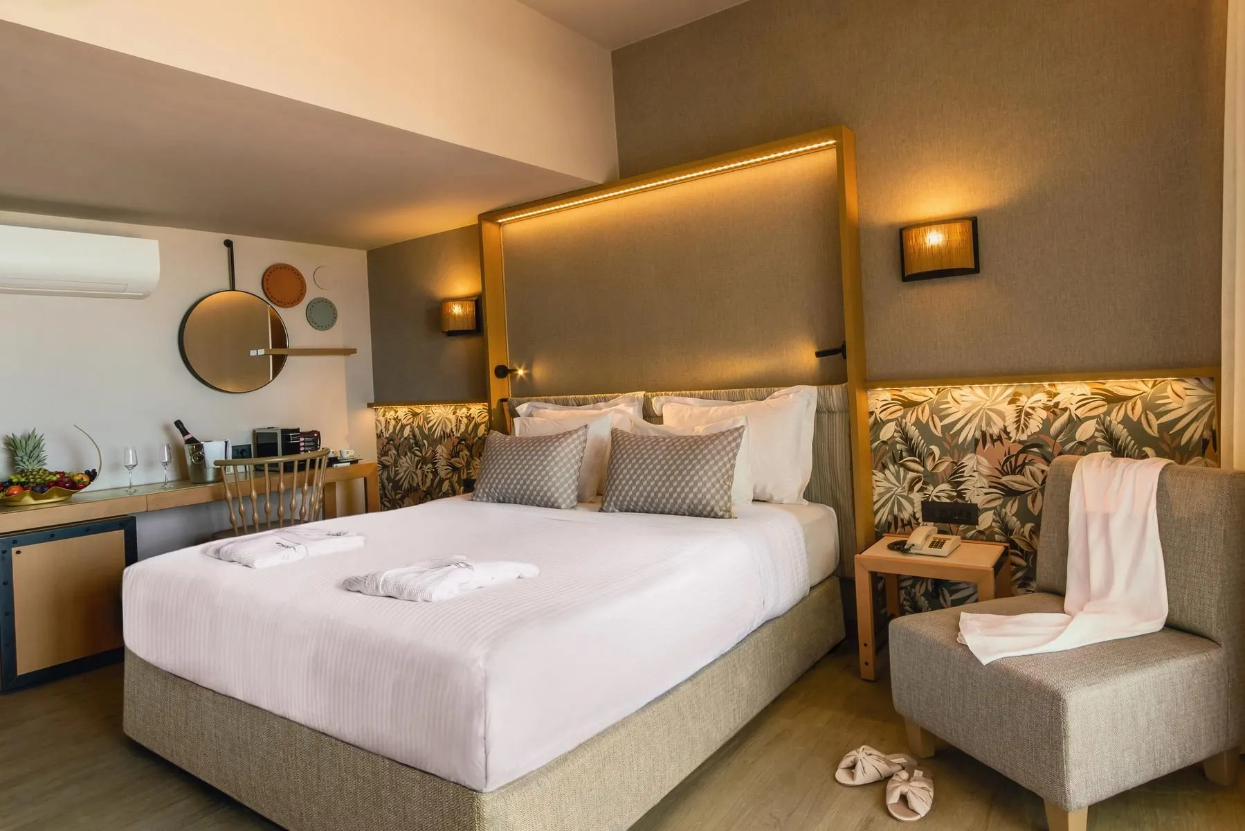 Descriere generală Hotelul Mirabello Bay Luxury Resort este situat direct pe o plajă cu nisip/pietriș. Pe plajă sunt disponibile gratuit șezlonguri și umbrele de soare. Centrul turistic al stațiunii se află la aprox. 2 km. Orașul Agios Nikolaos este la aprox. 2 km (Elounda cca. 8 km). Diverse magazine se află la aprox. 2 km de hotel, și chiar lângă hotel este un supermarket. Cele mai apropiate baruri și restaurante sunt la cca. 1 km distanță. O discotecă aflată la aprox. 2 km vă invită la dans. De asemenea, la cca. 2 km de hotel este un cinematograf. Următoarele atracții pot fi accesate de la hotel: Spinalonga island (cca. 8 km), Knossos Palace (cca. 66 km), Cave of Zeus (cca. 57 km), Lassithi Plateau (cca. 44 km) și Lake Voulismeni (cca. 2 km). Există posibilitatea de a închiria mașini și motociclete. De asemenea, aveți în apropiere o stație de autobuz (direct la hotel) cea ce vă garantează mobilitatea în vacanță. Pentru îngrijiri medicale în caz de urgență, există un spital la cca. 2 km distanță. Aeroportul (CHQ) se află la aprox. 208 km. Un serviciu de transfer (contra cost) face legătura între hotel și aeroport. Un alt aeroport (HER) este la cca. 65 km. Facilități Resortul, care a fost complet renovat în 2023, dispune de 6 etaje și peste 342 camere. Acesta oferă oaspeților săi recepție (check-in de la 15:00, check out până la 11:00), lobby cu bar, 3 lifturi, aer condiționat, seif (gratuit), chioșc, minimarket, alte magazine, cinematograf, parcare (gratuită) și birou de schimb valutar. Pentru a servi masa aveți la dispoziție 5 restaurante cu aer condiționat. Accesul la internet WiFi este disponibil gratuit pentru oaspeții hotelului. În plus, hotelul oferă o zonă de conferințe cu un total de 600 de locuri și cu acces la internet. Pentru oaspeții care depind de un scaun cu rotile, hotelul oferă un lift accesibil pentru scaune cu rotile și acces fără bariere. Serviciul de menaj este gratuit. Room service, spălătorie, călcat și serviciul medical sunt disponibile la un cost suplimentar. Piscină În grădinile acestui hotelul cu parc acvatic și tobogan de apă există 3 piscine cu apă sărată precum și o piscină separată pentru copii. Acolo sunt disponibile gratuit șezlonguri și umbrele de soare. La barul piscinei va puteți bucura de o băutura răcoritoare (deschis între orele 10:00 - 18:00). Catering Mic dejun (între orele 07:30 - 10:30) bufet suedez. Demipensiunea include micul dejun și cina. All Inclusive: micul dejun, prânzul și cina. Micul dejun, prânzul și cina pot fi servite numai în anumite restaurante. Sunt disponibile și meniuri pentru copii. Cocktailuri. Băutură de bun venit, mic dejun târziu (între orele 10:30 - 11:30), băuturi răcoritoare (10:00 - 23:00), cafea și ceai (10:00 - 23:00), bere (10:00 - 23:00), vin (10:00 - 23:00), băuturi alcoolice naționale (10:00 - 23:00), anumite băuturi alcoolice importate (între orele 10:00 - 23:00), 1 masă în restaurantul à la carte, internet gratuit, service 24h, minibar gratuit în cameră (limitat) și utilizarea gratuită a seifului (în baza unei garanții). Este posibil check-in mai devreme și check-out mai târziu (în funcție de disponibilitate). Sport/Leisure Oferte pentru sport și divertisment: Yoga, fitness, tenis (gratuit), Pilates, volei pe plajă, tenis de masă (gratuit) și baschet. Pe plajă puteți practica sporturi nautice precum jet ski, schi nautic și plimbări cu barca cu motor (unele de către furnizori locali). La cca. 42 km de hotel este un teren de golf. Există serviciu de închiriere de biciclete. În plus excursii ghidate cu biciclete (contra cost). Oferte de wellness: Saună și hamam gratuite. Zonă de spa cu terasă la soare și masaje contra cost. Divertisment pentru adulți: spectacole de seară și muzică live. Copiii vor găsi un loc de joacă în exteriorul hotelului. Îngrijirea copiilor: mini club pentru copii (de la 4 - 12 ani) și babysitting (contra cost). Informații suplimentare Pentru anumite facilități sau activități se pot aplica taxe suplimentare. Unele servicii depind de anotimp și de condițiile climatice locale. Limbi de serviciu: engleză, germană, franceză și greacă. Carduri de credit: Euro/MasterCard, Visa, Diners Club și American Express. Bungalow Junior Suite: Dotate cu pat king-size, pat dublu sau pat twin, pat pentru bebeluși (gratuit), ceainic (gratuit) și minibar (contra cost) precum și aer condiționat controlat central. Baie cu duș. Bungalow Junior Suite (Privater Pool): Cameră cu pat king-size, pat dublu sau pat twin, pat pentru bebeluși (gratuit), ceainic (gratuit) și minibar (contra cost) precum și aer condiționat controlat central. Baie cu duș. 1 Schlafzimmer Familien-Junior-Suite: Cameră cu pat king-size, pat dublu sau pat twin, pat pentru bebeluși (gratuit), ceainic (gratuit), minibar (contra cost), balcon sau terasă, acces la internet (gratuit) și seif (gratuit) precum și aer condiționat controlat central. Baie cu duș. Prosoapele se schimbă zilnic. Dimensiune: 45 m². 1 Schlafzimmer Familien-Junior-Suite (Privater Pool): Cameră cu pat king-size, pat dublu sau pat twin, pat pentru bebeluși (gratuit), ceainic (gratuit), minibar (contra cost), balcon sau terasă, acces la internet (gratuit) și seif (gratuit) precum și aer condiționat controlat central. Baie cu duș. Prosoapele se schimbă zilnic. Dimensiune: 45 m². Deluxe Familien Suite: Cameră cu pat king-size, pat dublu sau pat twin, pat pentru bebeluși (gratuit), ceainic (gratuit), minibar (contra cost), acces la internet (gratuit), seif (gratuit) și TV cu ecran plat prin satelit precum și aer condiționat controlat central. Baie cu duș. Dimensiune: 45 m². Deluxe Zimmer (Privater Pool): Cameră cu pat king-size, pat dublu sau pat twin, pat pentru bebeluși (gratuit), ceainic (gratuit), minibar (contra cost), balcon sau terasă, acces la internet (gratuit), seif (gratuit