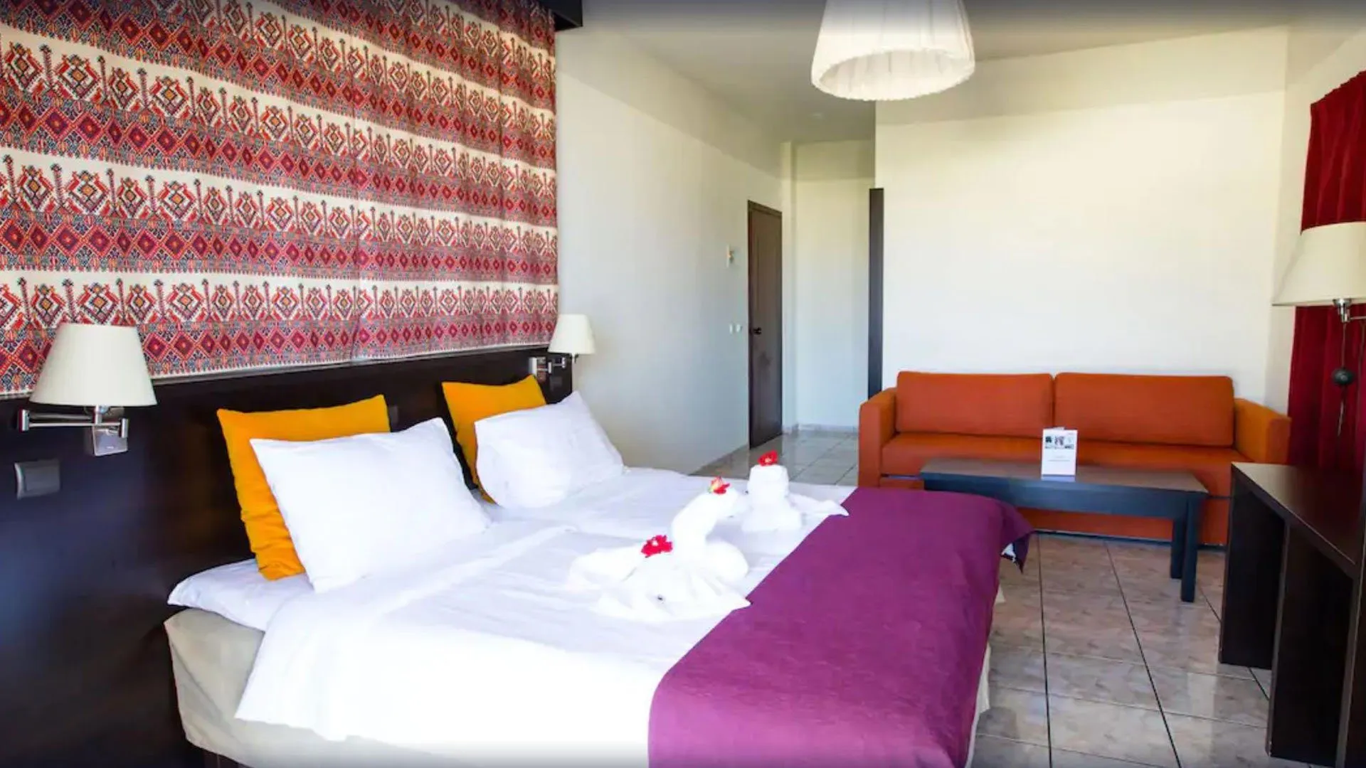 The hotel Almyrida Village and Waterpark is located approximately 400 m from a beach. On the beach are sun loungers and sun umbrellas available. The hotel has a 24h reception, internet access as well as a TV lounge. For children there is also a water slide (type open slide). Ironing equipment can be rented at the hotel for a fee. The energy supply is 220 Volts. Catering As catering services the hotel offers all-inclusive and half board. Breakfast is offered from the buffet. Distances