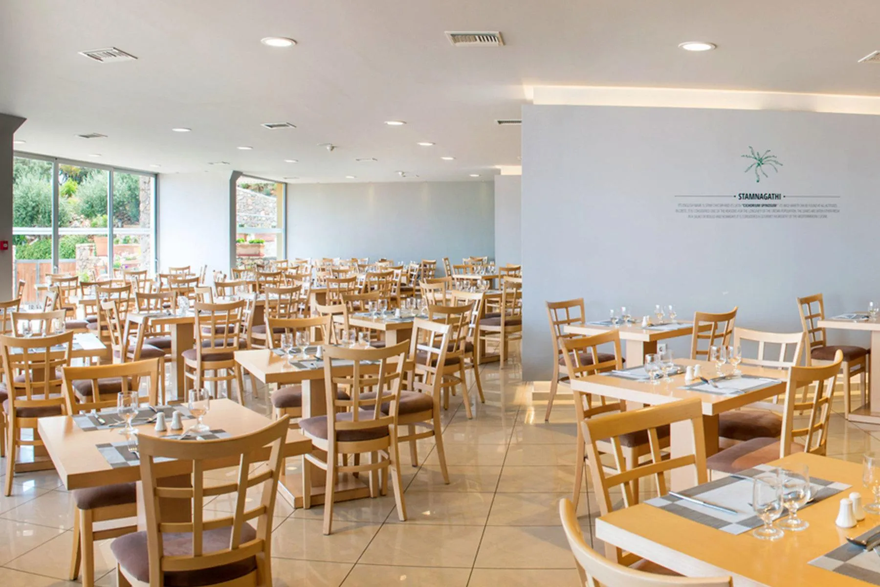 Approx. 30 m from the hotel´s own sandy/shingle beach is situated the hotel Blue Marine Resort and Spa. At the beach are sun loungers and sun umbrellas free of charge. The tourist centre is about 6 km away. The town Agios Nikolaos is around 6 km away (Heraklion around 70 km). A supermarket and other shopping facilities can be reached after 6 km. It is 2 km from the hotel to the nearest bars and restaurants. For evening dancing you will find a nightclub in a distance of approx. 6 km.