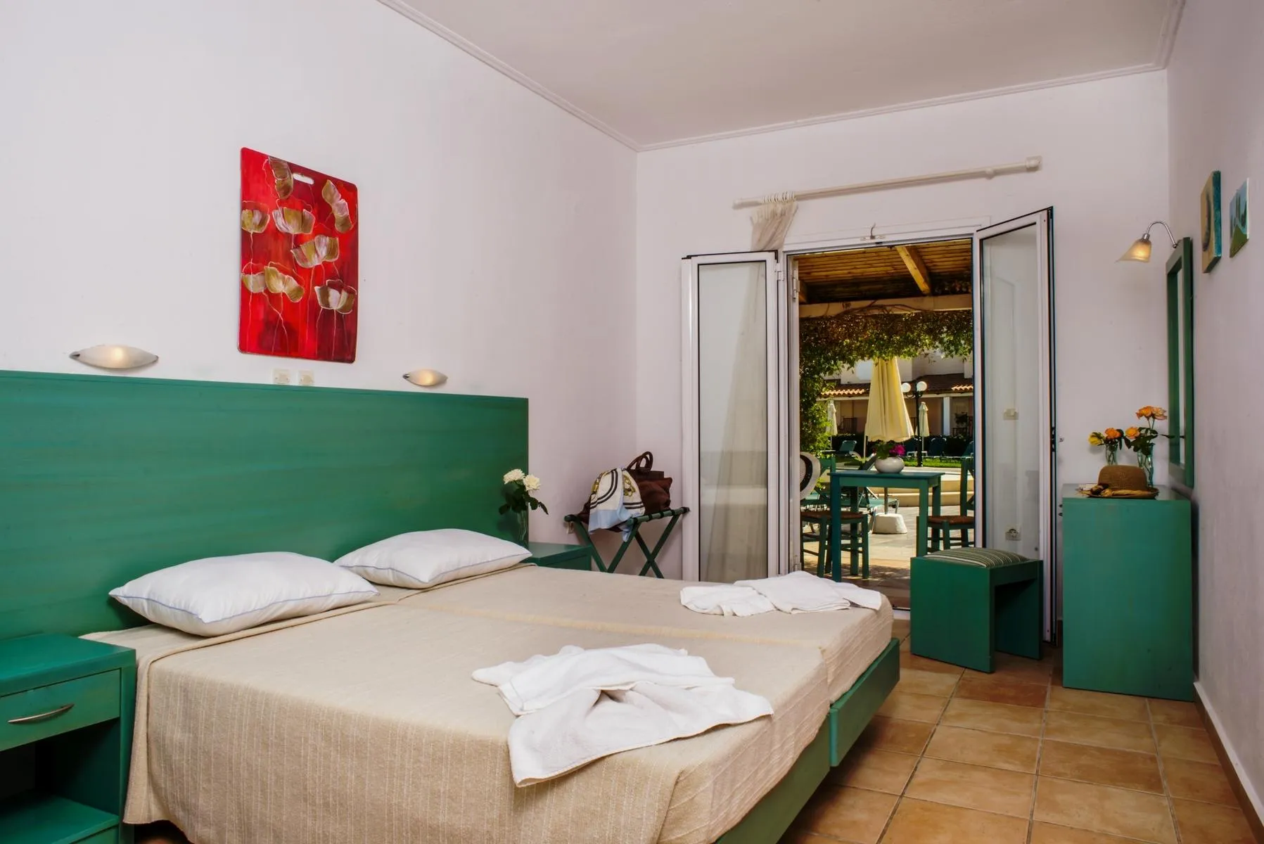 Descriere generală La cca. 7 km de plajă veți găsi hotelul Eco Resort Zefyros, care este deosebit de popular printre cei aflați în luna de miere. Pe plajă sunt disponibile umbrele de soare și șezlonguri la un cost suplimentar. Centrul turistic al orașului se află la aprox. 7 km. Orașul Zante Town este la aprox. 7 km (Tsilivi cca. 7 km). Magazinele sunt la aprox. 7 km de hotel, și un supermarket este la cca. 1 km. De asemenea, cele mai apropiate baruri și restaurante sunt la cca. 7 km. O discotecă aflată la aprox. 7 km vă invită la dans. De asemenea, la cca. 7 km de hotel este un cinematograf. Următoarele atracții pot fi accesate de la hotel: Shipwreck (cca. 45 km). Există posibilitatea de a închiria mașini și motociclete. Pentru îngrijiri medicale în caz de urgență, există un spital la cca. 5 km distanță. Aeroportul (ZTH) se află la aprox. 9 km. Un serviciu de transfer (contra cost) face legătura între hotel și aeroport. Până la cea mai apropiată plajă există, de asemenea, un serviciu de transfer (contra cost). Facilități Resortul, care a fost renovat parțial în 2021, dispune de 2 etaje și peste 71 camere repartizate între o clădire principală și de 4 clădiri secundare. Acesta oferă oaspeților săi recepție (check-in de la 14:00, check out până la 11:00), lobby cu bar, lift, aer condiționat, seif (gratuit), magazin și parcare (gratuită). Pentru a servi masa aveți la dispoziție un restaurant și un snackbar. Accesul la internet WiFi este disponibil gratuit pentru oaspeții hotelului. Pentru oaspeții care depind de un scaun cu rotile, hotelul oferă un lift accesibil pentru scaune cu rotile, băi parțial accesibile pentru scaune cu rotile și acces fără bariere. Spălătorie și serviciul medical sunt disponibile la un cost suplimentar. Piscină În grădinile acestui hotelul există o piscină cu apă dulce precum și o piscină separată pentru copii. Un bar lângă piscină oferă oaspeților băuturi răcoritoare. Catering Mic dejun bufet suedez. Demipensiunea include micul dejun și cina. Sport/Leisure Oferte pentru sport și divertisment: Biliard (contra cost), fotbal și tenis de masă (în baza unei garanții). Există serviciu de închiriere de biciclete. Oferte de wellness: Solar gratuit. Masaje contra cost. Hamam posibil contra cost. Sală de jocuri. Informații suplimentare Pentru anumite facilități sau activități se pot aplica taxe suplimentare. Unele servicii depind de anotimp și de condițiile climatice locale. Limbi de serviciu: engleză și italiană. Carduri de credit: Visa și Euro/MasterCard. Standard Familienzimmer: Camerele moderne, moderne și moderne sunt echipate cu pat king-size, pat dublu, pat twin sau pat single, pat suplimentar, pardoseală cu gresie, balcon sau terasă, acces la internet (gratuit), seif (gratuit), TV cu ecran plat și canale locale precum și aer condiționat reglabil individual (din aprilie până în noiembrie). Baie cu duș. Prosoapele se schimbă de 3 ori pe săptămână, lenjeria de pat de 2 ori pe săptămână. Dimensiune: 26 - 28 m². Superior Familienzimmer: Camerele moderne, moderne și moderne sunt echipate cu pat king-size, pat dublu sau pat single, pardoseală cu gresie, balcon, acces la internet (gratuit), seif (gratuit), TV cu ecran plat și canale locale precum și aer condiționat reglabil individual (din aprilie până în noiembrie). Baie cu duș. Prosoapele se schimbă de 3 ori pe săptămână, lenjeria de pat de 2 ori pe săptămână. Dimensiune: 26 - 28 m². Doppel Comfort Zimmer: Camerele moderne, moderne și moderne sunt echipate cu pat king-size, pat dublu sau pat twin, pardoseală cu gresie, balcon sau terasă, acces la internet (gratuit), seif (gratuit), TV cu ecran plat și canale locale precum și aer condiționat reglabil individual (din aprilie până în noiembrie). Baie cu duș. Prosoapele se schimbă de 3 ori pe săptămână, lenjeria de pat de 2 ori pe săptămână. Dimensiune: 26 - 28 m². Vierer Deluxe Zimmer: Camerele moderne și moderne sunt echipate cu pardoseală cu gresie, acces la internet (gratuit), seif (gratuit), TV cu ecran plat și canale locale precum și aer condiționat reglabil individual (din aprilie până în noiembrie). Prosoapele se schimbă de 3 ori pe săptămână, lenjeria de pat de 2 ori pe săptămână. Dimensiune: 26 - 28 m². Standard Zimmer: Camerele moderne, moderne și moderne sunt echipate cu pat king-size, pat dublu sau pat twin, pardoseală cu gresie, balcon sau terasă, acces la internet (gratuit), seif (gratuit), TV cu ecran plat și canale locale precum și aer condiționat reglabil individual (din aprilie până în noiembrie). Baie cu duș. Prosoapele se schimbă de 3 ori pe săptămână, lenjeria de pat de 2 ori pe săptămână. Dimensiune: 26 - 28 m². Superior Zimmer: Camerele moderne, moderne și moderne sunt echipate cu pat king-size, pat dublu, pat twin sau pat single, pat suplimentar, pardoseală cu gresie, balcon sau terasă, acces la internet (gratuit), seif (gratuit), TV cu ecran plat și canale locale precum și aer condiționat reglabil individual (din aprilie până în noiembrie). Baie cu duș. Prosoapele se schimbă de 3 ori pe săptămână, lenjeria de pat de 2 ori pe săptămână. Dimensiune: 26 - 28 m².