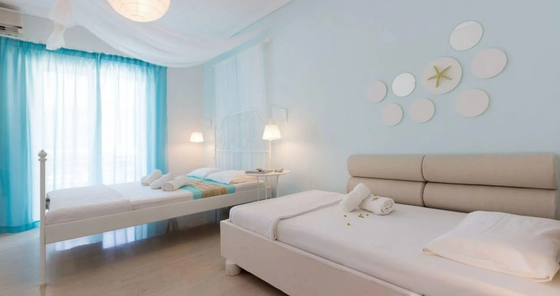 Descriere generală Hotelul Thetis, care este deosebit de popular printre cei aflați în luna de miere, este situat in Alykanas, în apropierea unei plaje cu nisip. Pe plajă sunt disponibile gratuit șezlonguri și umbrele de soare. Locul de cazare se află la doar câțiva metri de centrul turistic al orașului. Orașul zakynthos este la aprox. 15 km. Cele mai apropiate magazine sunt chiar lângă hotel, aici există și un supermarket. La cele mai apropiate baruri și restaurante se poate ajunge într-un timp foarte scurt. Aveți la dispoziție o stație de autobuz (cca. 20 m) cea ce vă garantează mobilitatea pe insulă. Pentru îngrijiri medicale în caz de urgență, există un spital la cca. 10 km distanță. Aeroportul (ZTH) se află la aprox. 17 km. Facilități Hotelul familiar dispune de 3 etaje și peste 11 camere. Hotelul are recepție (check-in de la 15:00, check out până la 11:00), lift, aer condiționat, seif (contra cost) și parcare (gratuită). Pentru a servi masa aveți la dispoziție un restaurant. Accesul la internet WiFi este disponibil gratuit pentru oaspeții hotelului. Sport/Leisure La cca. 1 km de hotel, sunt oferite sporturi nautice precum jet ski și schi nautic (unele de către furnizori locali). Informații suplimentare Pentru anumite facilități sau activități se pot aplica taxe suplimentare. Unele servicii depind de anotimp și de condițiile climatice locale. Limba de serviciu: engleză. Carduri de credit: Visa și Euro/MasterCard. Loft (Balkon oder Terrasse): Camerele moderne și confortabile cu living sunt echipate cu pat dublu, pat twin sau pat single, pat pliant ca pat suplimentar, pat pentru bebeluși (gratuit), pardoseală cu gresie, chicinetă, încălzire reglabilă individual, ceainic (gratuit), balcon sau terasă, acces la internet (gratuit), seif (contra cost), TV cu ecran plat și canale locale precum și aer condiționat reglabil individual (din aprilie până în noiembrie). Baie cu duș. Prosoapele și lenjeria de pat se schimbă de 3 ori pe săptămână. Dimensiune: 75 m². Studio: Camerele moderne și confortabile sunt echipate cu pat dublu, pat twin sau pat single, pat pliant ca pat suplimentar, pat pentru bebeluși (gratuit), pardoseală cu gresie, chicinetă, încălzire reglabilă individual, ceainic (gratuit), balcon sau terasă, acces la internet (gratuit), seif (contra cost), TV cu ecran plat și canale locale precum și aer condiționat reglabil individual (din aprilie până în noiembrie). Baie cu duș. Prosoapele și lenjeria de pat se schimbă de 3 ori pe săptămână. Dimensiune: 25 m².