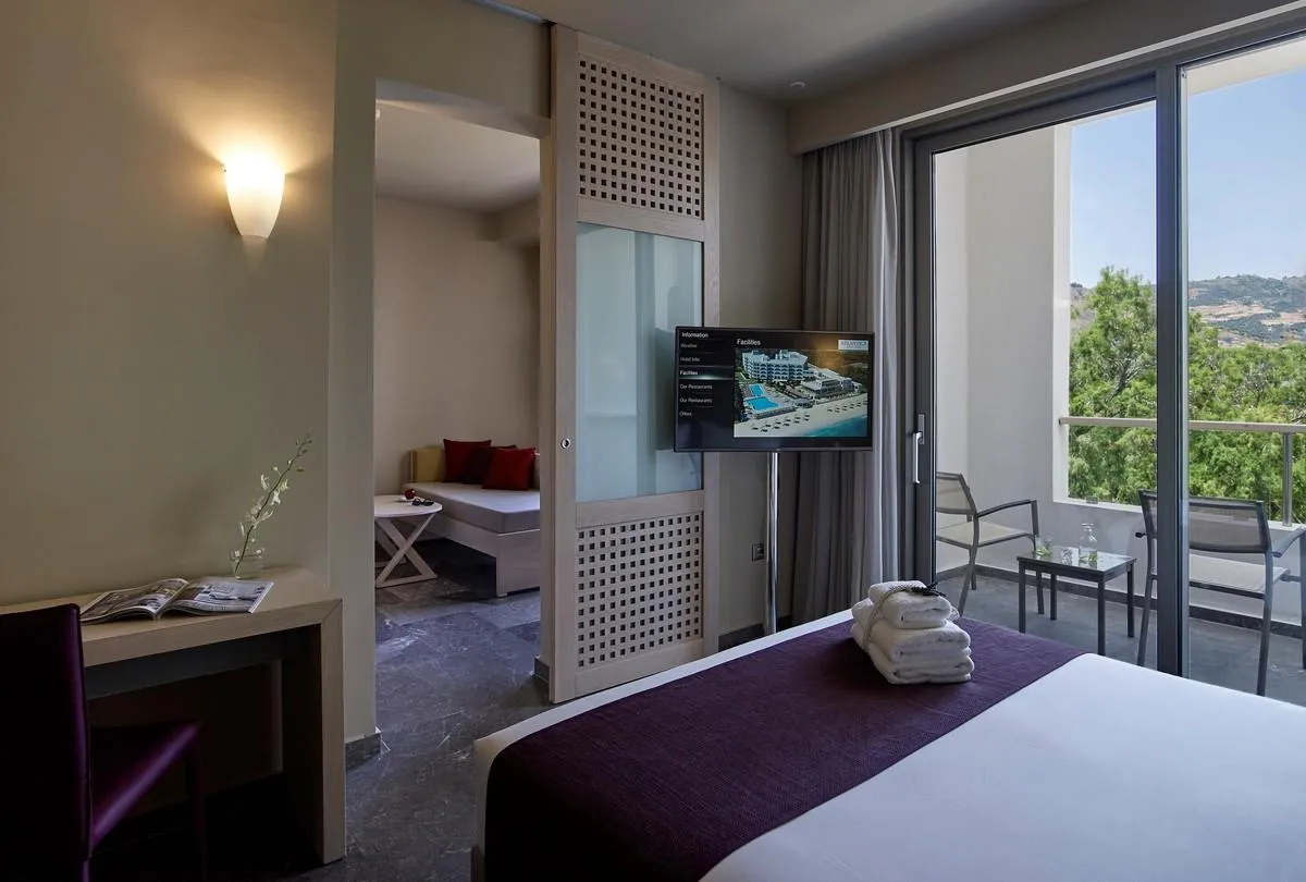 Descriere generală Hotelul Atlantica Akti Zeus este situat la cca. 5 km de Heraklion. Cea mai apropiată plajă se află la doar câțiva metri distanță. Următoarele atracții pot fi accesate de la hotel: Heraklion Venetian Harbour (cca. 7 km), Koules, Heraklion Archaeological Museum, El Greco Museum și The Palace of Knossos. Aeroportul (CHQ) se află la aprox. 135 km. Un alt aeroport (HER) este la cca. 12 km. Facilități Hotelul dispune de peste 368 camere. Acesta oferă oaspeților săi recepție (check-in de la 15:00, check out până la 11:00) și bar în hol. O masă savuroasă va așteapta la unul dintre cele 3 restaurante a hotelului. Piscină Acolo sunt disponibile gratuit șezlonguri și umbrele de soare. Un bar lângă piscină oferă oaspeților băuturi răcoritoare (deschis între orele 10:00 - 18:00). Catering All Inclusive: micul dejun, prânzul și cina. Micul dejun, prânzul și cina pot fi servite numai în anumite restaurante. Apă, băuturi răcoritoare, bere, vin și gustări la miezul nopții. Cafea și ceai (16:00 - 17:00) și aperitive (10:30 - 18:00). Sport/Leisure Este disponibil: Aerobic și fitness. Oferte de wellness: Zonă de spa posibil contra cost. Divertisment pentru adulți: spectacole de seară. Informații suplimentare Pentru anumite facilități sau activități se pot aplica taxe suplimentare. Unele servicii depind de anotimp și de condițiile climatice locale. Standard Familienzimmer: Dotate cu pat dublu, ceainic (gratuit), balcon sau terasă, acces la internet (gratuit) și seif (contra cost) precum și aer condiționat controlat central. Dimensiune: 26 m². Superior Familienzimmer: Cameră cu pat dublu, ceainic (gratuit), balcon sau terasă, acces la internet (gratuit) și seif (contra cost) precum și aer condiționat controlat central. Standard Zimmer (Balkon oder Terrasse): Dotate cu pat dublu, ceainic (gratuit), balcon sau terasă, acces la internet (gratuit) și seif (contra cost) precum și aer condiționat controlat central. Dimensiune: 18 - 21 m². Vierer Standard Zimmer (Balkon oder Terrasse): Cameră cu pat dublu, o canapea extensibilă ca pat suplimentar, ceainic (gratuit), balcon sau terasă, acces la internet (gratuit) și seif (contra cost) precum și aer condiționat controlat central. Dimensiune: 22 - 24 m². Dreifach Standard Zimmer (Balkon oder Terrasse): Cameră cu pat dublu, o canapea extensibilă ca pat suplimentar, ceainic (gratuit), balcon sau terasă, acces la internet (gratuit) și seif (contra cost) precum și aer condiționat controlat central. Dimensiune: 21 - 23 m². 1 Schlafzimmer Standard Suite: Dotate cu pat dublu, ceainic (gratuit), balcon sau terasă, acces la internet (gratuit) și seif (contra cost) precum și aer condiționat controlat central. Dimensiune: 45 - 47 m².