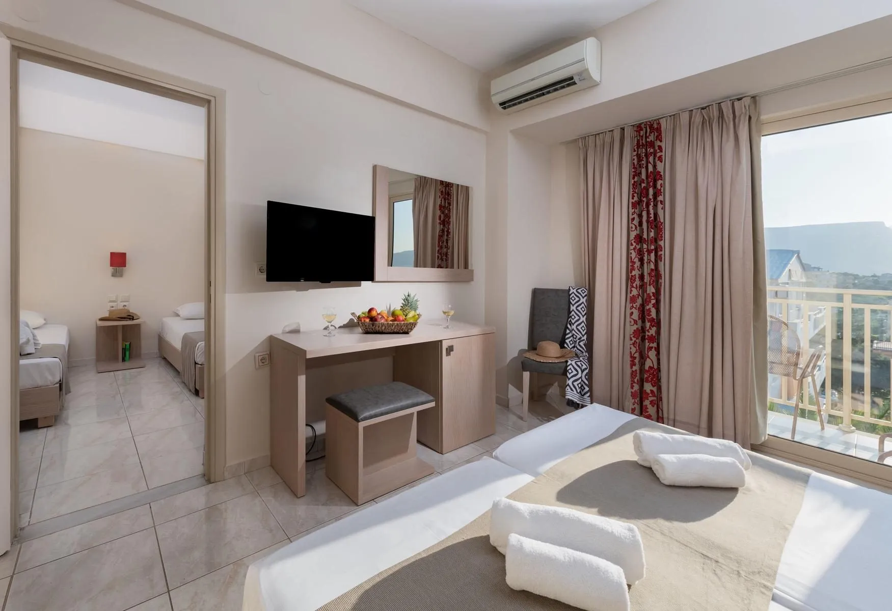 Descriere generală Hotelul Marilena Hotel este locat in Amoudara, la cca. 150 m de o plajă cu nisip. Pe plajă sunt disponibile umbrele de soare și șezlonguri la un cost suplimentar. Orașul Heraklion este la aprox. 5 km. Diverse magazine se află la aprox. 3 km de hotel, și chiar lângă hotel este un supermarket. La cele mai apropiate baruri și restaurante se poate ajunge într-un timp foarte scurt. Alte facilități de divertisment cum ar fi un cinematograf și un teatru se află la aprox. 1 km. Există posibilitatea de a închiria mașini și motociclete. De asemenea, aveți în apropiere o stație de autobuz (direct la hotel) și o stație de taxi (direct la hotel) cea ce vă garantează mobilitatea în vacanța dumneavoastră. Pentru îngrijiri medicale în caz de urgență, există un spital la cca. 5 km distanță. Aeroportul (CHQ) se află la aprox. 135 km. Un alt aeroport (HER) este la cca. 12 km. Facilități Resortul, care a fost renovat parțial în 2025, dispune de 3 etaje și peste 207 camere repartizate între o clădire principală și de 2 clădiri secundare. Acesta oferă oaspeților săi recepție (check-in de la 15:00, check out până la 11:00), lobby cu bar, 2 lifturi, aer condiționat, seif (contra cost) și parcare (gratuită). Pentru a servi masa aveți la dispoziție un restaurant cu aer condiționat și un snackbar. Accesul la internet WiFi este disponibil gratuit pentru oaspeții hotelului. Pentru oaspeții cu dizabilități fizice, unitatea de cazare oferă acces fără bariere. Serviciul de menaj este gratuit. Room service și spălătorie sunt disponibile la un cost suplimentar. Piscină În grădinile modernului hotelul există o piscină cu apă dulce (deschisă din iunie până în septembrie). Acolo sunt disponibile gratuit șezlonguri și umbrele de soare. La barul de la piscină sunt disponibile băuturi răcoritoare (deschis între orele 10:00 - 23:00). Catering Mic dejun (între orele 07:00 - 10:15) bufet suedez. All Inclusive: micul dejun, prânzul și cina. Micul dejun, prânzul și cina pot fi servite numai în anumite restaurante. Cocktailuri. Băuturi răcoritoare (10:00 - 23:00), cafea și ceai (10:00 - 23:00), prăjituri și produse de patiserie (10:00 - 17:00), aperitive (10:00 - 17:30), bere (10:00 - 23:00), vin (10:00 - 23:00), băuturi alcoolice naționale (10:00 - 23:00) și internet gratuit. Check-out mai târziu posibil (în funcție de disponibilitate). Sport/Leisure Oferte pentru sport și divertisment: Tenis de masă (gratuit), darts (gratuit), biliard (contra cost) și baschet. La cca. 150 m de hotel, sunt oferite sporturi nautice (unele de către furnizori locali). Există serviciu de închiriere de biciclete. Informații suplimentare Pentru anumite facilități sau activități se pot aplica taxe suplimentare. Unele servicii depind de anotimp și de condițiile climatice locale. Limbi de serviciu: engleză, germană, franceză, rusă și spaniolă. Carduri de credit: Euro/MasterCard, American Express și Visa. Familienzimmer: Dotate cu pat twin, ceainic (gratuit), minibar (posibil contra cost), acces la internet (gratuit) și seif (contra cost). Baie cu cadă și duș. Prosoapele se schimbă zilnic. Dimensiune: 27 - 30 m². Doppel Standard Zimmer (Economy): Cameră cu pat twin, minibar (posibil contra cost), acces la internet (gratuit) și seif (contra cost). Baie cu duș. Prosoapele se schimbă zilnic. Dimensiune: 27 - 30 m². Vierer Standard Zimmer: Dotate cu pat twin, o canapea extensibilă ca pat suplimentar, pat pentru bebeluși (gratuit), pardoseală cu gresie, minibar (posibil contra cost), acces la internet (gratuit), seif (contra cost), TV prin satelit și canale locale precum și aer condiționat reglabil individual. Baie cu cadă. Prosoapele se schimbă zilnic, lenjeria de pat de 2 ori pe săptămână. Dimensiune: 27 - 30 m². Superior Zimmer: Cameră cu pat twin, o canapea extensibilă ca pat suplimentar, pat pentru bebeluși (gratuit), minibar (posibil contra cost), balcon sau terasă, acces la internet (gratuit) și seif (contra cost). Baie cu cadă și duș. Prosoapele se schimbă zilnic. Dimensiune: 27 - 30 m². Superior Zimmer (Meerblick): Dotate cu pat twin, pardoseală cu gresie, minibar (posibil contra cost), balcon, acces la internet (gratuit), seif (contra cost), TV prin satelit și canale locale precum și aer condiționat reglabil individual. Baie cu duș. Prosoapele se schimbă zilnic, lenjeria de pat de 2 ori pe săptămână. Dimensiune: 27 - 30 m². Einzelbelegung Superior Zimmer: Cameră cu pardoseală cu gresie, minibar (posibil contra cost), balcon sau terasă, TV prin satelit și canale locale precum și aer condiționat reglabil individual. Lenjeria de pat se schimbă de 2 ori pe săptămână. Dimensiune: 27 - 30 m².