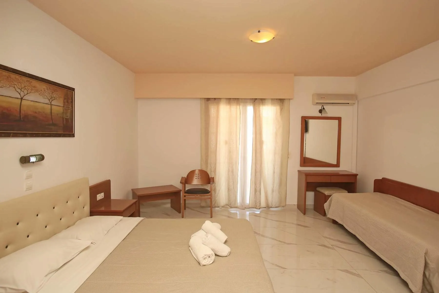 Descriere generală La cca. 250 m de o plajă cu nisip veți găsi hotelul Anthoula Village. Pe plajă sunt disponibile umbrele de soare și șezlonguri la un cost suplimentar. Centrul turistic al stațiunii se află la aprox. 350 m. Orașul Heraklion este la aprox. 21 km (Hersonissos cca. 5 km, Analipsis cca. 150 m). Chiar lângă hotel sunt diverse magazine și un supermarket pentru cumpărăturile dvs. La cele mai apropiate baruri și restaurante se poate ajunge, de asemenea, într-un timp foarte scurt. O discotecă aflată la aprox. 5 km vă invită la dans. Următoarele atracții pot fi accesate de la hotel: Knossos (cca. 24 km), Cretan Aquarium (cca. 7 km), Lasithi Plateu (cca. 35 km) și Elounda - Spinalonga (cca. 56 km). Există posibilitatea de a închiria mașini și motociclete. De asemenea, aveți în apropiere o stație de autobuz (cca. 150 m) și o stație de taxi (cca. 400 m) cea ce vă garantează mobilitatea în vacanța dumneavoastră. Pentru îngrijiri medicale în caz de urgență, există un spital la cca. 25 km distanță. Aeroportul (CHQ) se află la aprox. 165 km. Un alt aeroport (HER) este la cca. 22 km. Facilități Hotelul dispune de 2 etaje și peste 43 camere repartizate între o clădire principală și de 4 clădiri secundare. Acesta oferă oaspeților săi recepție (check-in de la 15:00, check out până la 11:00), lobby, lift, seif (contra cost), parcare (gratuită) și birou de schimb valutar. Pentru a servi masa vă stau la dispoziție un restaurant. Serviciul medical este contra cost. Este posibil să se perceapă un cost suplimentar pentru serviciul de menaj. Piscină În grădinile acestui hotelul există o piscină cu apă dulce precum și o piscină separată pentru copii. La piscină sunt disponibile gratuit șezlonguri și umbrele de soare. Catering Mic dejun (între orele 07:30 - 09:30) bufet suedez. Demipensiunea include micul dejun și cina. Sport/Leisure Oferte pentru sport și divertisment: Tenis de masă (posibil contra cost), fitness și biliard (posibil contra cost). La cca. 3 km de hotel este un teren de golf. Oferte de wellness: Masaje contra cost. Informații suplimentare Pentru anumite facilități sau activități se pot aplica taxe suplimentare. Unele servicii depind de anotimp și de condițiile climatice locale. Limbi de serviciu: engleză, germană și franceză. Carduri de credit: Visa, American Express și Euro/MasterCard. 1 Schlafzimmer Standard Apartment: Cameră cu pat pliant ca pat suplimentar, pat pentru bebeluși (gratuit), chicinetă, ceainic (gratuit), balcon sau terasă, seif (contra cost) și TV cu ecran plat prin satelit precum și aer condiționat reglabil individual (contra cost). Dimensiune: 40 m². Doppel Zimmer: Cameră cu pat pentru bebeluși (gratuit), chicinetă, ceainic (gratuit), balcon sau terasă, seif (contra cost) și TV cu ecran plat prin satelit precum și aer condiționat reglabil individual (contra cost). Studio (Meerblick): Dotate cu pat pentru bebeluși (gratuit), chicinetă, ceainic (gratuit), balcon sau terasă, seif (contra cost) și TV cu ecran plat prin satelit precum și aer condiționat reglabil individual (contra cost). Doppel Standard Studio: Dotate cu pat pentru bebeluși (gratuit), chicinetă, ceainic (gratuit), balcon sau terasă, seif (contra cost) și TV cu ecran plat prin satelit precum și aer condiționat reglabil individual (contra cost). Dimensiune: 30 m². Doppel Standard Studio ( Type B): Dotate cu pat pentru bebeluși (gratuit), chicinetă, ceainic (gratuit), balcon sau terasă, seif (contra cost) și TV cu ecran plat prin satelit precum și aer condiționat reglabil individual (contra cost).