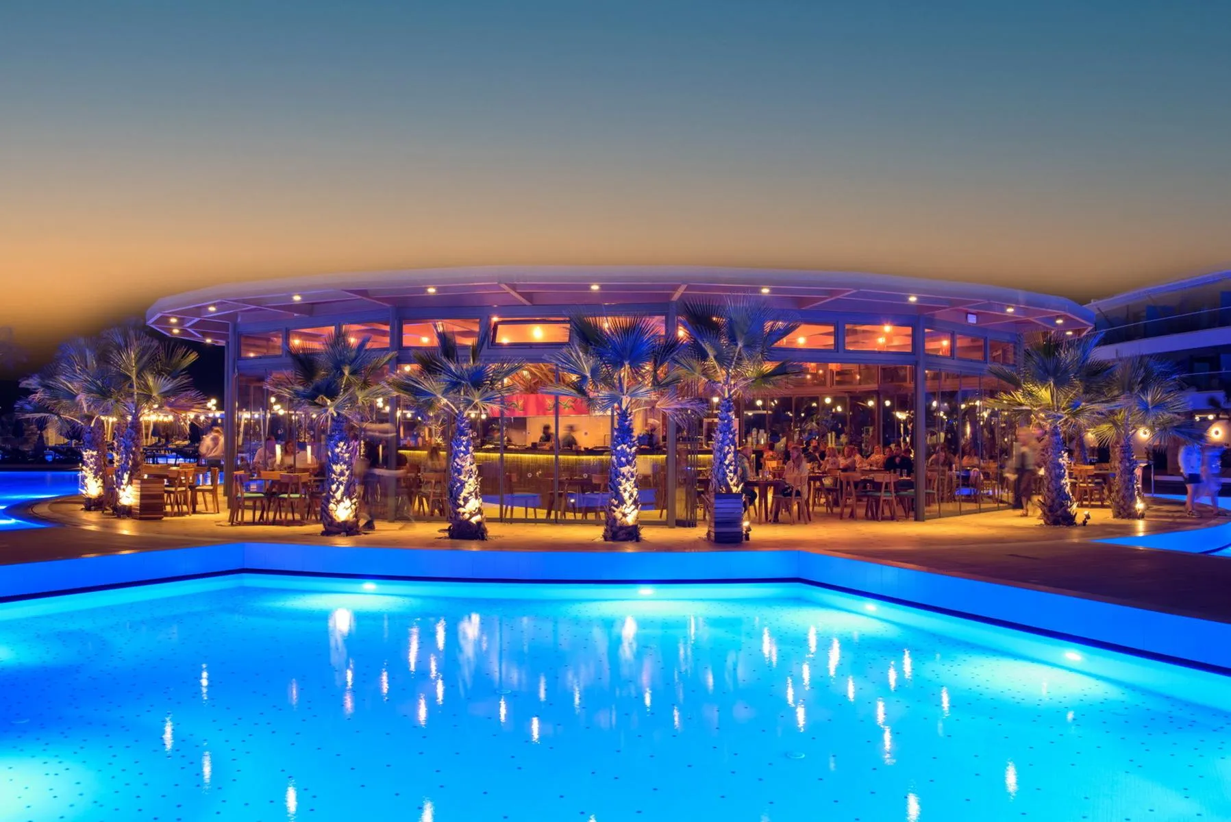 Directly at the hotel´s own sandy beach is situated the Adults only hotel Lyttos Mare. At the beach, there are sun loungers and sun umbrellas free of charge available. The tourist centre is about 5 km away. The town Heraklion is around 22 km away (Analipsi around 500 m, Hersonissos around 5 km). A supermarket can be reached after around 500 m. It is 5 km from the hotel to the nearest bars and restaurants. Also the nearest disco is around 5 km away. For mobility during your holiday, there are a taxi rank (around 10 m away), a bus stop (approx. 500 m away), a car rental company and a motorcycle rental. For medical treatment in emergencies there is a hospital around 25 km away. The airport (CHQ) is approx. 168 km away. The hotel and airport are linked by a chargeable shuttle. Another airport (HER) is located approx. 24 km away.