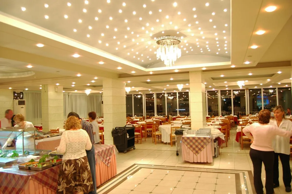 The 3-storey resort consists of a main building and 6 adjoining buildings, and has 105 rooms in total. It is equipped with a reception (check-in from 15:00, check-out until 10:00), a lobby with bar, a lift, an air conditioning as well as a parking area (for free). For the meals, there is a restaurant (air-conditioned) and a snack bar. You will be warmly welcomed in both the hotel’s bars. WiFi is available for free. Medical service is available for a fee. Pool: In the outdoor area of the hotel, designed in traditional style, you will find one fresh water pool with a children´s pool. Here, there are sun loungers and sun umbrellas for free available. A bar at the pool offers guests refreshing beverages.