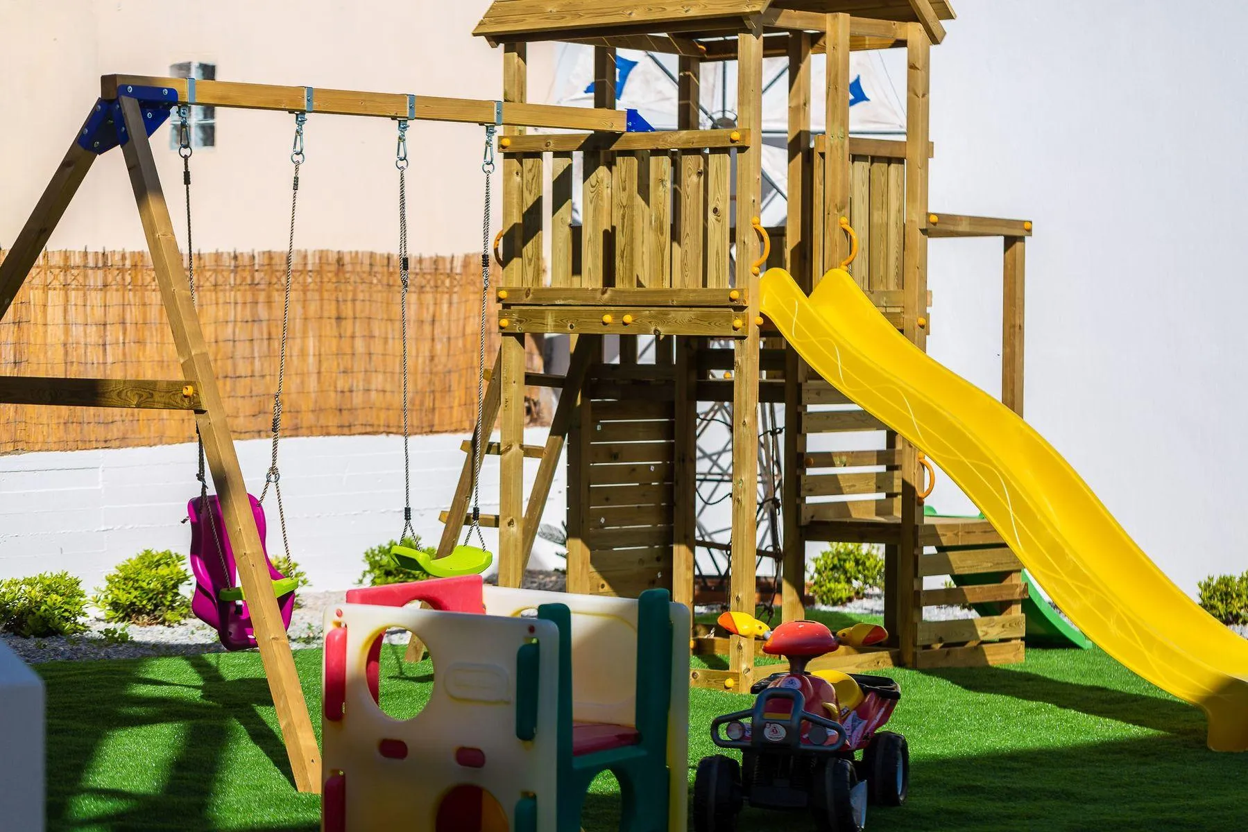 The 2-storey boutique hotel consists of a main building and 3 adjoining buildings, and has 65 rooms in total. It is equipped with a reception (check-in from 14:00, check-out until 12:00), a lobby with bar, a lift, an air conditioning, a safe (for a fee) as well as a mini market. For the meals, there are two restaurants (air-conditioned) and a snack bar. You can relax in good company in the hotel bar. WiFi can be used by hotel guests for a fee. Room cleaning and ironing service are free of charge. Laundry service is available for a fee. For the concierge service the hotel charges a fee (where applicable). Pool: In the outdoor area of the hotel you will find 2 fresh water pools with a separate children´s pool. Here, there are sun loungers and sun umbrellas for free available. A bar at the pool offers guests refreshing beverages.