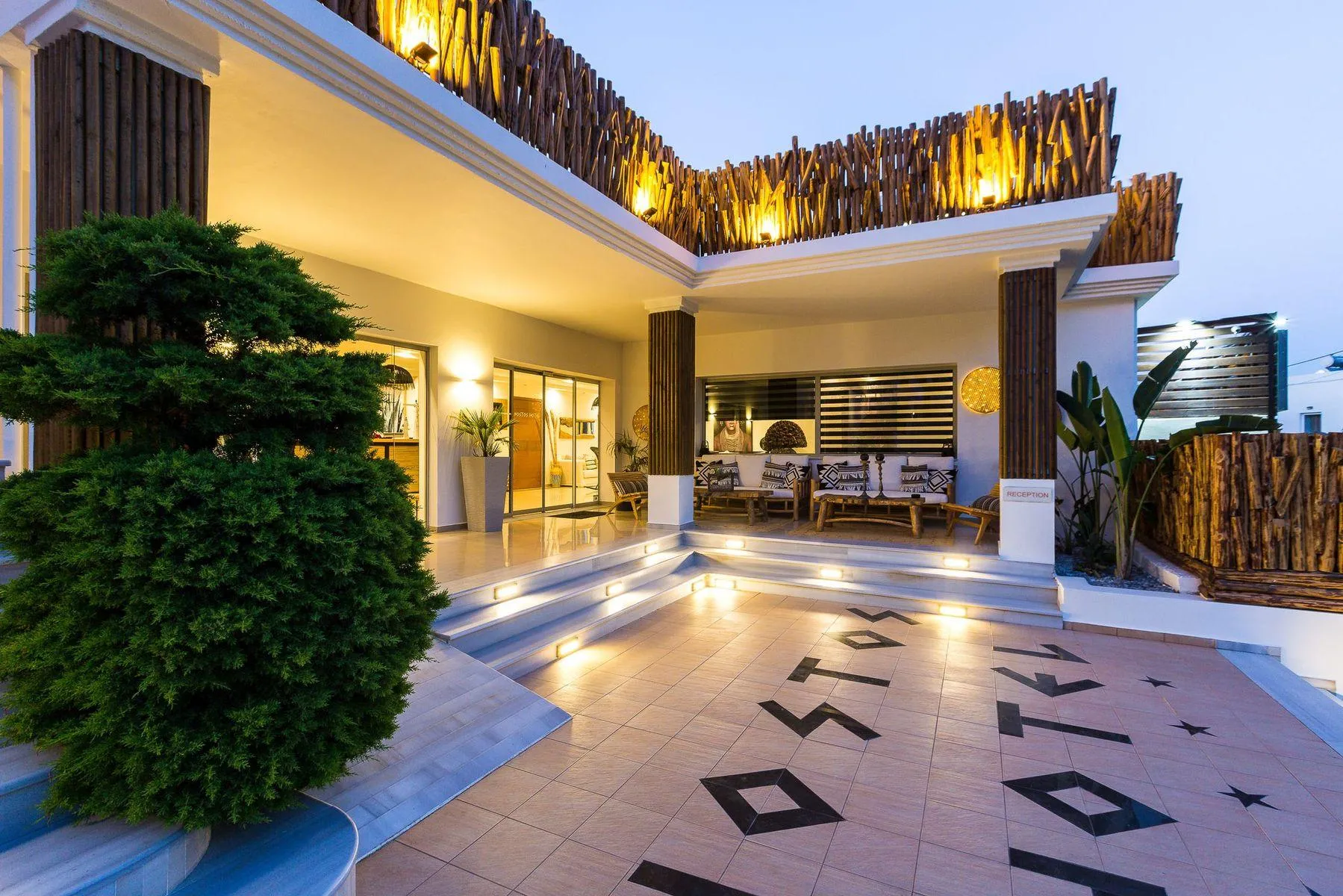 Only a few steps from the sandy beach is located the hotel Nostos Beach Boutique Hotel. At the beach, there are sun loungers and sun umbrellas for a fee. The tourist centre is about 35 km away. The town Heraklion is around 50 km away (Rethymnon around 35 km, Chania around 70 km). The nearest shopping facilities are located approx. 200 m from the hotel, a supermarket can be reached after around 20 m. It is only 200 m from the hotel to the nearest bars and restaurants. Also the nearest disco is around 200 m away. Further entertainment facilities such as a cinema are approx. 30 km away.