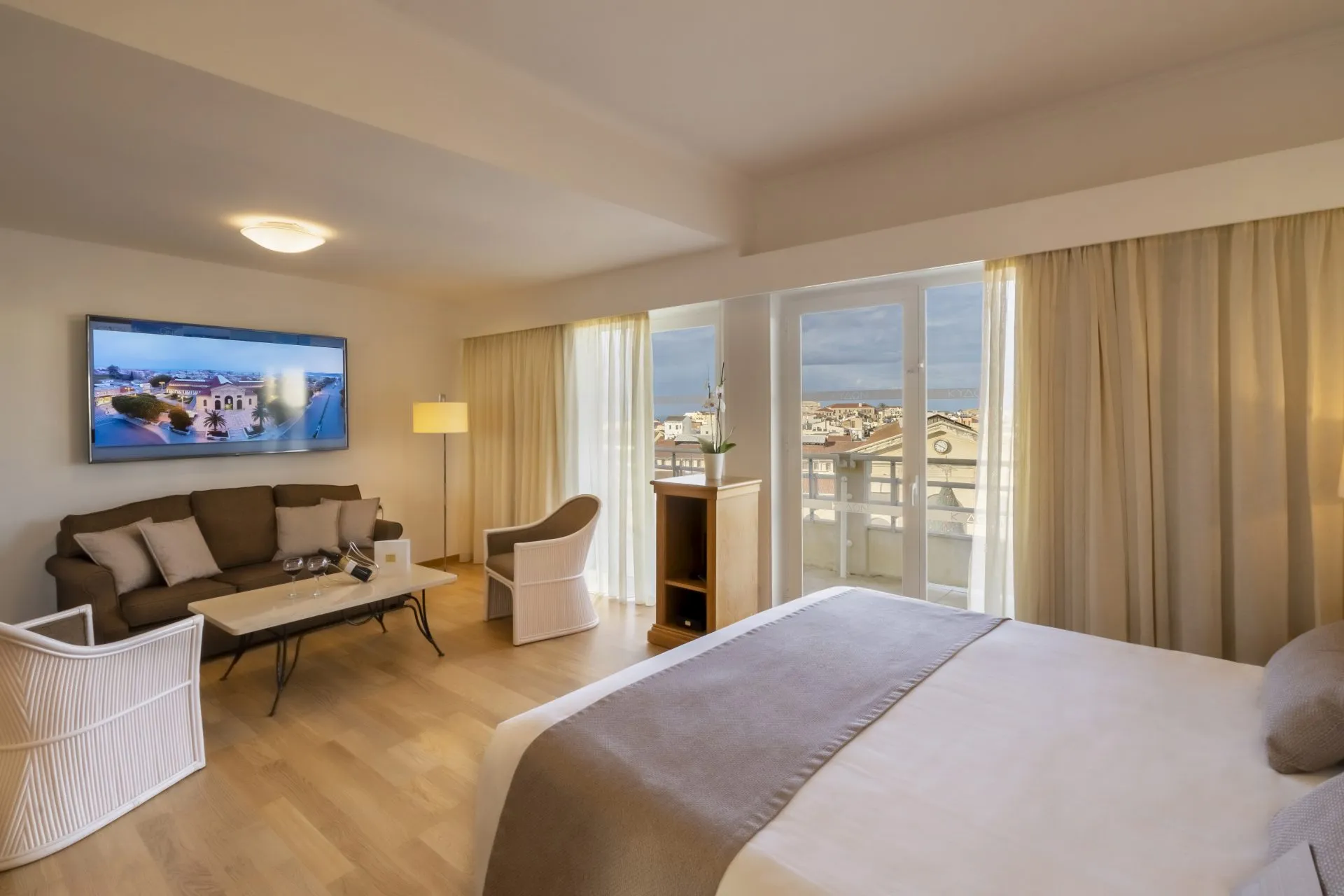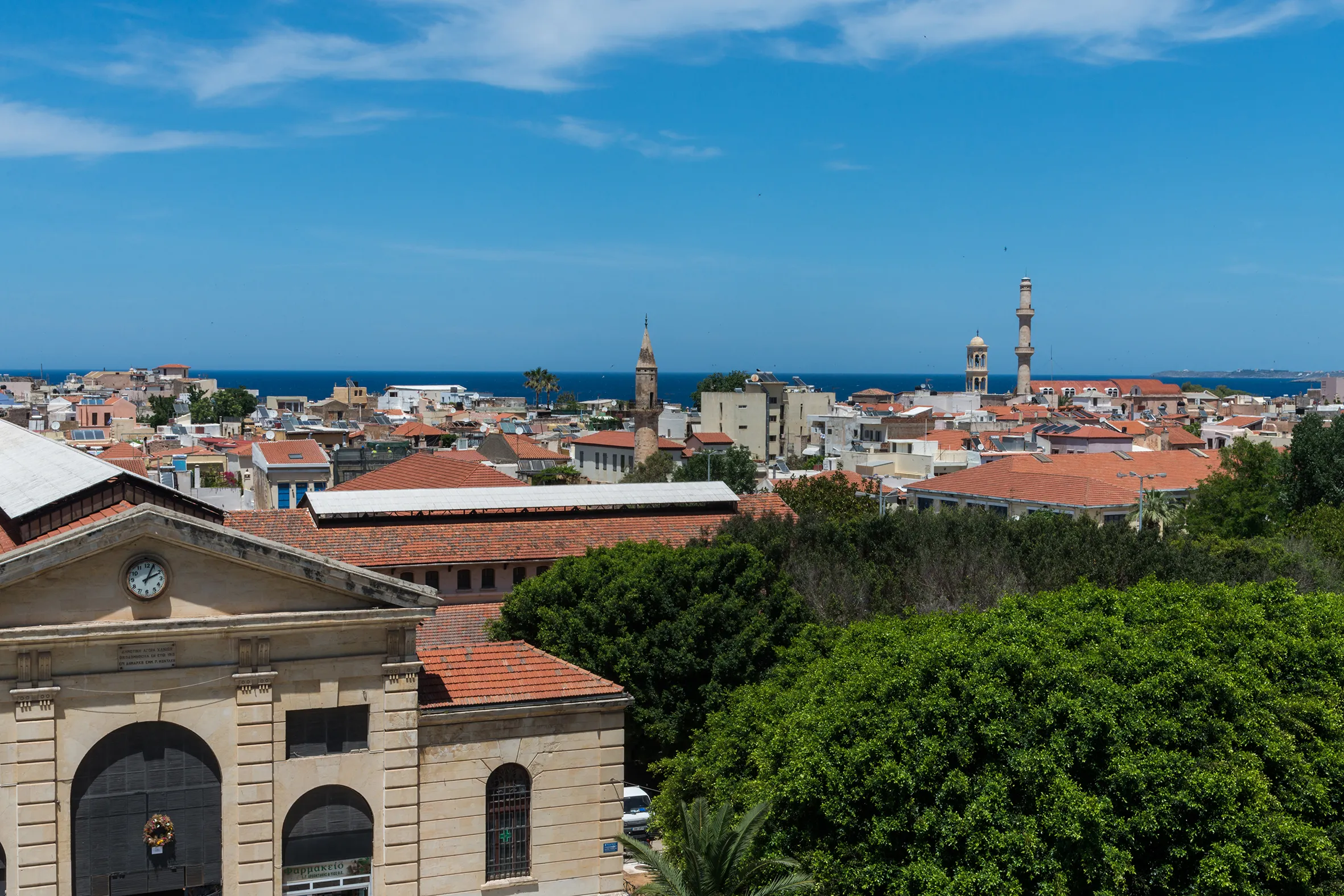 In the heart of CHQ-Chania-in front of the old Municipal Market Located in the heart of Chania - Kydon The Heart City Hotel welcomes the visitor in a most special way characteristic of the genuine Cretan hospitality - The high-quality services of the hotel established it long ago as a unique destination all year round - Its rooms and suites with a panoramic view of the Old Town and Municipal Market are equipped with all the modern comforts suitable for pleasant sojourns - Its Square Restaurant a la carte is a reference point since its cuisine is based on the nutritional value of the local products - taking the visitor on a magic trip of tastes - Enjoy all day long at the Agora Bar Restaurant aromatic coffee accompanied by succulent pastries or have lunch in a space flooded with light and with a beautiful view of the square of the Municipal Market - The location of the hotel enables the visitors to have easy access to the whole city and familiarize with the scenic beauty of Chania town Location:2011 Year of most recent renovation; 112 Total number of rooms; 5 Number of floors (main building); 35 Single rooms; 37 Double rooms; 4 Junior suites; 4 Suites; 32 Triple rooms Hotel type:hotel Methods of payment:American Express; Diners Club; MasterCard; Visa; Maestro; Visa Electrón; EuroCard Room facilities (Standard room):Bathroom; Disability-friendly bathroom; Shower; Bathtub; Hairdryer; Toiletries; Bathrobes; Slippers; Wi-fi; Internet access; Direct dial telephone; TV; Satellite TV ; Cable TV; Radio; CD player ; DVD player; Alarm clock; Plug adaptor; Mini fridge; Tea and coffee making facilities ; Ironing set; Carpeted floors; Centrally regulated air conditioning; Individually adjustable air conditioning; Central heating; Individually adjustable heating ; Safe; Balcony; Wheelchair-accessible; Wake-up service; Pillow menu; Turndown service; Desk; Welcome pack; Smoking rooms; Smoke detector; Housekeeping; Soundproof room; Extra beds on demand Facilities:Wheelchair-accessible; Car park (Extra Fee); Electric vehicle charging station (Extra Fee); 24-hour reception; Check-in hour; Check-out hour; Late Check-out (Extra Fee); Mobile phone coverage; Wi-fi; Car hire (Extra Fee); Secure parking (Extra Fee); Valet parking (Extra Fee); Room service (Extra Fee); Laundry service (Extra Fee); Medical service (Extra Fee); Bicycle hire service (Extra Fee); Babysitting service (Extra Fee); Multilingual staff; Bellboy service; Air conditioning in public areas; Smoke detector; Hotel safe (Extra Fee); Currency exchange facilities (Extra Fee); Lift access; Terrace; Concierge; Luggage room; Clothes dryer; Electric kettle; 4 Bikes available; Towels and bed linen Catering:Café; Bar; Restaurant; Non-smoking area; Highchairs; Air conditioning in Restaurant; Breakfast room Business:Conference room; 2 Meeting room; Projector; Conference hostess; Secretarial service; Printer; Photocopier; Business centre; Audio-visual equipment rental; Fax Entertainment:TV lounge Health:Massage (Extra Fee)