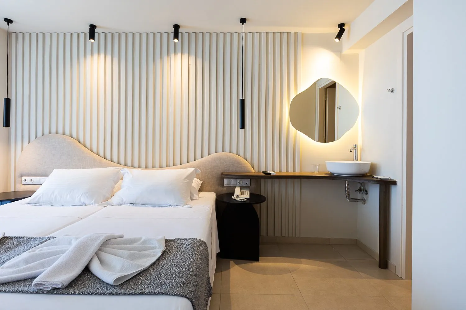 Descriere generala:Situată la 300 metri de centrul orașului, unitatea de cazare permite accesul ușor, pe jos, către o serie de locuri de interes. Cele 70 dormitoare primitoare oferă un spaţiu perfect pentru relaxarea de la sfârşitul zilei. Ca urmare a atenţiei constante acordate calităţii, această reşedinţă a fost renovată integral în anul 2017. Spaţiile comune ale proprietăţii includ conexiune Wi-Fi la internet. Toți oaspeții care stau la această proprietate sunt întâmpinaţi în foaierul cu servicii de recepţie 24h din 24h. Această reşedinţă este dedicată respectării practicilor durabile ecologice. Există un serviciu de transfer la aeroport extrem de convenabil pus la dispoziţie de reşedinţă. Graţie opţiunilor de petrecere a timpului liber oferite la acest hotel, clienţii se pot bucura de o experienţă plină de distracţie. Reşedinţa poate percepe o taxă pentru unele dintre aceste servicii. Locatia:1989 Anul construcției; 2017 Anul celei mai recente renovări; 70 Numărul total al camerelor; 3 Numărul etajelor (clădirea principală) Tip hotel:hotel Metode de plata:Diners Club; MasterCard; Visa; Maestro; Visa Electrón Distanta (in metri):Centrul orașului (300) Facilitati:Accesibil scaunelor cu rotile; Parcare; Recepție deschisă 24 de ore; Ora sosirii (check-in); Ora plecării (check-out); Wi-Fi; Serviciu de transfer (Extra Fee); Personal multilingv; Detector de fum; Seif în hotel (Extra Fee); Lift; Grădină; Terasă; Concierge; Sală de bagaje; 1 Zonă de luat masa; 1 Fierbător electric; Prosoape și lenjerie de pat Catering:Bar (Extra Fee); Restaurant Divertisment:1 Piscină în aer liber cu apă dulce; Șezlonguri; Parasolare Tipuri de mancare:Mic dejun bufet Lucruri de retinut:Exclusiv adulți; LGTBIQ friendly; Sunt necesare informațiile privind zborul; Nu se permit petreceri ale burlacilor sau de orice alt fel; 18 Vârsta minimă de cazare Healthy & Safety (COVID):Greece - Health First