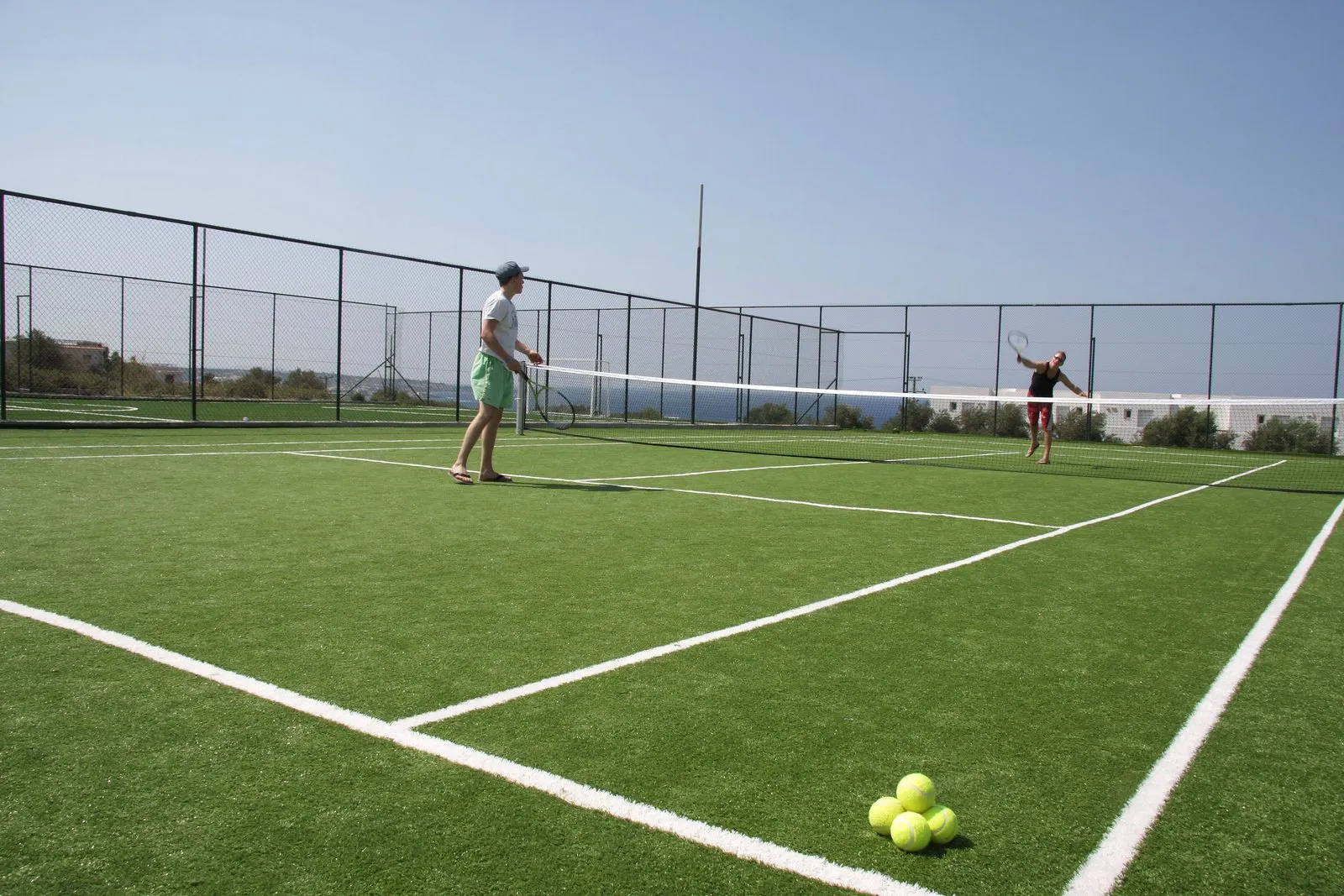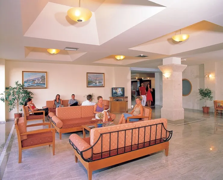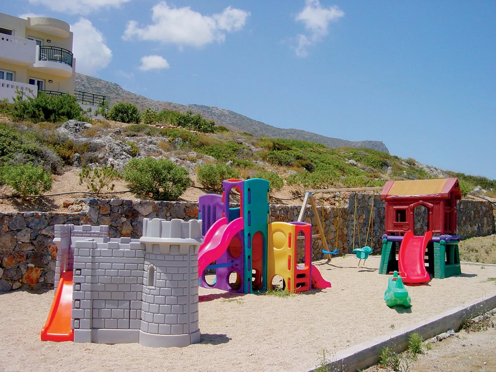 Total amount of Rooms: 314. There are 4 different room types: Double standard room (ca 25 m2) maximum capacity: 3 adults; Junior Suite (ca. 32 m2 with a separated bedroom with a double bed and a room with 2 single beds) maximum capacity: 4 adults; Villas with private pools (ca 55 m2 with 1 spacious bedroom & 1 sitting room with 2 sofa beds) maximum capacity: 5 adults; Executive Suites (ca 27 m2) with 1 double bed, a seating area and maximum capacity of 2 adults. At the Mediterraneo Hotel, the famous Greek hospitality, the healthy Cretan nutrition, the friendly atmosphere and the local customs meet successfully the elegance and the luxury and fulfill all the needs of a pleasant holiday. There is the Mediterraneo main Restaurant with sea & pool view for breakfast lunch and dinner in buffet-style and the Olive Garden Restaurant, serving light meals & snacks on buffet style from 11:00 - 17:00 by one of the hotel pools. A Lobby Bar for cocktails & drinks during the day and night and 2 Pool Bars during the daytime. In the hotel guests can also find a Mini Market & Souvenir Shop, ATM, Gym-Fitness room, a SPA with Sauna, Hammam (steam bath), Jacuzzi & a massage rooms, cosmetic services, games-room (with billiard, table tennis/hockey/football, video games, darts), Free WiFi access in the Lobby area, Meeting room, Indoor children playground, satellite TV corner, 2 great pools with sun chairs and umbrellas free of charge, 2 children pools, a mini Water Park, with 2 slides and a small pool with water games for children, and playground next to the pool area. There is also available a tennis court, a football court 5x5 and a beach volley court.