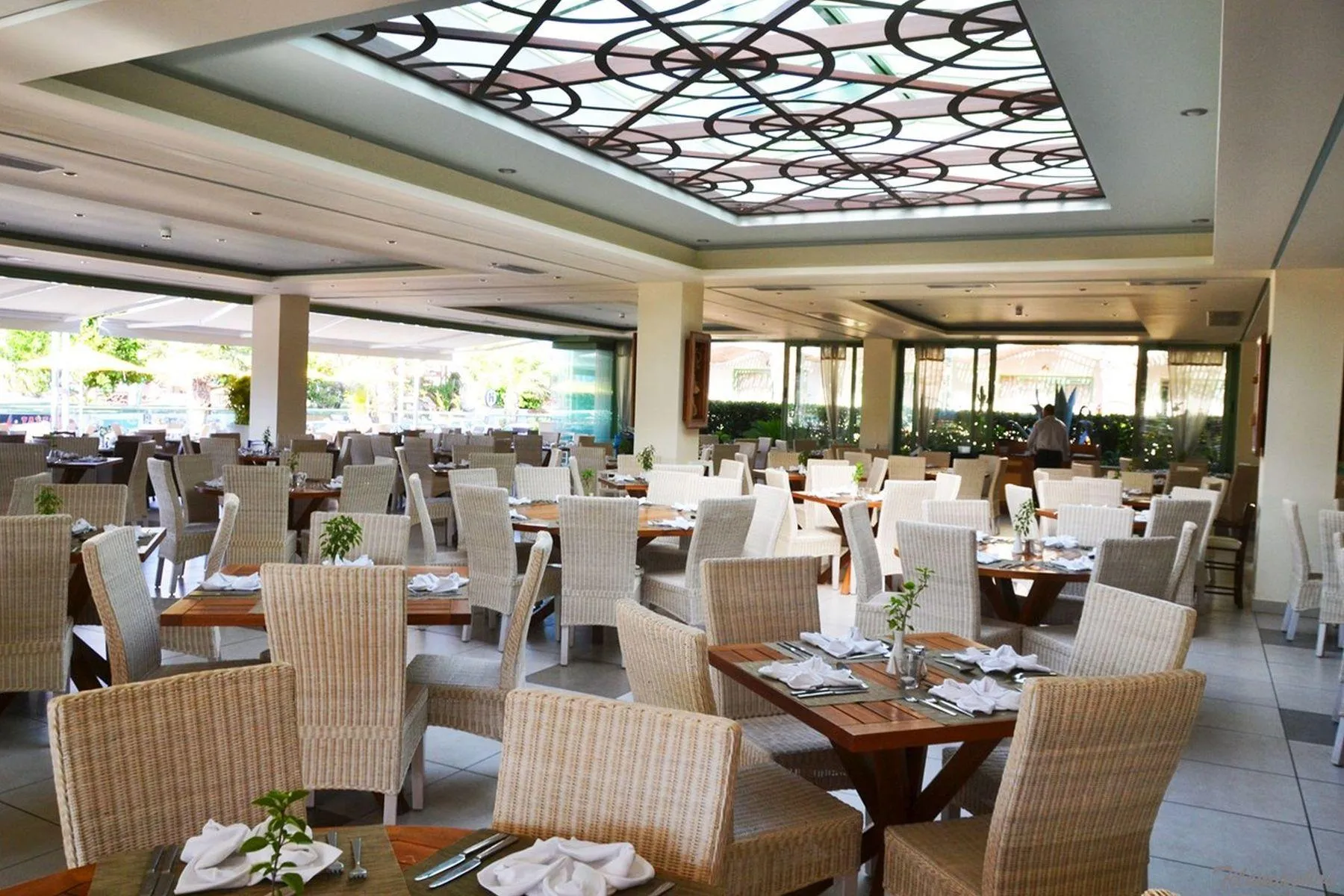 The 3-storey resort has 402 rooms, and spread over one main building and 10 adjoining buildings. It offers its guests a 24h reception (check-in from 15:00, check-out until 11:00), a lobby with bar, a lift, air conditioning, a safe (for free), a mini market, various other shops, a free parking area and a money changing facility. For the meals, there are three restaurants (air-conditioned) and a snack bar. In a total 5 bars, you can relax in good company. WiFi is available for free. For guests dependent on a wheelchair the hotel has a barrier-free access, a wheelchair accessible lift and a number of wheelchair accessible bathrooms. Room cleaning and laundry service are free of charge. Medical service is available for a fee. Pool: In the outdoor area of the modern hotel you will find one fresh water pool with a separate children´s pool. Here, there are sun loungers and sun umbrellas for free available. At the pool bar you can get refreshing beverages (open from 10:00 - 18:00).