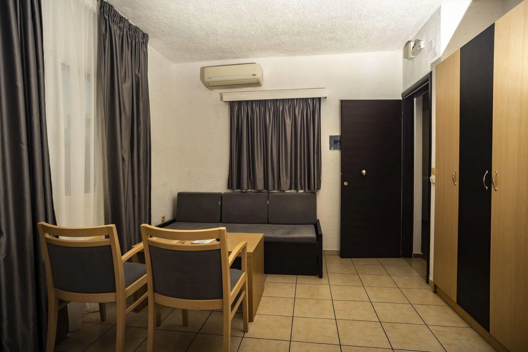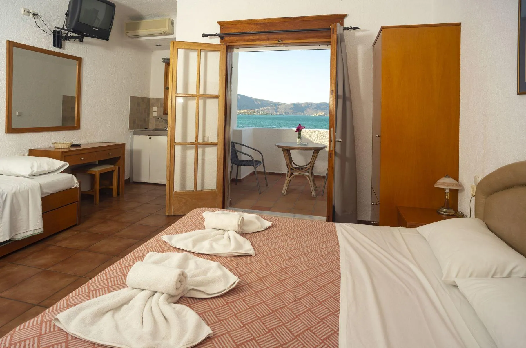 Euro / MasterCard, American Express and Visa. JuniorSuite (SeaView, Balcony): The comfortable furnished rooms are equipped with double bed or twin bed, baby cot (for free), tiled floor, kitchenette, fridge, kettle (for free), balcony or terrace, shared pool, internet (for free), safe (for a fee) and flat screen sat TV. Towels are changed 3 times a week (free of charge). Bed linen is changed 3 times a week (free of charge). Double/Twin Studio (GardenView): The comfortable furnished rooms are equipped with double bed or twin bed, baby cot (for free), tiled floor, kitchenette, fridge, kettle (for free), balcony or terrace, shared pool, internet (for free), safe (for a fee) and flat screen sat TV. Towels are changed 3 times a week (free of charge). Bed linen is changed 3 times a week (free of charge). Double/Twin Studio (SeaView): The comfortable furnished rooms are equipped with double bed or twin bed, baby cot (for free), tiled floor, kitchenette, fridge, kettle (for free), balcony or terrace, shared pool, internet (for free), safe (for a fee) and flat screen sat TV. Towels are changed 3 times a week (free of charge). Bed linen is changed 3 times a week (free of charge). Suite (GardenView): The comfortable furnished rooms with living room are equipped with double bed or twin bed, baby cot (for free), tiled floor, kitchenette, fridge, kettle (for free), balcony or terrace, shared pool, internet (for free), safe (for a fee) and flat screen sat TV. Towels are changed 3 times a week (free of charge). Bed linen is changed 3 times a week (free of charge). Suite (SeaView): The comfortable furnished rooms with living room are equipped with double bed or twin bed, baby cot (for free), tiled floor, kitchenette, fridge, kettle (for free), balcony or terrace, shared pool, internet (for free), safe (for a fee) and flat screen sat TV. Towels are changed 3 times a week (free of charge). Bed linen is changed 3 times a week (free of charge).