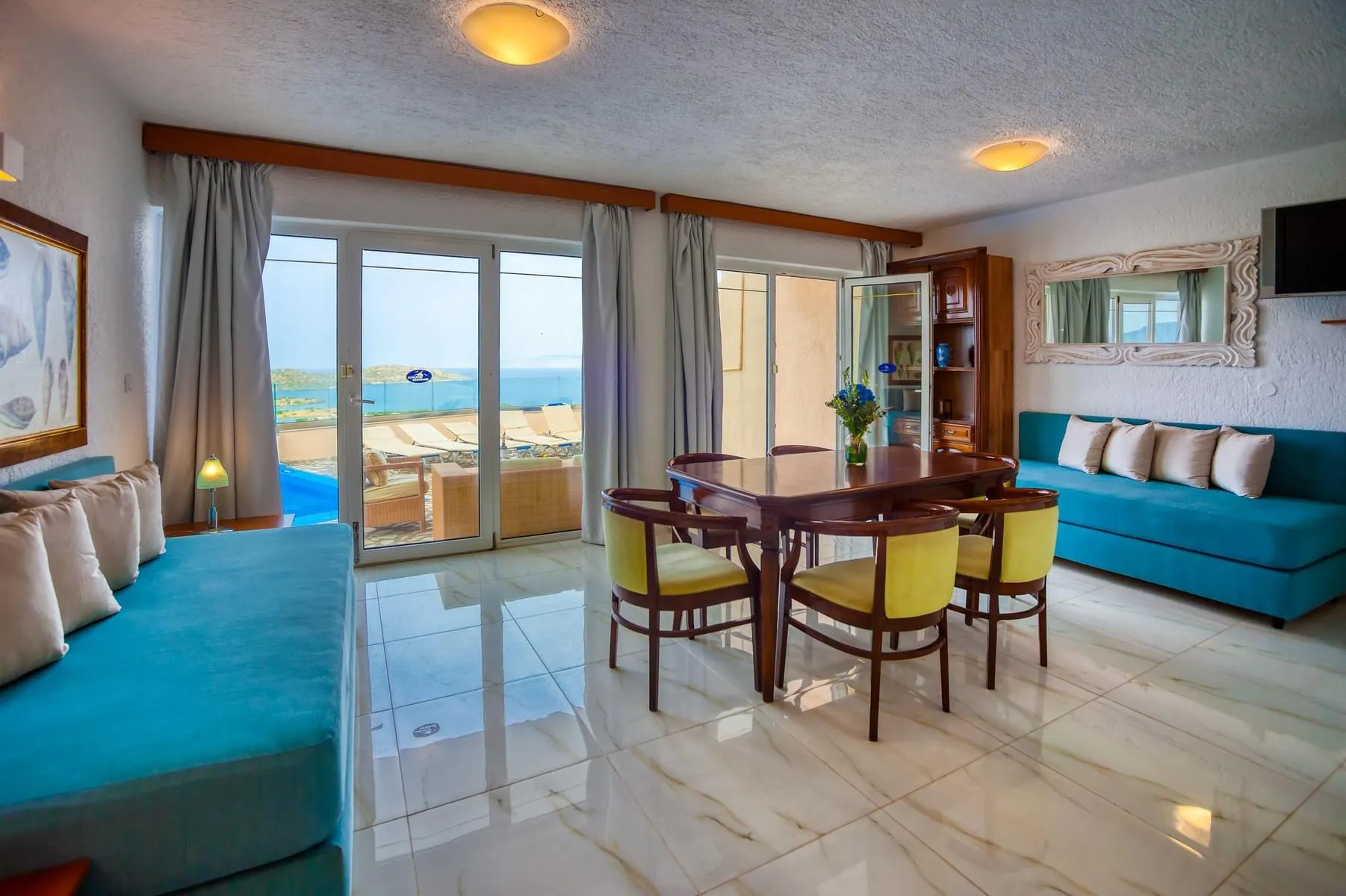 Descriere generală Hotelul Elounda Residence Resort and Waterpark este situat in Elounda, la cca. 1,5 km de o plajă cu nisip/pietriș. Pe plajă sunt disponibile umbrele de soare și șezlonguri la un cost suplimentar. Centrul turistic al orașului se află la aprox. 1,2 km. Orașul Elounda Village este la aprox. 1,2 km (Agios Nikolaos cca. 10 km, Heraklion cca. 70 km). Magazinele sunt la aprox. 1,2 km de hotel, și veți găsi un supermarket la cca. 800 m. De asemenea, cele mai apropiate baruri și restaurante sunt la cca. 800 m. Facilități de divertisment cum ar fi un cinematograf și un teatru se află la aprox. 10 km. Următoarele atracții pot fi accesate de la hotel: Kolokitha Island (cca. 3 km), Plaka Village (cca. 5 km), Agios Nikolaos City (cca. 10 km), Voulisma Beach (cca. 21 km) și Spinalonga island. Există posibilitatea de a închiria mașini și motociclete. De asemenea, aveți în apropiere o stație de autobuz (cca. 800 m) și o stație de taxi (cca. 1,2 km) cea ce vă garantează mobilitatea în vacanța dumneavoastră. Pentru îngrijiri medicale în caz de urgență, există un spital la cca. 10 km distanță. Aeroportul (CHQ) se află la aprox. 215 km. Un alt aeroport (HER) este la cca. 75 km. O navetă circulă regular spre Main Street of Elounda de la 10:00 - 22:30 (graduit). Facilități Resortul dispune de 2 etaje și peste 196 camere repartizate între o clădire principală și un total de 17 clădiri secundare. Acesta oferă oaspeților săi recepție (check-in de la 15:00, check out până la 11:00), lobby, aer condiționat, seif (contra cost), minimarket, parcare (gratuită) și birou de schimb valutar. Pentru a satisface apetitul vă stau la dispoziție 3 restaurante cu aer condiționat și un snackbar. Accesul la internet WiFi este disponibil gratuit pentru oaspeții hotelului. Serviciul de menaj și serviciul de concierge sunt gratuite. Spălătorie, călcat și serviciul medical sunt disponibile la un cost suplimentar. Piscină Zona exterioară a hotelului cu parc acvatic și tobogan de apă include 4 piscine cu apă sărată precum și o piscină separată pentru copii (deschise din mai până în octombrie). La piscine sunt disponibile gratuit șezlonguri și umbrele de soare. Un bar lângă piscină oferă oaspeților băuturi răcoritoare (deschis între orele 10:00 - 18:00). Catering Mic dejun (între orele 07:30 - 10:30) bufet suedez. All Inclusive: micul dejun, prânzul și cina. Micul dejun și prânzul pot fi servite numai în anumite restaurante. Sunt disponibile și meniuri pentru copii. Apă și cocktailuri. Băuturi răcoritoare (11:00 - 23:00), cafea și ceai (11:00 - 23:00), aperitive (15:00 - 17:00), bere (11:00 - 23:00), vin (11:00 - 23:00), băuturi alcoolice naționale (11:00 - 23:00), anumite băuturi alcoolice importate (între orele 11:00 - 23:00, în anumite restaurante sau baruri) și internet gratuit. Sport/Leisure Este disponibil: Yoga, tenis (gratuit, la cca. 300 m distanță), baschet, aerobic, fitness, badminton (gratuit), minigolf, volei, darts (gratuit), biliard (contra cost), tenis de masă (gratuit) și fotbal. La cca. 2 km de hotel, sunt oferite sporturi nautice precum jet ski și schi nautic (unele de către furnizori locali). La cca. 2 km de hotel este un teren de golf. Există serviciu de închiriere de biciclete. În plus excursii ghidate cu biciclete (contra cost). Oferte de wellness: Zonă de spa, saună, baie turcească, hamam și masaje contra cost. Divertisment pentru adulți: program de animație cu spectacole de seară și muzică live. Teren de joacă. Îngrijirea copiilor: program de animație pentru copii (de la 4 - 12 ani), mini club pentru copii (de la 4 - 12 ani) și babysitting (contra cost). Sală de jocuri. Informații suplimentare Pentru anumite facilități sau activități se pot aplica taxe suplimentare. Unele servicii depind de anotimp și de condițiile climatice locale. Limbi de serviciu: engleză, germană, franceză, olandeză și greacă. Carduri de credit: Euro/MasterCard și Visa. 1 Schlafzimmer Apartment: Camerele confortabile cu living sunt echipate cu pat dublu, pat twin sau pat single, o canapea extensibilă ca pat suplimentar, pat pentru bebeluși (gratuit), parchet laminat, chicinetă, încălzire reglabilă individual, ceainic (gratuit), balcon sau terasă, acces la internet (gratuit), seif (contra cost) și TV cu ecran plat prin satelit precum și aer condiționat reglabil individual. Baie cu duș. Prosoapele și lenjeria de pat se schimbă de 3 ori pe săptămână. Dimensiune: 90 - 90 m². FamilienApartment: Dotate cu pat dublu, pat twin sau pat single, o canapea extensibilă ca pat suplimentar, pat pentru bebeluși (gratuit), parchet laminat, chicinetă, încălzire reglabilă individual, ceainic (gratuit), acces la internet (gratuit), seif (contra cost) și TV cu ecran plat prin satelit precum și aer condiționat reglabil individual. Baie cu cadă și duș. Prosoapele și lenjeria de pat se schimbă de 3 ori pe săptămână. Dimensiune: 90 - 90 m². 2 Schlafzimmer FamilienApartment: Dotate cu living, pat dublu, pat twin sau pat single, o canapea extensibilă ca pat suplimentar, pat pentru bebeluși (gratuit), parchet laminat, chicinetă, încălzire reglabilă individual, ceainic (gratuit), acces la internet (gratuit), seif (contra cost) și TV cu ecran plat prin satelit precum și aer condiționat reglabil individual. Baie cu duș. Prosoapele și lenjeria de pat se schimbă de 3 ori pe săptămână. Dimensiune: 90 - 90 m². Grand FamilienApartment: Camerele confortabile cu living sunt echipate cu pat dublu, pat twin sau pat single, o canapea extensibilă ca pat suplimentar, pat pentru bebeluși (gratuit), parchet laminat, chicinetă, încălzire reglabilă individual, ceainic (gratuit), balcon sau terasă, acces la internet (gratuit), seif (contra cost) și TV cu ecran plat prin satelit precum și aer condiționat reglabil individual. Baie cu cadă și duș. Prosoapele 