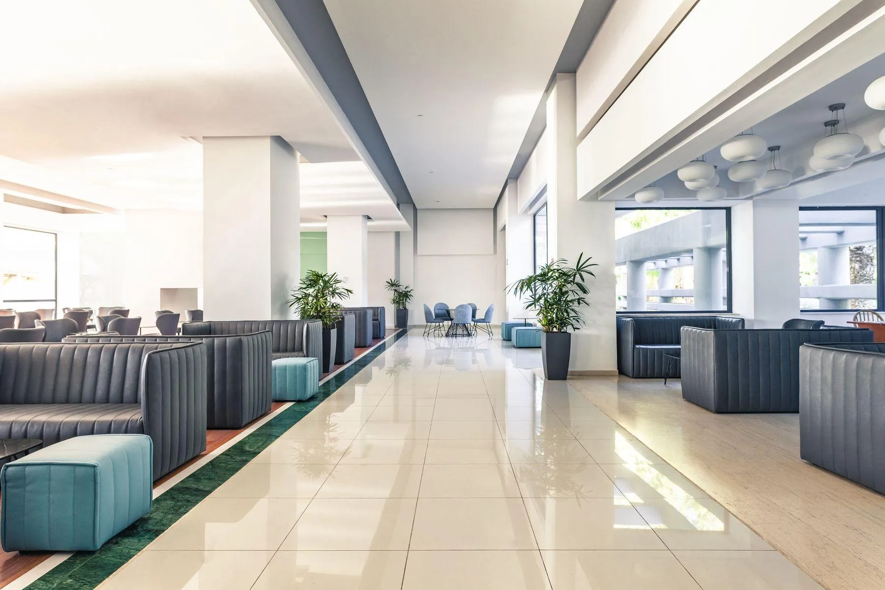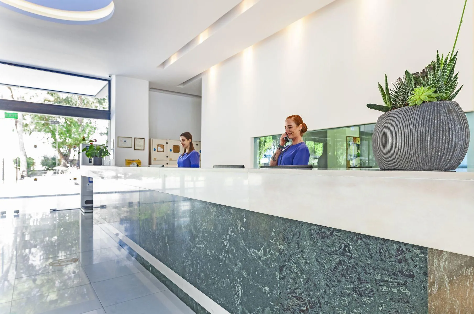 Partially renovated in 2023, the 4-storey resort consists of a main building and 2 adjoining buildings, and has 317 rooms in total. It offers its guests a 24h reception (check-in from 14:00, check-out until 12:00), a lobby with bar, 5 lifts, air conditioning, coiffeur, a mini market, various other shops and a free parking area. For the meals, there are three restaurants (air-conditioned) and a snack bar. In a total 3 bars, you can relax in good company. WiFi is available for free. Room cleaning is free of charge. Room service, laundry service and medical service are available for a fee. Pool: In the outdoor area of the hotel you will find 3 fresh water pools with a children´s pool. Here, there are sun umbrellas and sun loungers for free available. Refreshing beverages can be consumed directly at the pool bar (open from 10:00 - 23:30).