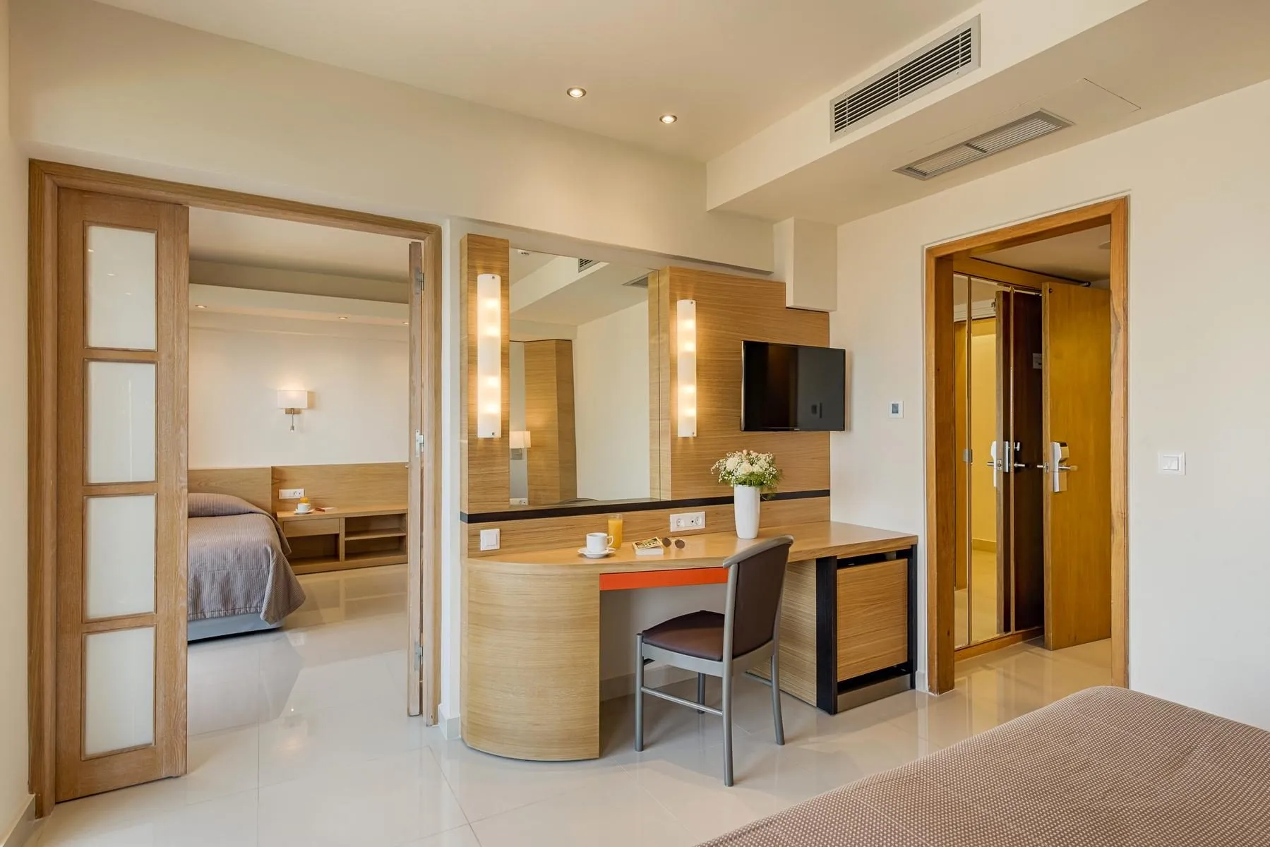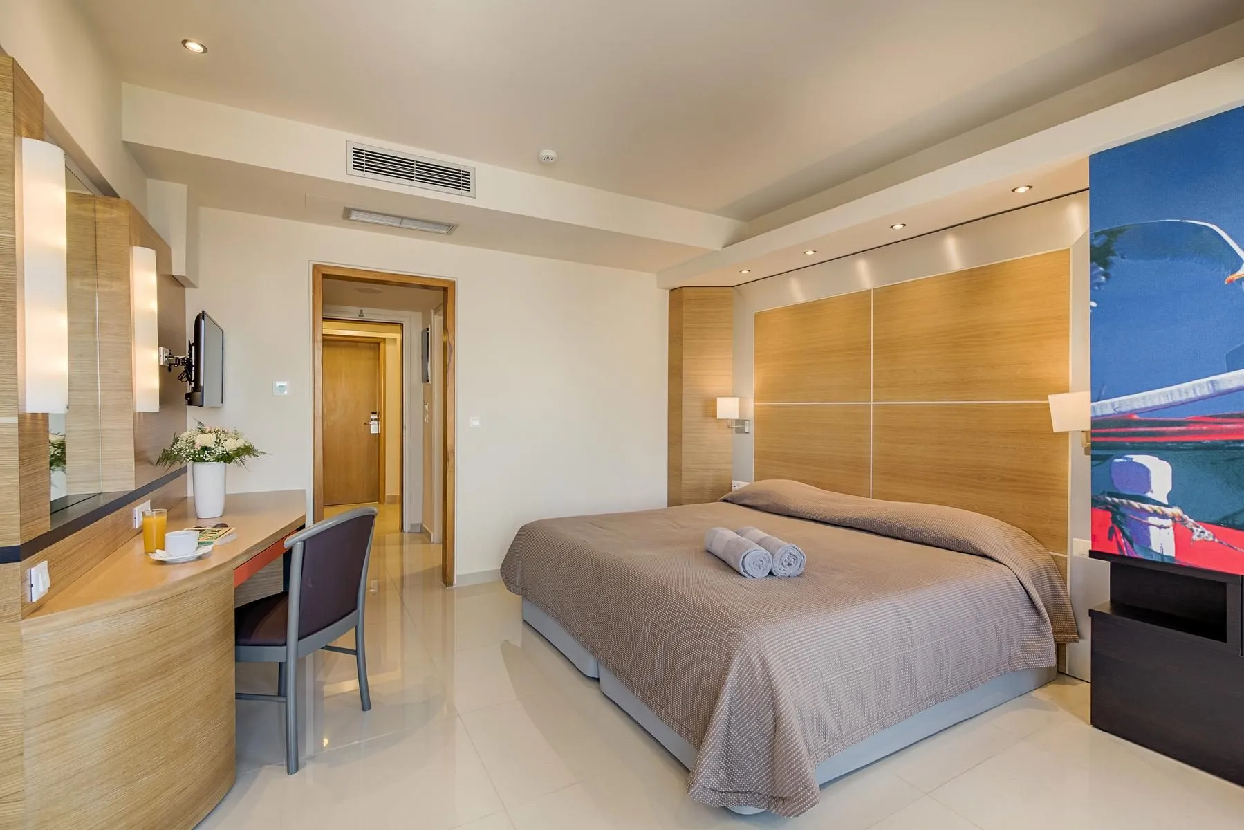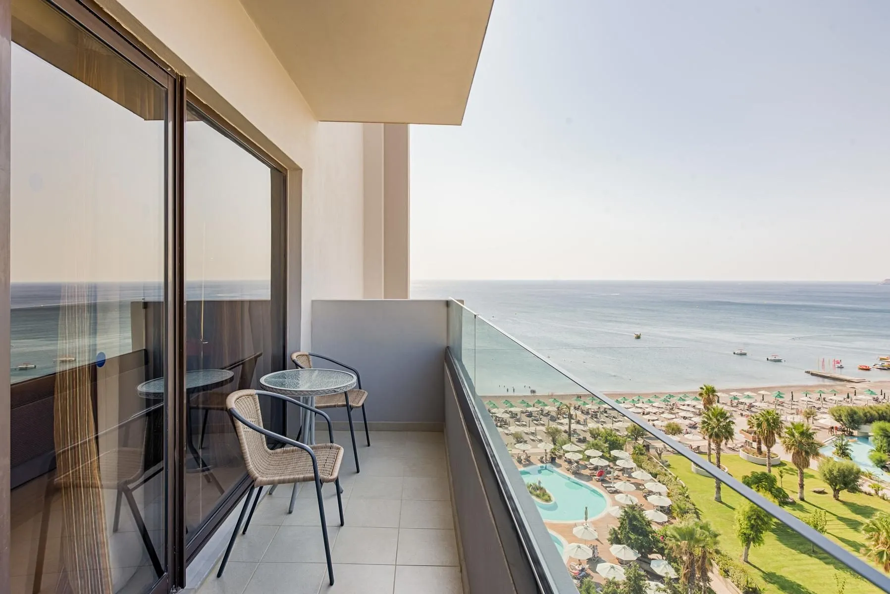 Descriere generală La doar câțiva pași de o plajă privată cu nisip/pietriș se găsește hotelul Esperos Mare. Pe plajă sunt disponibile gratuit șezlonguri și umbrele de soare. Centrul turistic al stațiunii se află la doar câțiva metri de distanța. Orașul Faliraki este la aprox. 2 km (Rhodes Town cca. 12 km, Afandou cca. 10 km). Magazinele sunt la aprox. 500 m de hotel, și veți găsi un supermarket la cca. 100 m. La cele mai apropiate baruri și restaurante se poate ajunge într-un timp foarte scurt. O discotecă aflată la aprox. 2 km vă invită la dans. Următoarele atracții pot fi accesate de la hotel: Old Town (cca. 12 km), Kalithea Springs (cca. 3 km), Lindos (cca. 38 km) și Ackropoli of Rhodes (cca. 12 km). Există posibilitatea de a închiria mașini și motociclete. De asemenea, aveți în apropiere o stație de autobuz (direct la hotel) și o stație de taxi (cca. 100 m) cea ce vă garantează mobilitatea pe insulă. Pentru îngrijiri medicale în caz de urgență, există un spital la cca. 14 km distanță. Aeroportul (RHO) se află la aprox. 17 km. Facilități Resortul dispune de 8 etaje și peste 152 camere. Acesta oferă oaspeților săi recepție (check-in de la 15:00, check out până la 11:00), lobby cu bar, 2 lifturi, aer condiționat, minimarket și parcare (gratuită). Pentru a satisface apetitul vă stau la dispoziție 2 restaurante cu aer condiționat. Accesul la internet WiFi este disponibil gratuit pentru oaspeții hotelului. Serviciul de menaj este gratuit. Spălătorie, călcat și serviciul medical sunt disponibile la un cost suplimentar. Piscină Zona exterioară a hotelului include 2 piscine cu apă dulce. La piscine sunt disponibile gratuit șezlonguri și umbrele de soare. La barul de la piscină sunt disponibile băuturi răcoritoare (deschis între orele 10:00 - 00:00). Catering Mic dejun (între orele 07:00 - 10:00) bufet suedez. All Inclusive: micul dejun, prânzul și cina. Micul dejun, prânzul și cina pot fi servite numai în anumite restaurante. Mic dejun târziu (între orele 10:00 - 10:30), băuturi răcoritoare (10:00 - 00:00), cafea și ceai (10:00 - 00:00), aperitive (10:30 - 18:00), bere (10:00 - 00:00), vin (10:00 - 00:00), băuturi alcoolice naționale (10:00 - 00:00) și gustări la miezul nopții (22:00 - 00:00). Sport/Leisure Oferte pentru sport și divertisment: Fitness, tenis de masă (gratuit), tenis (gratuit), biliard (contra cost), darts (gratuit) și yoga. Oferte de wellness: Saună gratuită. Masaje contra cost. Divertisment pentru adulți: program de animație. Îngrijirea copiilor: babysitting (contra cost). Informații suplimentare Pentru anumite facilități sau activități se pot aplica taxe suplimentare. Unele servicii depind de anotimp și de condițiile climatice locale. Limbi de serviciu: engleză, germană și italiană. Carduri de credit: Diners Club, Euro/MasterCard, Visa și American Express. Superior Familienzimmer (Seitlicher Meerblick): Dotate cu pat dublu sau pat twin, pat suplimentar, balcon, acces la internet (gratuit), seif (gratuit) și TV cu ecran plat prin satelit precum și aer condiționat controlat central (din mai până în septembrie). Dimensiune: 45 m². Doppel Standard Zimmer (Seitlicher Meerblick): Cameră cu pat dublu sau pat twin, pardoseală cu gresie, balcon, acces la internet (gratuit), seif (gratuit) și TV cu ecran plat prin satelit precum și aer condiționat controlat central (din mai până în septembrie). Dimensiune: 22 m². Doppel Standard Zimmer (Meerblick): Cameră cu pat dublu sau pat twin, pardoseală cu gresie, balcon, acces la internet (gratuit), seif (gratuit) și TV cu ecran plat prin satelit precum și aer condiționat controlat central (din mai până în septembrie). Baie cu cadă. Dimensiune: 22 m².