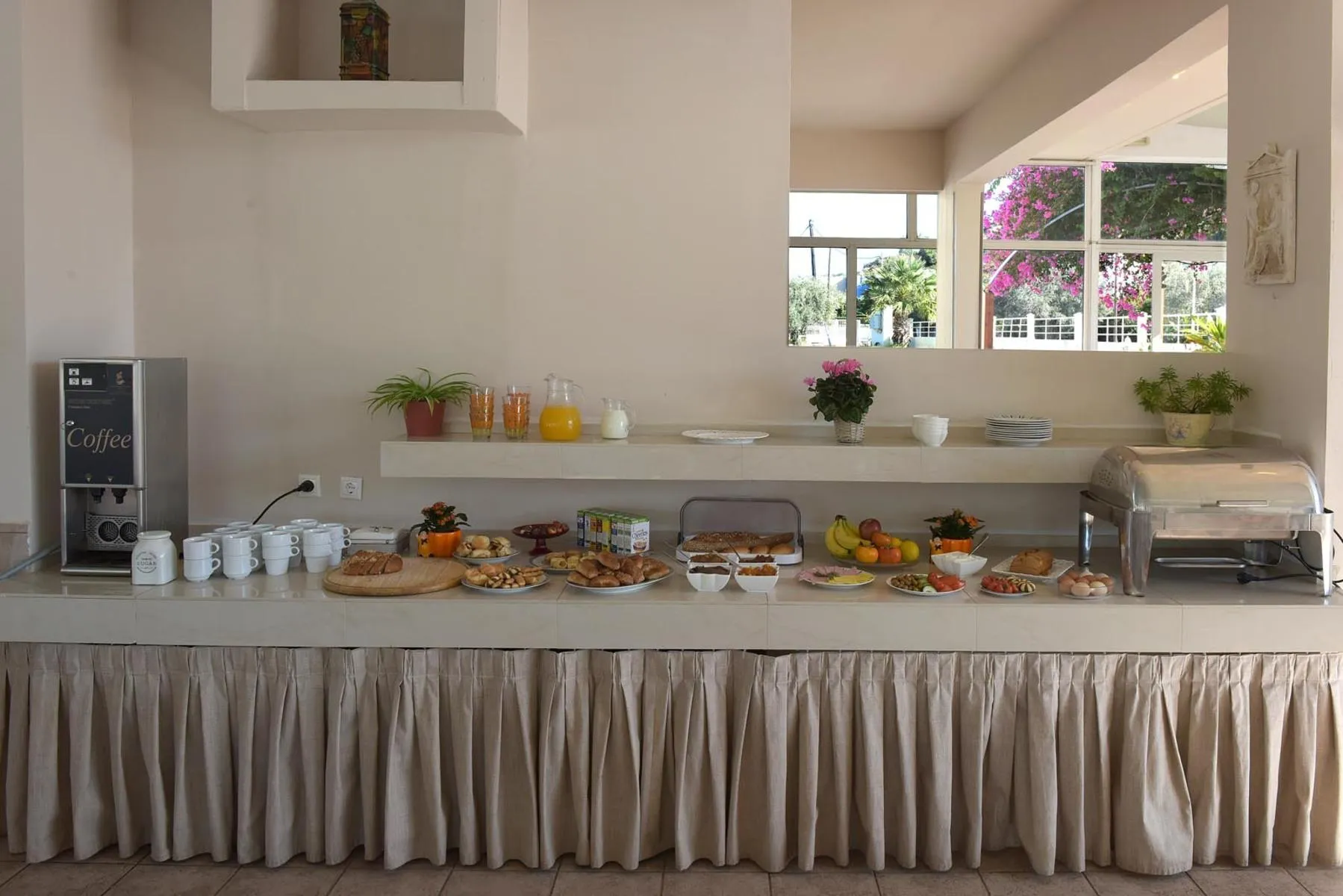 Approx. 1,2 km from a sandy beach is situated the hotel Evita Studios. At the beach are sun umbrellas and sun loungers for a fee. The tourist centre is about 1,5 km away. The town Rhodos is around 15 km away (Faliraki around 1,5 km, Kalithies Village around 3 km). The nearest shopping facilities are located approx. 1,5 km from the hotel, a supermarket can be reached after around 500 m. It is 1,5 km from the hotel to the nearest bars and restaurants. Also the nearest disco is around 1,5 km away.