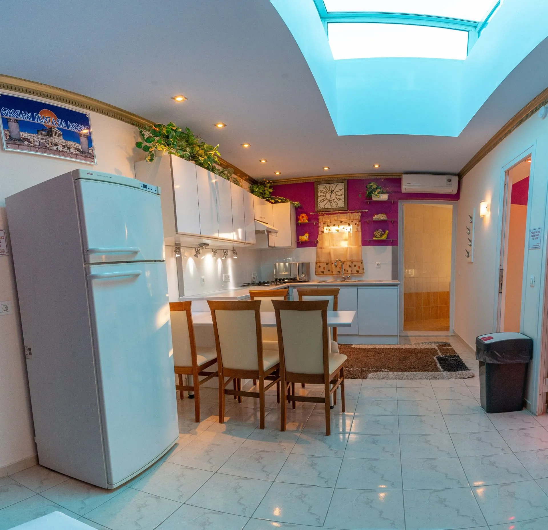 The aparthotel GRECIAN FANTASIA RESORT is located approximately 350 m from a beach. Nearby there is a disco which offers entertainment in high season. On the beach are sun umbrellas available. Cold drinks are served at the bar on the beach. The seasonally air-conditioned hotel is equipped with a 24h reception (check-in is possible around the clock), a lobby, Wi-Fi, internet access, a lift, a hairdresser, a first aid kit, parking spaces as well as a TV lounge with satellite TV. In the outdoor area you will find a heated pool that is open seasonally, where sun umbrellas and pool towels are available for free. You can store your valuables in the safe (extra fee), and your luggage in the hotel`s storage room. For the young hotel guests there is a playground. For very young guests, cots can also be provided. If you want to explore the holiday region, you can use the car and motorbike rental service close to the hotel (extra fee). In your hotel, a lot of focus is placed on sustainability. This includes among others a central room air-conditioning. Euro/Master Card and Visa are accepted as means of payment. Due to its barrier-free facilities , such as barrier-free entrances, wheelchair accessible rooms and wheelchair-accessible bathrooms, the hotel is also suitable for wheelchair users. Catering As catering services the hotel offers half board. Breakfast is offered from the buffet. Your physical well-being is catered for by the pool bar. Distances