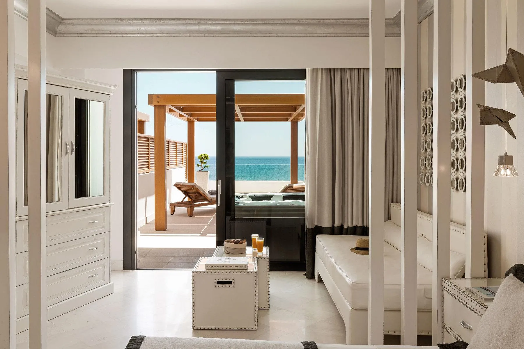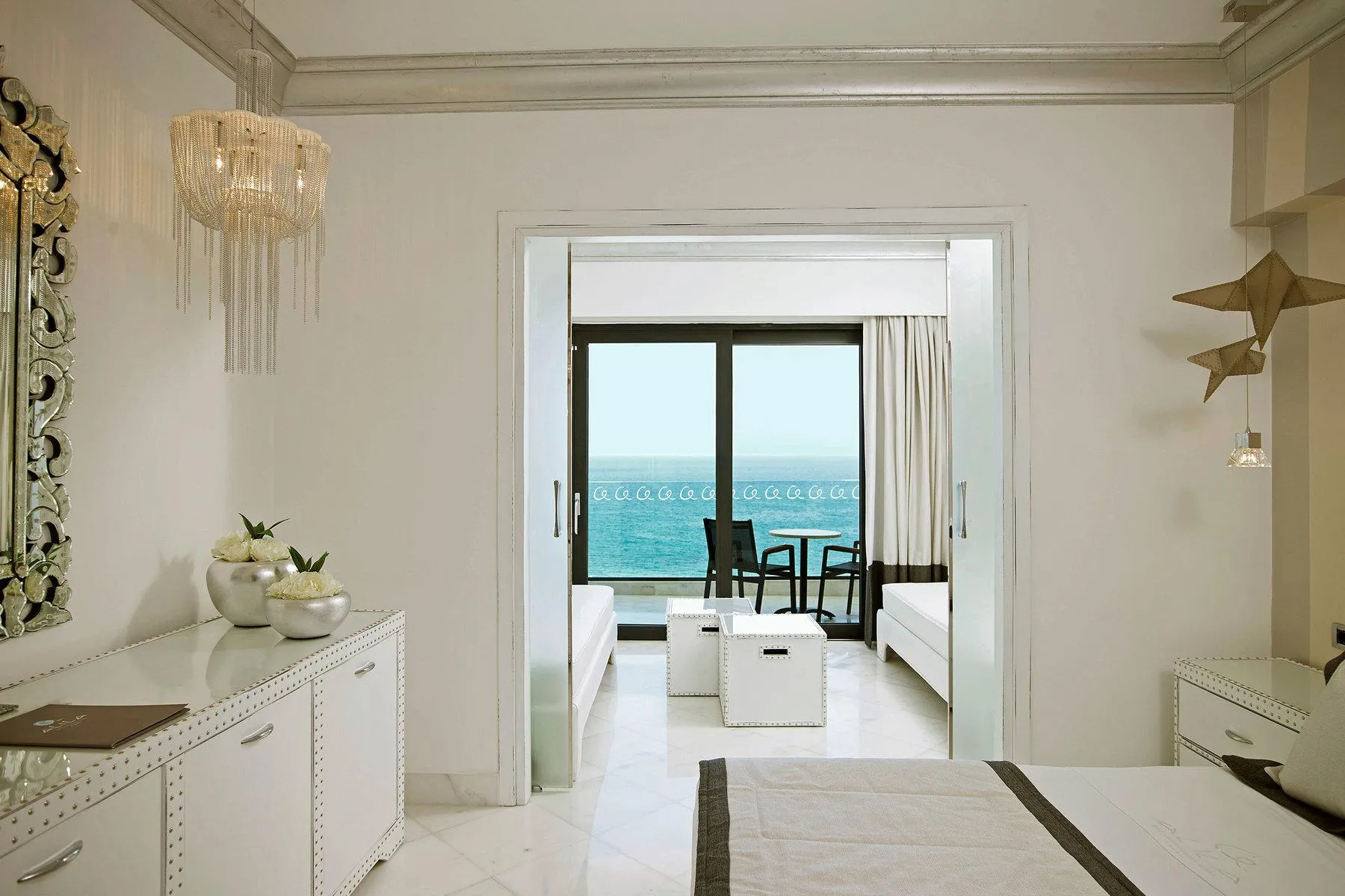 Visa, Euro / MasterCard and American Express. FamilyRoom (SeaView, Private Pool ): With twin bed, baby cot (for free), tiled floor, private pool, balcony or terrace, kettle (for free), minibar (for free), capsule coffee machine (for free), internet (for free), safe (for free) and flat screen sat TV as well as individually adjustable air conditioning. Bathroom with bathtub and shower. Towels are changed daily. FamilyRoom (SeaView, Private Pool Non-Refundable): With twin bed, baby cot (for free), tiled floor, private pool, balcony or terrace, kettle (for free), minibar (for free), capsule coffee machine (for free), internet (for free), safe (for free) and flat screen sat TV as well as individually adjustable air conditioning. Bathroom with bathtub and shower. Towels are changed daily. Standard FamilyRoom (Private-PoolTerrace): With twin bed, baby cot (for free), tiled floor, private pool, balcony or terrace, kettle (for free), minibar (for free), capsule coffee machine (for free), internet (for free), safe (for free) and flat screen sat TV as well as individually adjustable air conditioning. Bathroom with bathtub and shower. Towels are changed daily. Standard FamilyRoom (LateralSeaView): With twin bed, baby cot (for free), tiled floor, balcony or terrace, kettle (for free), minibar (for free), capsule coffee machine (for free), internet (for free), safe (for free) and flat screen sat TV as well as individually adjustable air conditioning. Bathroom with bathtub and shower (room size: 37 - 40 m²). Towels are changed daily. Standard FamilyRoom (LateralSeaView, Non-Refundable): With twin bed, baby cot (for free), tiled floor, balcony or terrace, kettle (for free), minibar (for free), capsule coffee machine (for free), internet (for free), safe (for free) and flat screen sat TV as well as individually adjustable air conditioning. Bathroom with bathtub and shower. Towels are changed daily. Standard FamilyRoom (SeaView): With twin bed, baby cot (for free), tiled floor, balcony or terrace, kettle (for free), minibar (for free), capsule coffee machine (for free), internet (for free), safe (for free) and flat screen sat TV as well as individually adjustable air conditioning. Bathroom with bathtub and shower (room size: 37 - 40 m²). Towels are changed daily. Standard FamilyRoom (SeaView, Non-Refundable): With twin bed, baby cot (for free), tiled floor, balcony or terrace, kettle (for free), minibar (for free), capsule coffee machine (for free), internet (for free), safe (for free) and flat screen sat TV as well as individually adjustable air conditioning. Bathroom with bathtub and shower. Towels are changed daily. FamilySuite (SeaView, With Jacuzzi): With twin bed, baby cot (for free), tiled floor, balcony or terrace, kettle (for free), minibar (for free), capsule coffee machine (for free), internet (for free), safe (for free) and flat screen sat TV as well as individually adjustable air conditioning. Bathroom with bathtub and shower. Towels are changed daily. FamilySuite (SeaView, With Jacuzzi Non-Refundable): With twin bed, baby cot (for free), tiled floor, balcony or terrace, kettle (for free), minibar (for free), capsule coffee machine (for free), internet (for free), safe (for free) and flat screen sat TV as well as individually adjustable air conditioning. Bathroom with bathtub and shower. Towels are changed daily. Standard FamilySuite (SeaView, Private Jacuzzi Terrace): With twin bed, sofa bed as extra bed, baby cot (for free), tiled floor, jacuzzi, balcony or terrace, kettle (for free), minibar (for free), capsule coffee machine (for free), internet (for free), safe (for free) and flat screen sat TV as well as individually adjustable air conditioning. Bathroom with bathtub and shower (room size: 37 m²). Towels are changed daily. JuniorSuite (SeaView, With Jacuzzi): With twin bed, baby cot (for free), tiled floor, balcony or terrace, kettle (for free), minibar (for free), capsule coffee machine (for free), internet (for free), safe (for free) and flat screen sat TV as well as individually adjustable air conditioning. Bathroom with bathtub and shower (room size: 37 m²). Towels are changed daily. JuniorSuite (SeaView, With Jacuzzi Non-Refundable): With twin bed, baby cot (for free), tiled floor, balcony or terrace, kettle (for free), minibar (for free), capsule coffee machine (for free), internet (for free), safe (for free) and flat screen sat TV as well as individually adjustable air conditioning. Bathroom with bathtub and shower (room size: 37 m²). Towels are changed daily. Standard JuniorSuite (SeaView, With Jacuzzi): With twin bed, baby cot (for free), tiled floor, jacuzzi, balcony or terrace, kettle (for free), minibar (for free), capsule coffee machine (for free), internet (for free), safe (for free) and flat screen sat TV as well as individually adjustable air conditioning. Bathroom with bathtub and shower (room size: 35 m²). Towels are changed daily. Double Room (MountainView): With twin bed, baby cot (for free), tiled floor, balcony or terrace, kettle (for free), minibar (for free), capsule coffee machine (for free), internet (for free), safe (for free) and flat screen sat TV as well as individually adjustable air conditioning. Bathroom with bathtub. Towels are changed daily. Double Room (MountainView, Reduced Mobility): With twin bed, baby cot (for free), tiled floor, balcony or terrace, kettle (for free), minibar (for free), capsule coffee machine (for free), internet (for free), safe (for free) and flat screen sat TV as well as individually adjustable air conditioning. Bathroom with bathtub and shower (room size: 35 m²). Towels are changed daily. Double Room (MountainView, Non-Refundable): With twin bed, baby cot (for free), tiled floor, balcony or terrace, kettle (for free), minibar (for free), capsule coffee machine (for free), internet (for free), safe (for free) and flat screen sat TV as well as individually adjustable air conditioning. Bathroom with bathtub (room size: 35