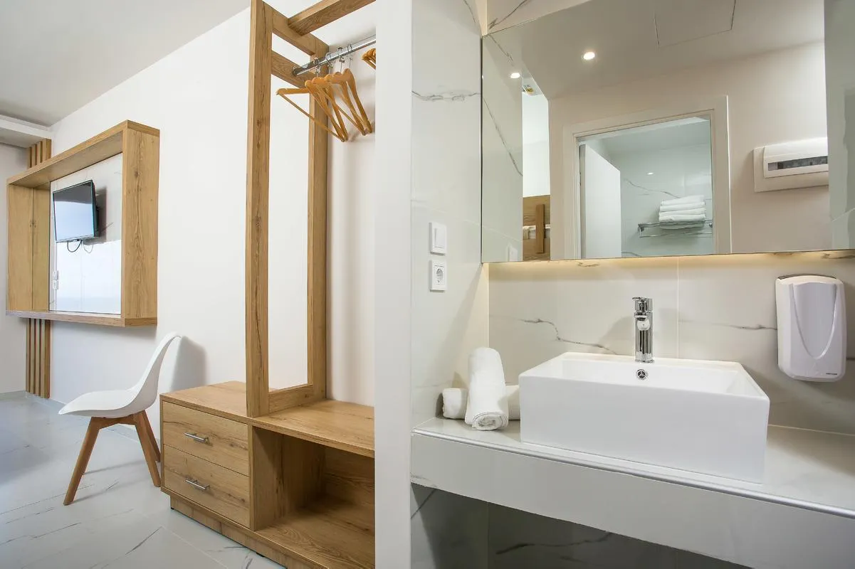 The hotel Venezia Resort Hotel and Spa, especially popular with families and honeymooners, is located approx. 2 km from a sandy beach, linked from May to October by a free shuttle service. At the beach, there are sun loungers and sun umbrellas for a fee. The tourist centre is about 2 km away. The town Faliraki is around 2 km away (Rhodes around 12 km, Lindos around 36 km). You can find a food store and other shopping facilities approx. 2 km away. It is 1,5 km from the hotel to the nearest bars and restaurants. For evening dancing you will find a nightclub in a distance of approx. 2 km.