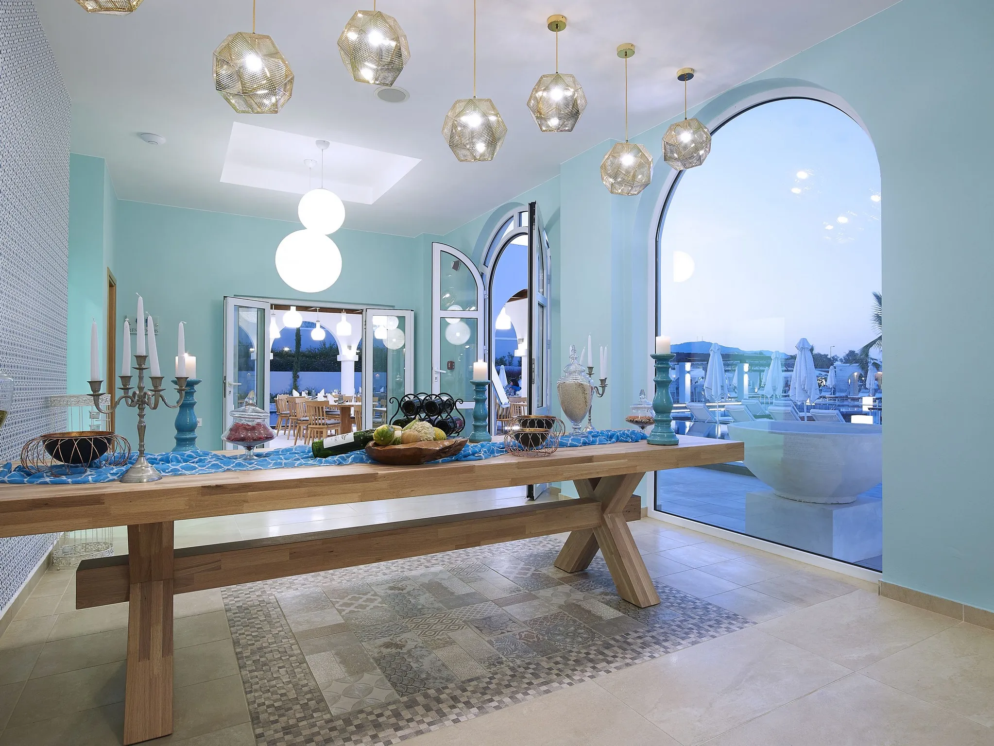 The Hotel offers four outdoor swimming pools and one indoor heated swimming pool provide a heaven for relaxation. Pools are restricted to residents, hotel guests and beach club members. When visiting the pool areas, guests may be asked to provide their room key. Gazebos/Cabanas at the Pools are available upon reservation. They include personalized services to make the guests’ day in the sun more enjoyable. The hotel provides also 60 private and sharing pools, spacious meeting rooms, and an innovative based children’s program. Enjoy the holiday at Anemos Luxury Grand Resort and experience Greek hospitality. The resort is combining the Greek and the local Cretan architecture with luxurious, modern facilities and amenities.The five restaurants of Anemos the guests can enjoy dishes combining the tradition with modern cuisine, always with respect to the products, the flavors the aromas, using Cretan cuisine techniques, including the best ingredients that Cretan land offers, creating delightful dishes faithfully following the tradition. At the four bars, the relaxing and cozy furnishing in combination with lounge music offer a first impression of tranquility and luxury. Coffee, tea or cocktails are served at all times.