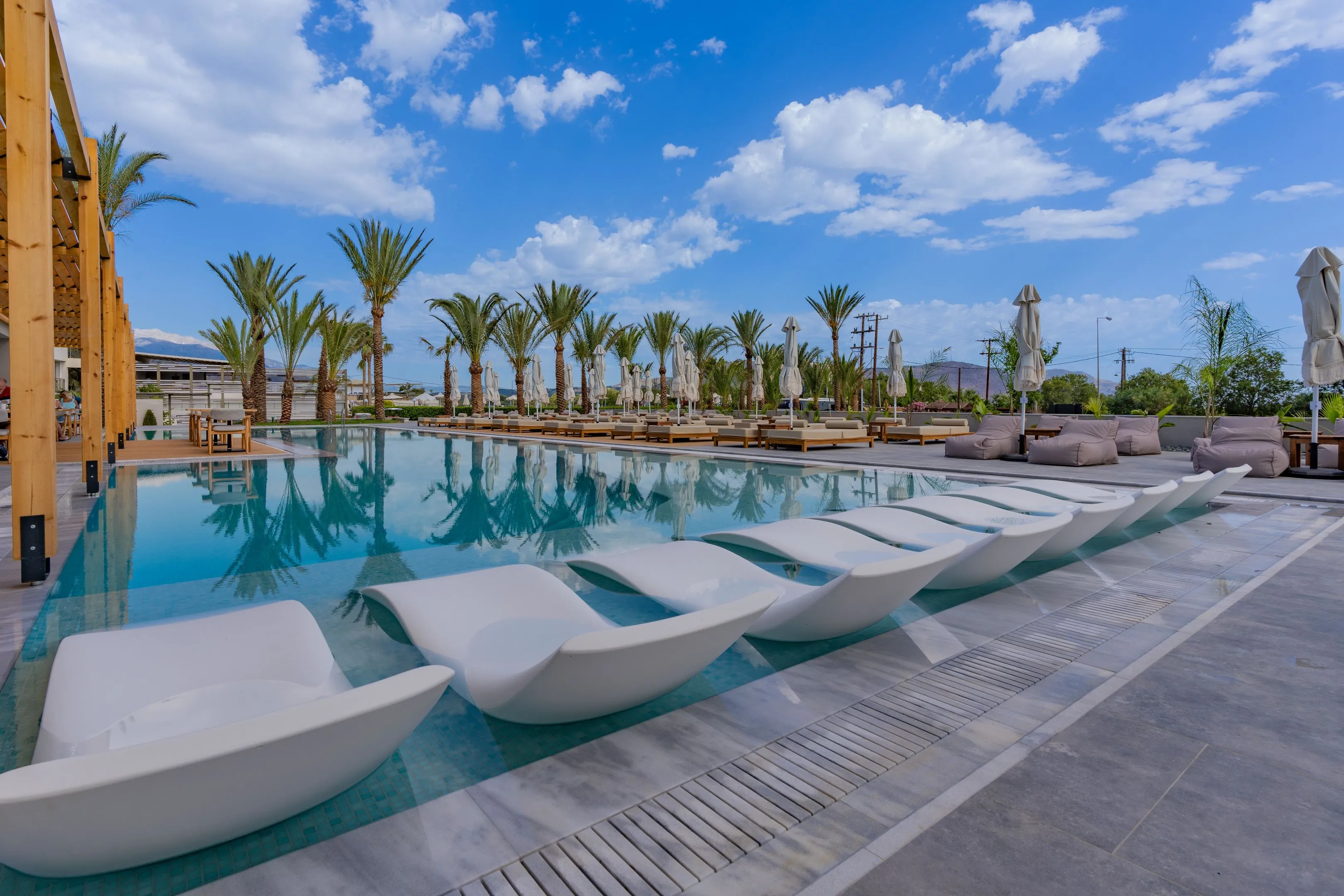 Georgioupolis Suites is a 5-star boho lifestyle complex providing accommodation for 1 to 4 persons consists of Suites with a separated living room and 2-bedroom family rooms. Newly built, all guestrooms are functional and contemporary, with a tropical décor, comfortable furnishings, King Size beds, and sofa beds, free Wi-Fi and views of the mountains, the sea and the garden. In addition, a wide array of dining options, on-site recreational and leisure activities as well as wellbeing facilities are at the guests’ disposal.