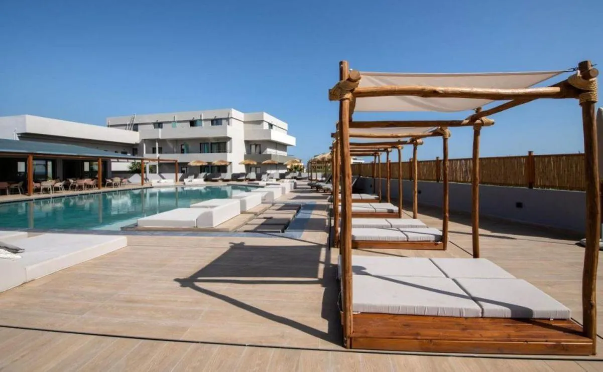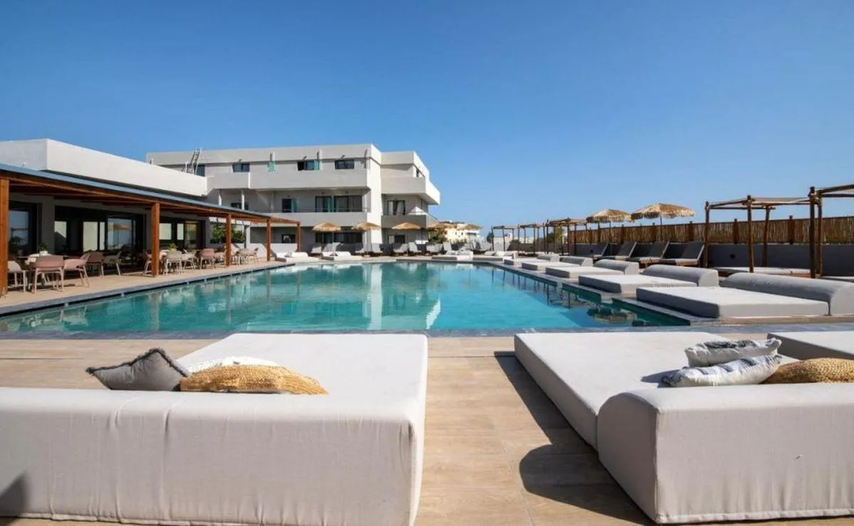 Completely renovated in 2023, the 3-storey 2nd row beach hotel has 40 rooms in total. It is equipped with a reception (check-in from 15:00, check-out until 11:00), a lift, a safe (for a fee), a parking area (for free) as well as a security entry system. You can relax in good company in the hotel bar. WiFi is available for free. Room service is free of charge. Pool: In the outdoor area of the hotel you will find one fresh water pool. Here, there are sun umbrellas and sun loungers for free available. At the pool bar you can get refreshing beverages.