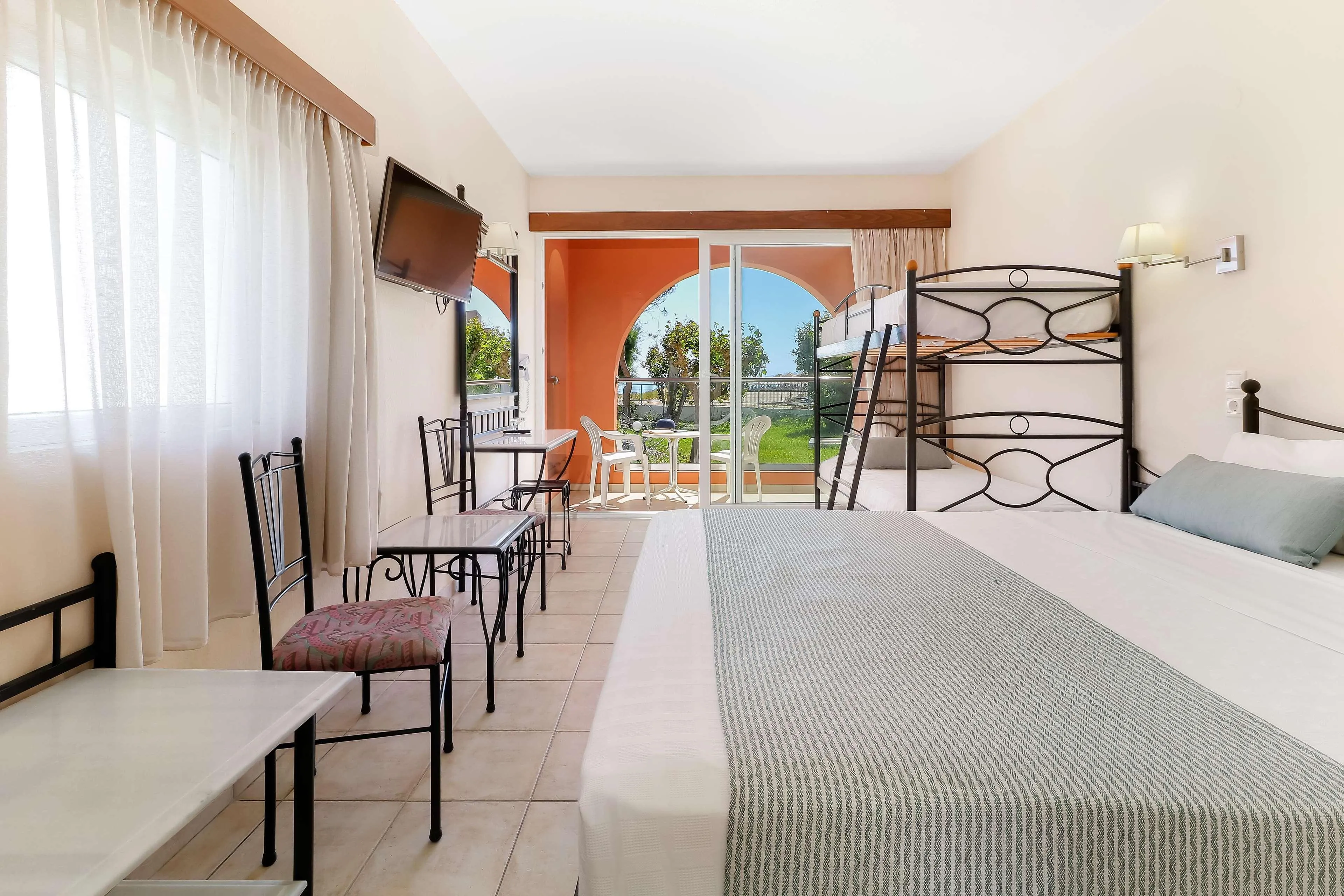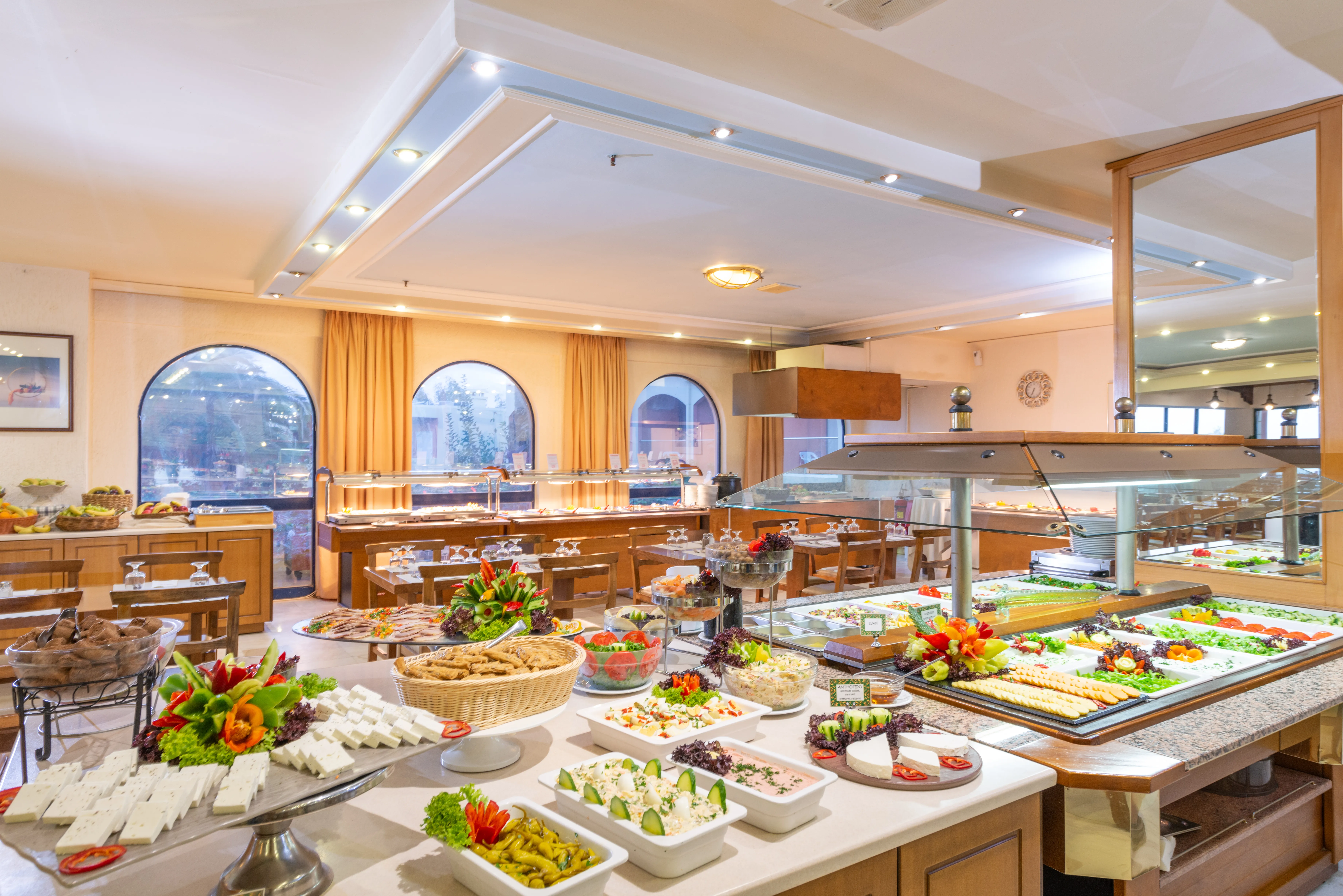 Breakfast; Breakfast buffet; Hot breakfast; Buffet lunch; À la carte lunch; Buffet dinner; Set menu dinner; Breakfast and dinner; Breakfast and lunch; Half Board; All inclusive; All inclusive with alcoholic drinks own brands; Snacks Sports:Banana boating (Extra Fee); Waterskiing (Extra Fee); Jet ski (Extra Fee); Motor board ride (Extra Fee); Windsurfing (Extra Fee); Sailing; Catamaran sailing (Extra Fee); Canoeing (Extra Fee); Pedal boating (Extra Fee); Table tennis (Extra Fee); Beach volleyball (Extra Fee); Billiards (Extra Fee); Mini golf; Tennis Healthy & Safety (COVID):Greece - Health First