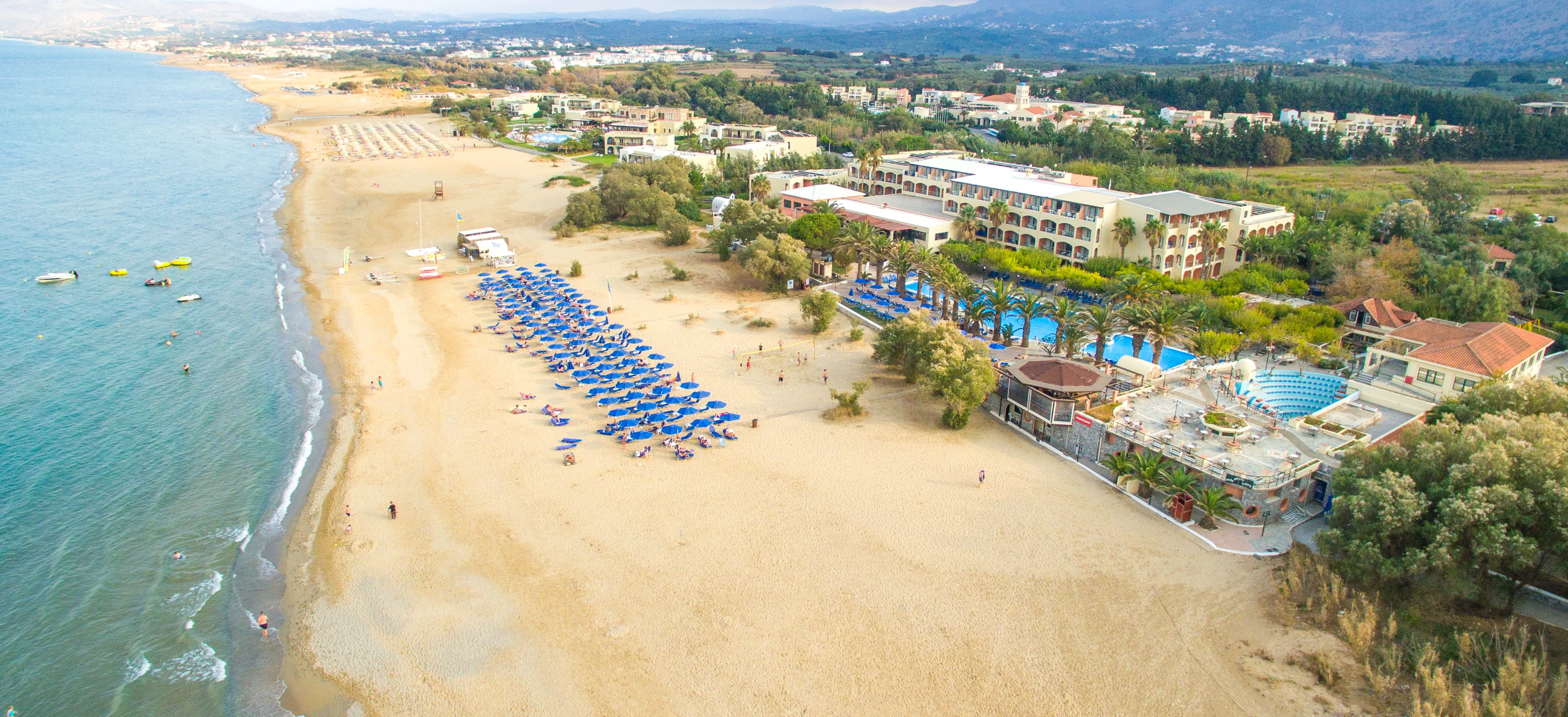 Directly situated on the broadest part of the Blue Flag awarded Perastikos Beach, just a 10' walk from the village of Georgioupolis. All rooms individually air-conditioned and open to a balcony or terrace. Each includes a 32” TV, hairdryer, mini-fridge and desk with mirror. Main restaurant featuring Greek and International cuisine. On-site tavern serves traditional dishes at dinner time. Vine-covered snack bar for drinks and light meals. In the afternoon the beach bar offers tasty cocktails. A children's pool and playground are provided for younger visitors. Mini market for the essentials within the premises. Free Wi-Fi available in public areas and rooms. Hotel located 1.5km from Georgioupolis and 5km from Kournas Lake. Chania airport (CHQ) is 45 km away, Heraklion airport (HER) is 120km away. Public bus stop situated in front of the Hotel. Free, private parking. Location:200 Total number of rooms; Connecting rooms Hotel type:hotel Room facilities (Standard room):25 Room size (sqm); 1 Number of bedrooms; Living room; 1 Bathroom; Disability-friendly bathroom; Bathtub; Hairdryer; Make-up mirror; Wi-fi; Internet access; Direct dial telephone; TV; 220V power supply; Mini fridge; Individually adjustable air conditioning; Individually adjustable heating ; Balcony; Terrace; Wheelchair-accessible; Wake-up service; Desk; Smoking rooms; Housekeeping; Extra beds on demand (Extra Fee); Cot on demand Facilities:Small pets allowed (under 5 kg); Large pets allowed (over 5 kg); Wheelchair-accessible; Car park; Garage; Key Collection; 24-hour reception; Check-in hour; Check-out hour; Late Check-out (Extra Fee); Mobile phone coverage; Wired Internet; Wi-fi; Local and international calls; Currency exchange facilities; Newspaper stand; Shop; Garden; Terrace; Sun terrace; Luggage room; Dining area; Private pool Catering:Café; Bar; Restaurant; Non-smoking area; Highchairs; Poolside snack bar; Show cooking; Breakfast room Business:1 Meeting room; Projector (Extra Fee); Printer (Extra Fee); Photocopier (Extra Fee); Fax (Extra Fee) Entertainment:Sun loungers; Parasols; Children playground; TV lounge; Theatre / auditorium Health:Massage (Extra Fee)