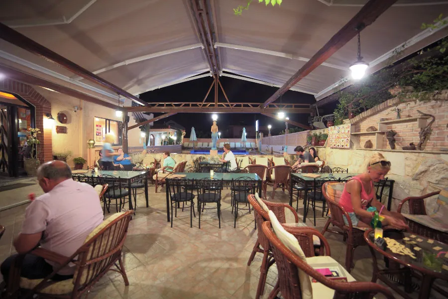 A fully renovated but also attractive, comfortable, air-conditioned rooms with quality service and reasonable prices. The restaurant is also accessible by the main road and is preferred by many passers-by. The restaurant offers a wide range of tasty dishes and can satisfy even the most demanding guests. In the hotel restaurant the guests can taste the local cuisine, all dishes prepared with the well-known Cretan art and local olive oil. The half board guests can enjoy a breakfast and dinner style buffet. The guests can start their day by having a coffee at the nice veranda by the pool and go on by ordering a snack or other specialty for lunch and later on coffee and cake. They can finish their day enjoying a drink. Near the restaurant there is also a nice air-conditioned bar with satellite TV and DVD / video, which is the meeting point for our guests.