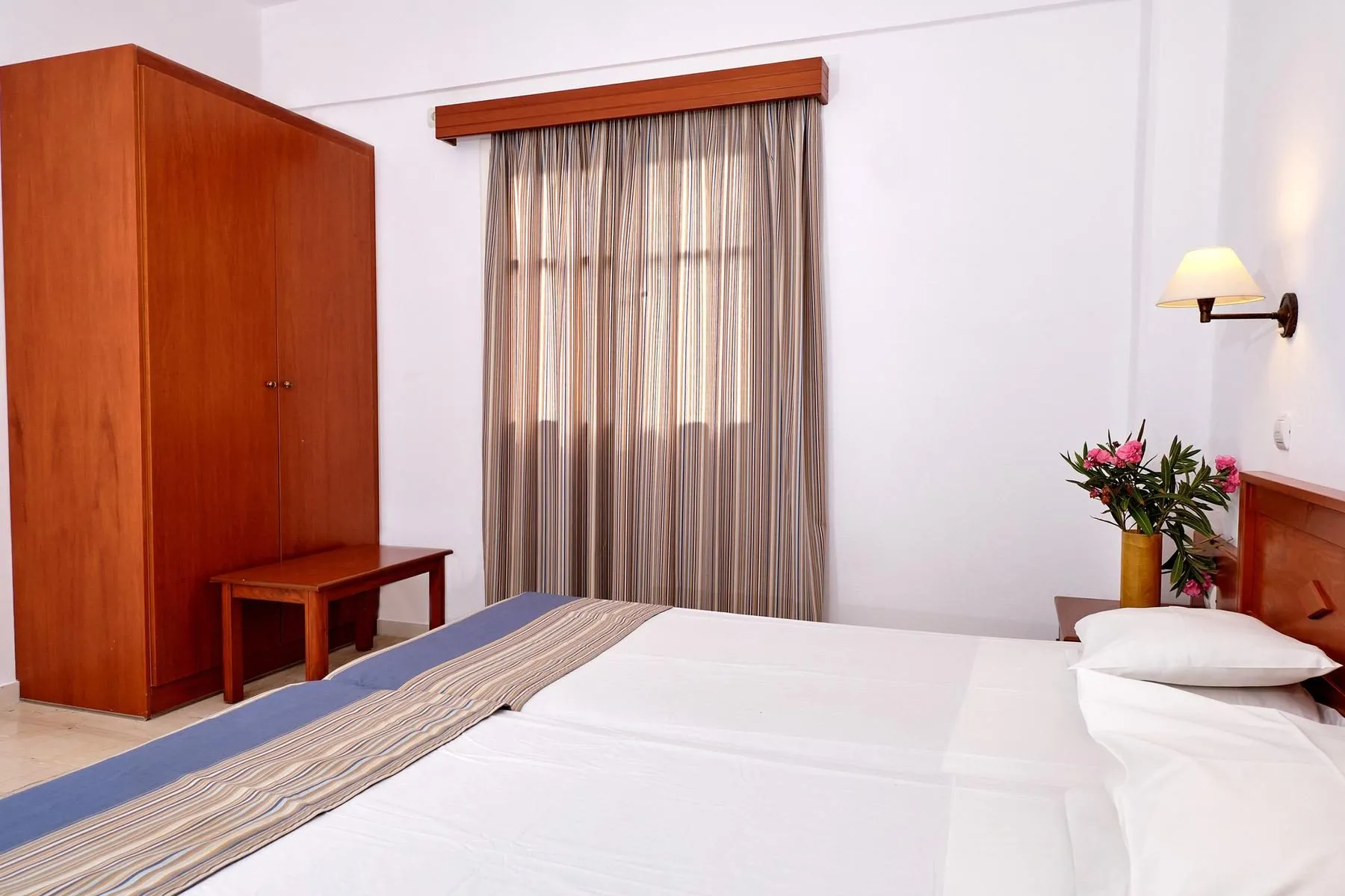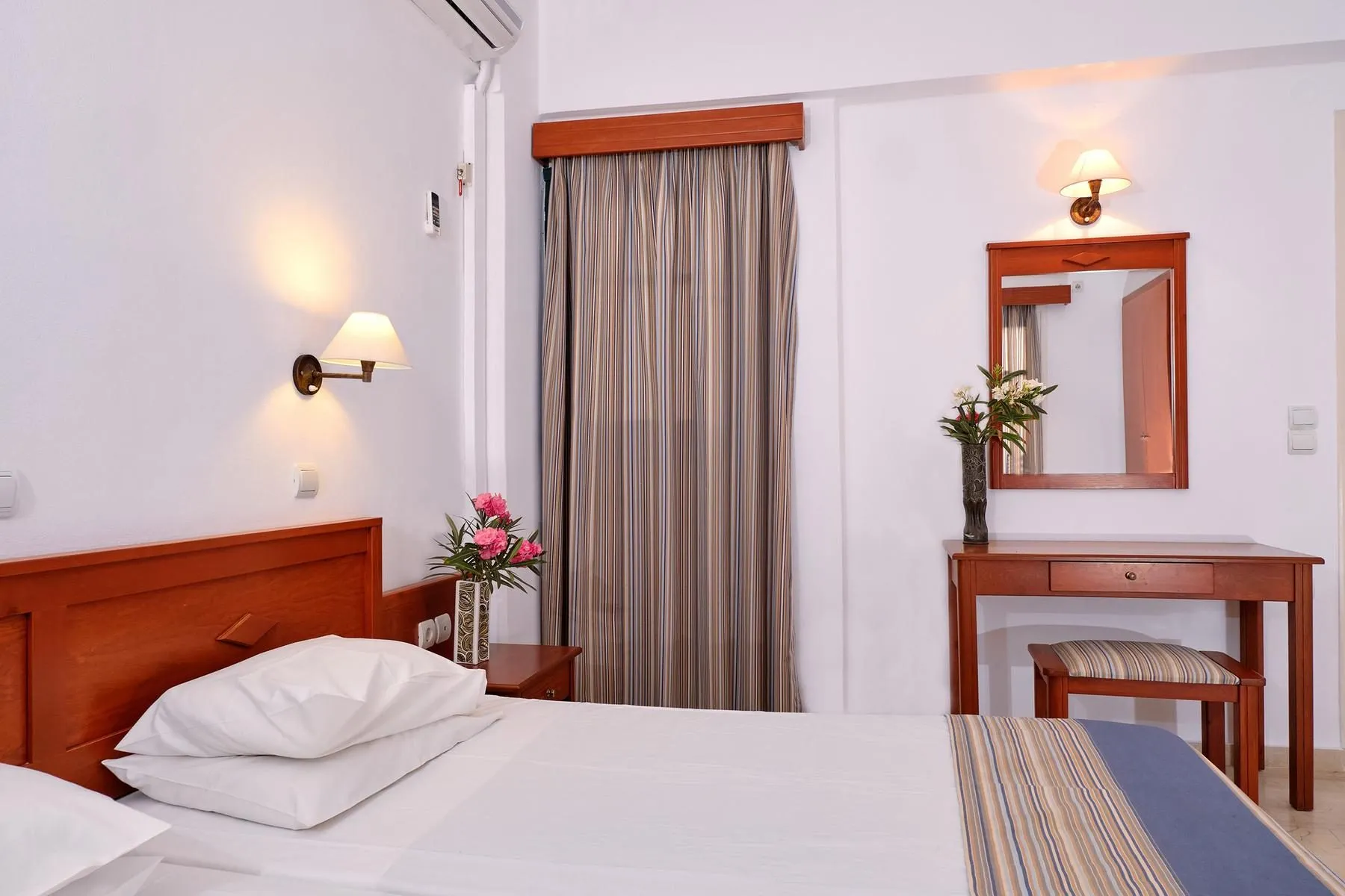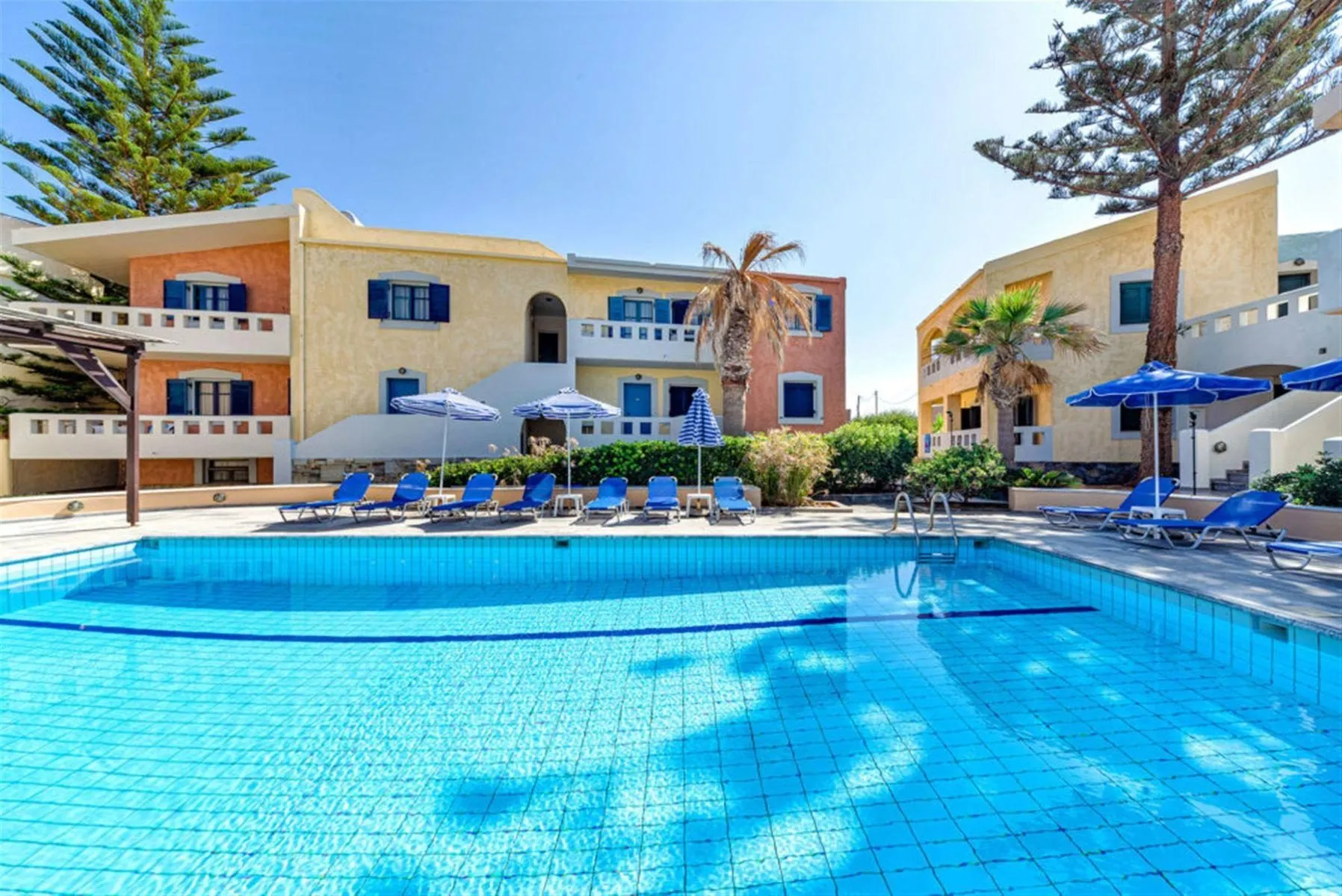 Descriere generală La doar câțiva pași de o plajă cu nisip/cu stânci se găsește hotelul Niros Beach. Pe plajă sunt disponibile șezlonguri și umbrele de soare la un cost suplimentar. Cel mai apropiat oraș este Heraklion. În apropierea hotelului sunt diverse magazine și un supermarket. De asemenea, există o discotecă la mică distanță de hotel. Următoarele atracții pot fi accesate de la hotel: Spinaloga Island (cca. 54 km), Creta Aquarium, Knossos Palace și Malia Palace. Aveți la dispoziție o stație de autobuz (cca. 850 m) cea ce vă oferă mobilitate în timpul vacanței. Aeroportul (CHQ) se află la aprox. 162 km. Un alt aeroport (HER) este la cca. 12 km. Facilități Hotelul familiar, care a fost renovat parțial în 2021, dispune de un singur etaj și peste 30 camere repartizate între o clădire principală și de 5 clădiri secundare. Acesta oferă oaspeților săi recepție (check-in de la 14:00, check out până la 11:30), lobby cu bar, aer condiționat, seif (contra cost) și parcare (gratuită). Pentru a servi masa vă stau la dispoziție un snackbar. Accesul la internet WiFi este disponibil gratuit pentru oaspeții hotelului. Este posibil să se perceapă un cost suplimentar pentru serviciul de menaj. Piscină Zona exterioară a hotelului include o piscină cu apă dulce. Acolo sunt disponibile gratuit șezlonguri și umbrele de soare. Un bar lângă piscină oferă oaspeților băuturi răcoritoare. Catering Mic dejun (între orele 07:30 - 10:00) bufet suedez. Sport/Leisure Este disponibil: Tenis de masă (posibil contra cost). În apropiere a hotelului este situat un teren de golf. Informații suplimentare Pentru anumite facilități sau activități se pot aplica taxe suplimentare. Unele servicii depind de anotimp și de condițiile climatice locale. Limbi de serviciu: engleză și rusă. Carduri de credit: Visa. 1 Schlafzimmer Standard Apartment: Dotate cu pat dublu sau pat twin, pat suplimentar, pat pentru bebeluși (gratuit), pardoseală cu gresie, chicinetă, ceainic (gratuit), balcon sau terasă, acces la internet (gratuit), seif (contra cost) și TV cu ecran plat prin satelit precum și aer condiționat reglabil individual (contra cost). Baie cu duș. Lenjeria de pat se schimbă de 2 ori pe săptămână. Dimensiune: 45 m².