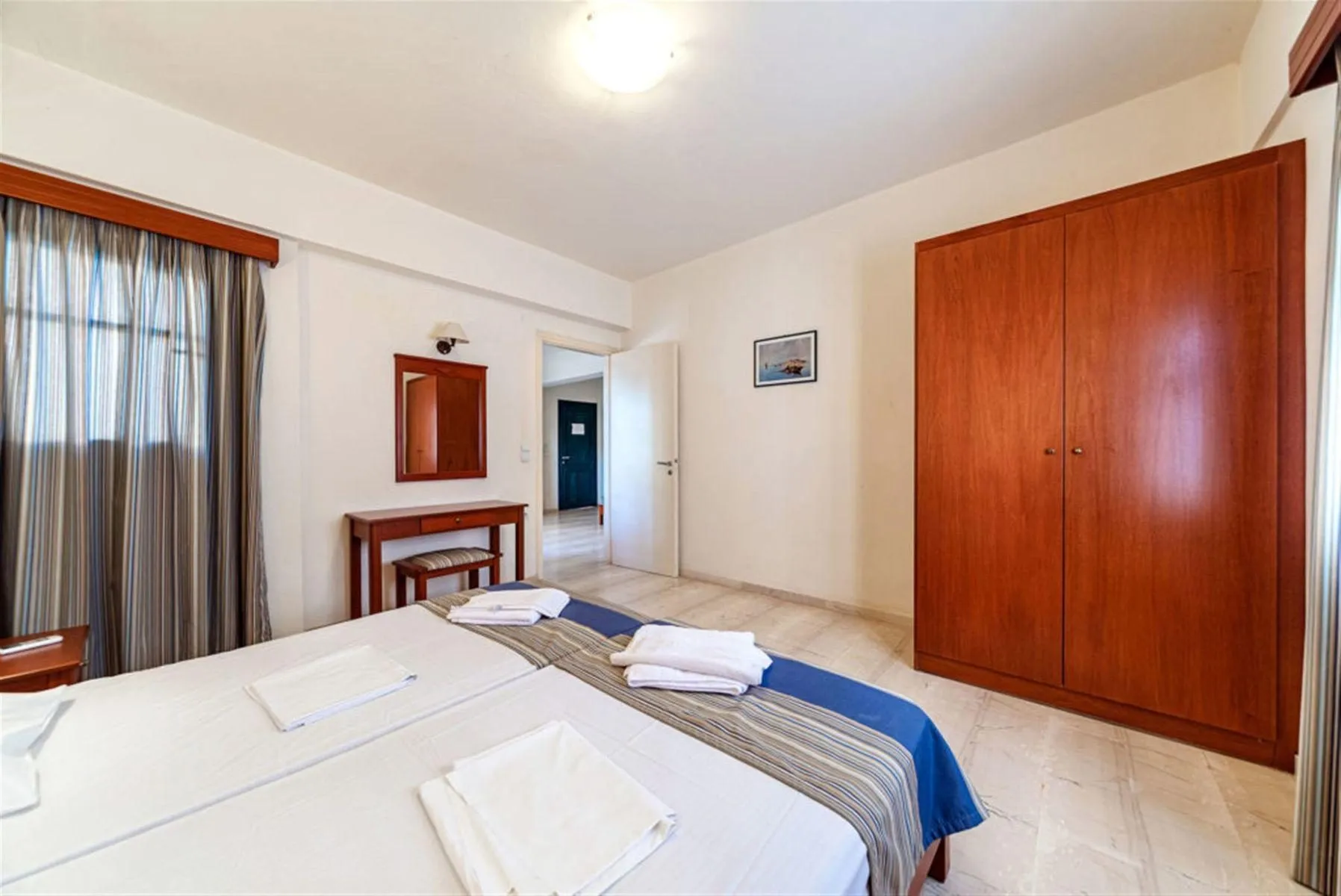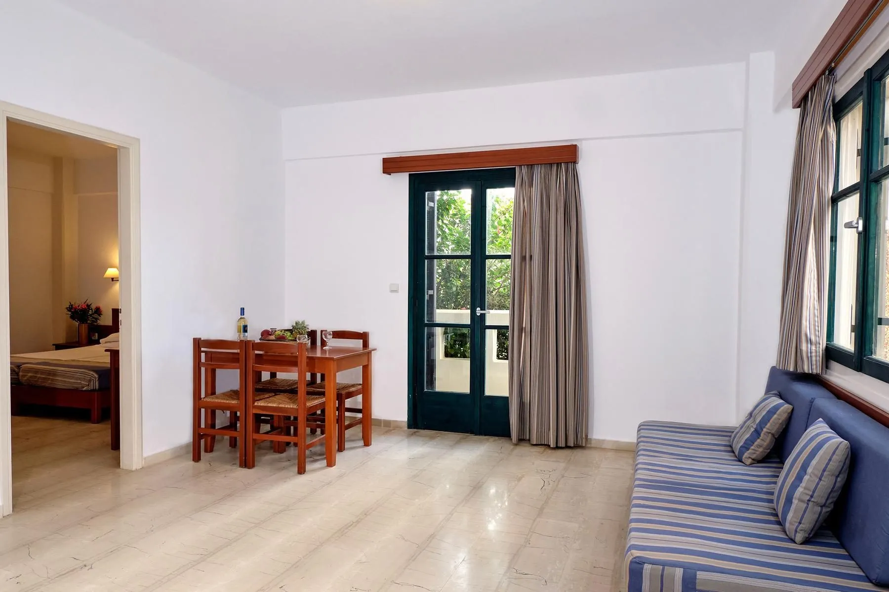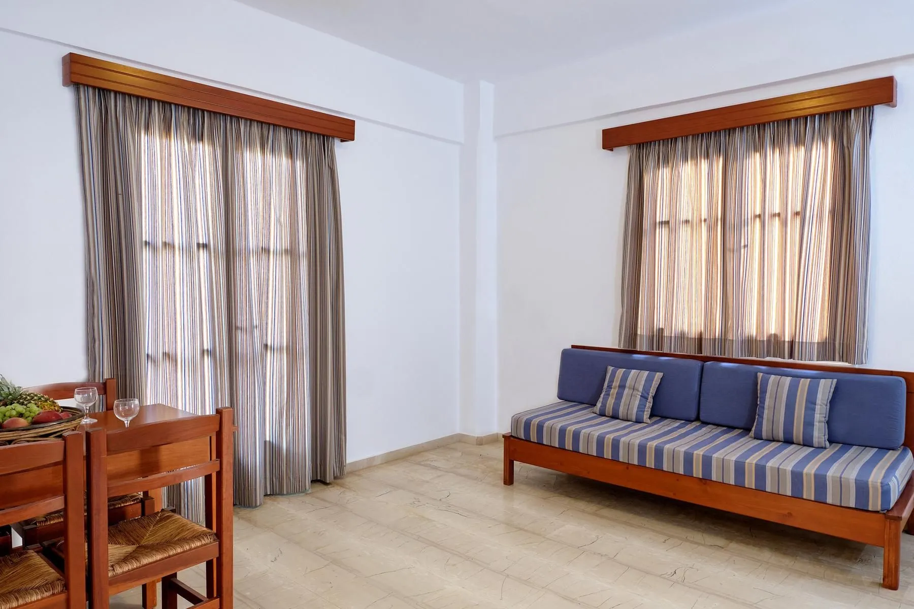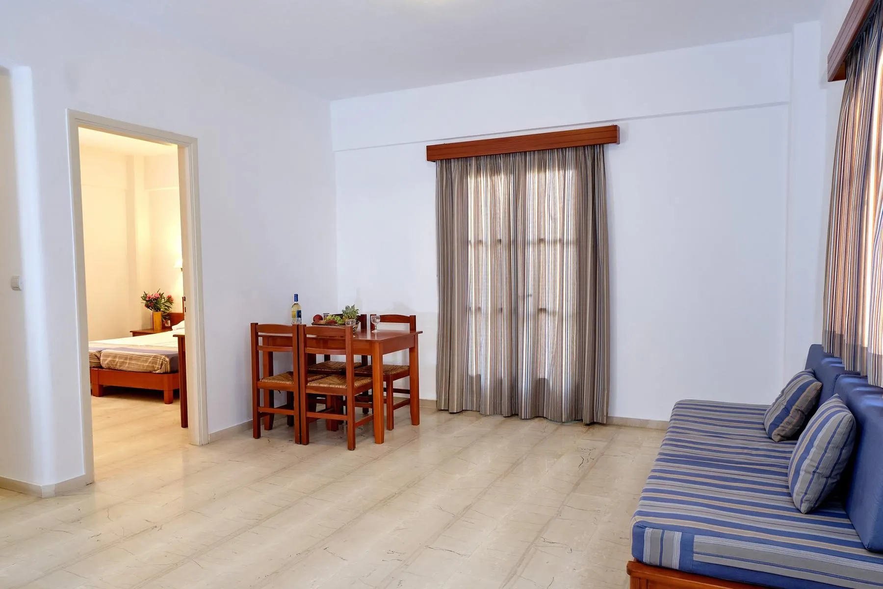 Descriere generală La doar câțiva pași de o plajă cu nisip/cu stânci se găsește hotelul Niros Beach. Pe plajă sunt disponibile șezlonguri și umbrele de soare la un cost suplimentar. Cel mai apropiat oraș este Heraklion. În apropierea hotelului sunt diverse magazine și un supermarket. De asemenea, există o discotecă la mică distanță de hotel. Următoarele atracții pot fi accesate de la hotel: Spinaloga Island (cca. 54 km), Creta Aquarium, Knossos Palace și Malia Palace. Aveți la dispoziție o stație de autobuz (cca. 850 m) cea ce vă oferă mobilitate în timpul vacanței. Aeroportul (CHQ) se află la aprox. 162 km. Un alt aeroport (HER) este la cca. 12 km. Facilități Hotelul familiar, care a fost renovat parțial în 2021, dispune de un singur etaj și peste 30 camere repartizate între o clădire principală și de 5 clădiri secundare. Acesta oferă oaspeților săi recepție (check-in de la 14:00, check out până la 11:30), lobby cu bar, aer condiționat, seif (contra cost) și parcare (gratuită). Pentru a servi masa vă stau la dispoziție un snackbar. Accesul la internet WiFi este disponibil gratuit pentru oaspeții hotelului. Este posibil să se perceapă un cost suplimentar pentru serviciul de menaj. Piscină Zona exterioară a hotelului include o piscină cu apă dulce. Acolo sunt disponibile gratuit șezlonguri și umbrele de soare. Un bar lângă piscină oferă oaspeților băuturi răcoritoare. Catering Mic dejun (între orele 07:30 - 10:00) bufet suedez. Sport/Leisure Este disponibil: Tenis de masă (posibil contra cost). În apropiere a hotelului este situat un teren de golf. Informații suplimentare Pentru anumite facilități sau activități se pot aplica taxe suplimentare. Unele servicii depind de anotimp și de condițiile climatice locale. Limbi de serviciu: engleză și rusă. Carduri de credit: Visa. 1 Schlafzimmer Standard Apartment: Dotate cu pat dublu sau pat twin, pat suplimentar, pat pentru bebeluși (gratuit), pardoseală cu gresie, chicinetă, ceainic (gratuit), balcon sau terasă, acces la internet (gratuit), seif (contra cost) și TV cu ecran plat prin satelit precum și aer condiționat reglabil individual (contra cost). Baie cu duș. Lenjeria de pat se schimbă de 2 ori pe săptămână. Dimensiune: 45 m².