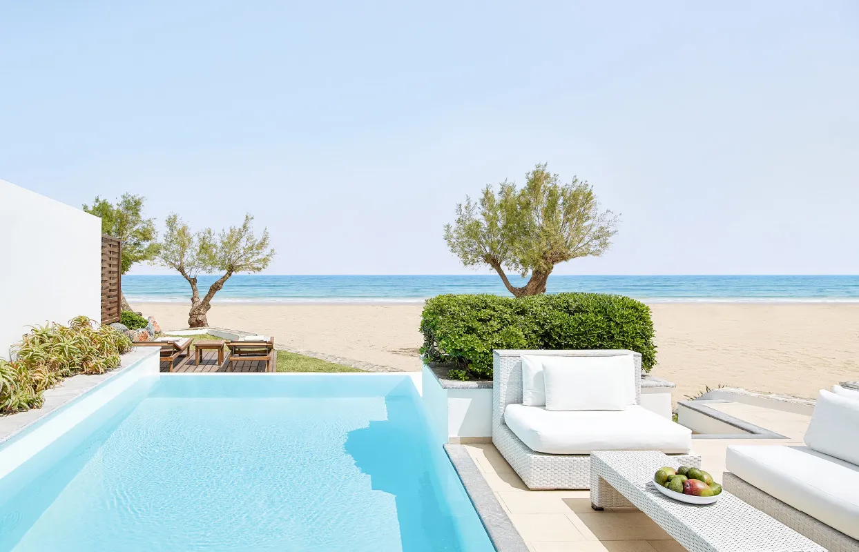 Elegantly decorated rooms offer a complete feeling of luxury and all the comforts and amenities that set the standard at Amirandes. Ample space, ideal for families, offering amazing views to Amirandes’ Cretan gardens. White-colored suites, designed for sophisticated travelers who demand superior comfort with elegance and magnificent sea views, or comfortable 2 level suites with one or two master bedrooms, surrounded by beautiful gardens. Indulge in the pinnacle of luxury where every detail is designed for an extraordinary experience. For beachfront elegance, Villas offer direct beach access with private verandas and heated pools. Experience unparalleled opulence with Amirandes Signature Residences, the epitome of luxury and sophistication. The Grand Beach Residence boasts two private heated pools, expansive gardens, and beachfront access. For unrivaled space and style, the 3 Bedroom Villa Sea View features a private terrace, heated pool, and fully equipped kitchen.