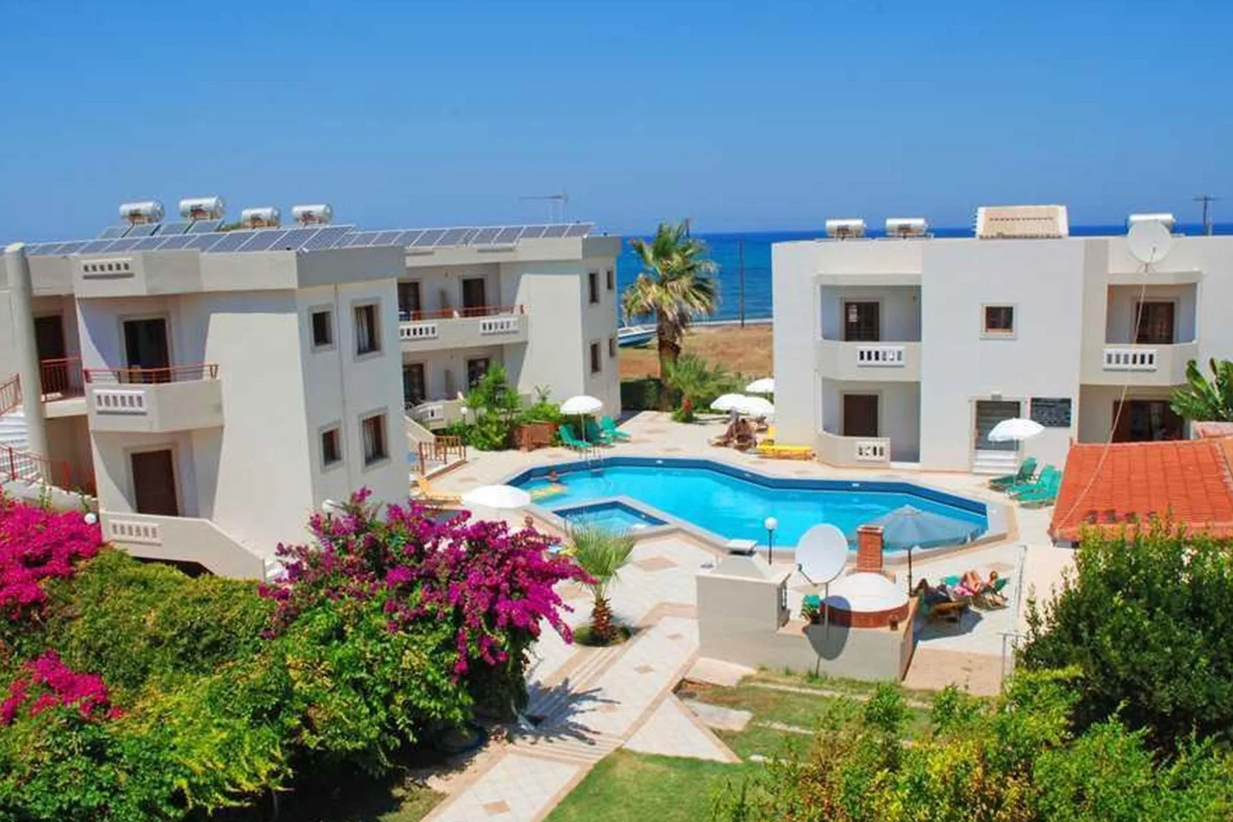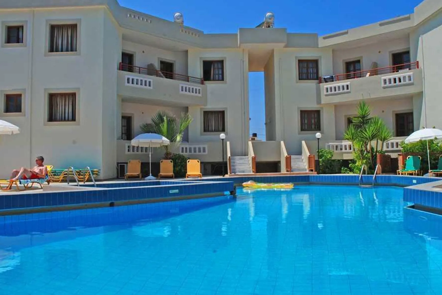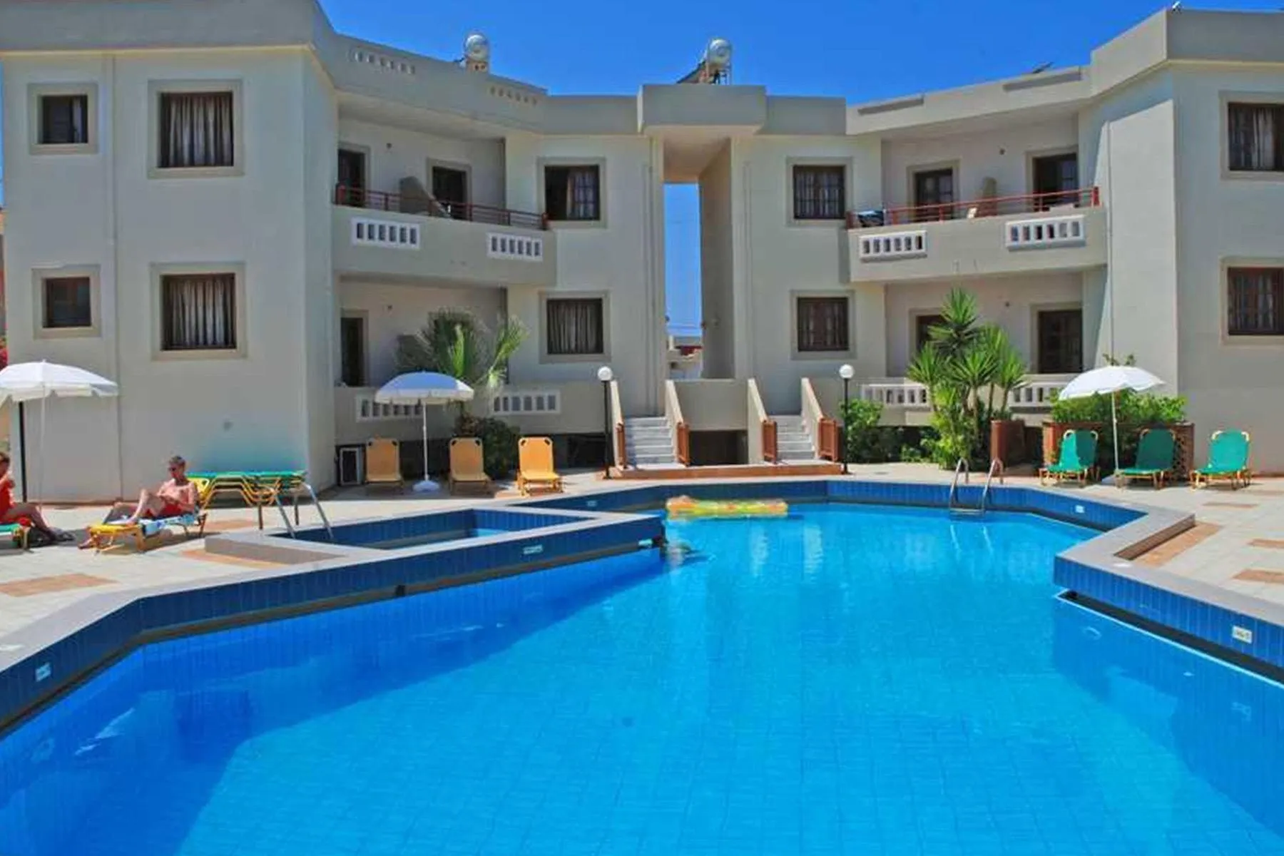 Descriere generală La doar câțiva pași de o plajă se găsește hotelul John Mary Apartments. Centrul turistic al stațiunii se află la aprox. 2 km. Orașul Herakliom este la aprox. 17 km (Hersonissos cca. 7 km, Reathymno cca. 75 km). Magazinele sunt la aprox. 2 km de hotel, și veți găsi un supermarket la cca. 100 m. La cele mai apropiate baruri și restaurante se poate ajunge, de asemenea, într-un timp foarte scurt. O discotecă aflată la aprox. 2 km vă invită la dans. Următoarele atracții pot fi accesate de la hotel: Knossos Palace (cca. 20 km), Spinaloga (cca. 45 km), Faistos (cca. 65 km), Chania old town (cca. 140 km) și Lassithi Plateau (cca. 35 km). Hotelul dispune de serviciu de rentacar. De asemenea, aveți în apropiere o stație de autobuz (cca. 500 m) și o stație de taxi (cca. 1,2 km) cea ce vă garantează mobilitatea în vacanță. Pentru îngrijiri medicale în caz de urgență, există un spital la cca. 20 km distanță. Aeroportul (CHQ) se află la aprox. 163 km. Un alt aeroport (HER) este la cca. 17 km. Facilități Hotelul dispune de 2 etaje și peste 28 camere repartizate între o clădire principală și de 2 clădiri secundare. Acesta oferă oaspeților săi recepție (check-in de la 15:00, check out până la 11:00), lift, aer condiționat, seif (gratuit) și parcare (gratuită). Pentru a satisface apetitul aveți la dispoziție în hotel un snackbar. Accesul la internet WiFi este disponibil gratuit pentru oaspeții hotelului. Serviciul de menaj este gratuit. Spălătorie și călcat sunt disponibile la un cost suplimentar. Piscină Zona exterioară a hotelului decorat în stil mediteranean include o piscină precum și o piscină separată pentru copii. La piscină sunt disponibile șezlonguri gratuite. La barul piscinei va puteți bucura de o băutura răcoritoare (deschis între orele 10:00 - 18:00). Sport/Leisure La cca. 400 m de hotel, sunt oferite sporturi nautice (unele de către furnizori locali). La cca. 8 km de hotel este un teren de golf. Informații suplimentare Pentru anumite facilități sau activități se pot aplica taxe suplimentare. Unele servicii depind de anotimp și de condițiile climatice locale. Limbi de serviciu: engleză și greacă. Carduri de credit: Visa, Euro/MasterCard și American Express. Apartment: Dotate cu living, pat suplimentar, pat pentru bebeluși (gratuit), balcon, acces la internet (gratuit), seif (contra cost), TV și canale locale precum și aer condiționat reglabil individual (din aprilie până în noiembrie, contra cost). Baie cu cadă. Prosoapele se schimbă de 2 ori pe săptămână. Dimensiune: 33 - 38 m². Triple Apartment: Dotate cu living, pat suplimentar, pat pentru bebeluși (gratuit), balcon, acces la internet (gratuit), seif (contra cost), TV și canale locale precum și aer condiționat reglabil individual (din aprilie până în noiembrie, contra cost). Baie cu cadă. Prosoapele se schimbă de 2 ori pe săptămână. Dimensiune: 20 - 25 m². Annex JuniorSuite (Mit Jacuzzi): Cameră cu living, pat king-size, pat suplimentar, pat pentru bebeluși (gratuit), chicinetă, jacuzzi, ceainic (gratuit), balcon, acces la internet (gratuit), aparat de cafea cu capsule (gratuit), TV și canale locale. Baie cu duș. Prosoapele se schimbă de 2 ori pe săptămână. Dimensiune: 34 m². Annex JuniorSuite (Privater Pool): Dotate cu living, pat king-size, pat suplimentar, pat pentru bebeluși (gratuit), chicinetă, piscină privată, ceainic (gratuit), acces la internet (gratuit), aparat de cafea cu capsule (gratuit), TV și canale locale. Baie cu duș. Prosoapele se schimbă de 2 ori pe săptămână. Dimensiune: 22 m².