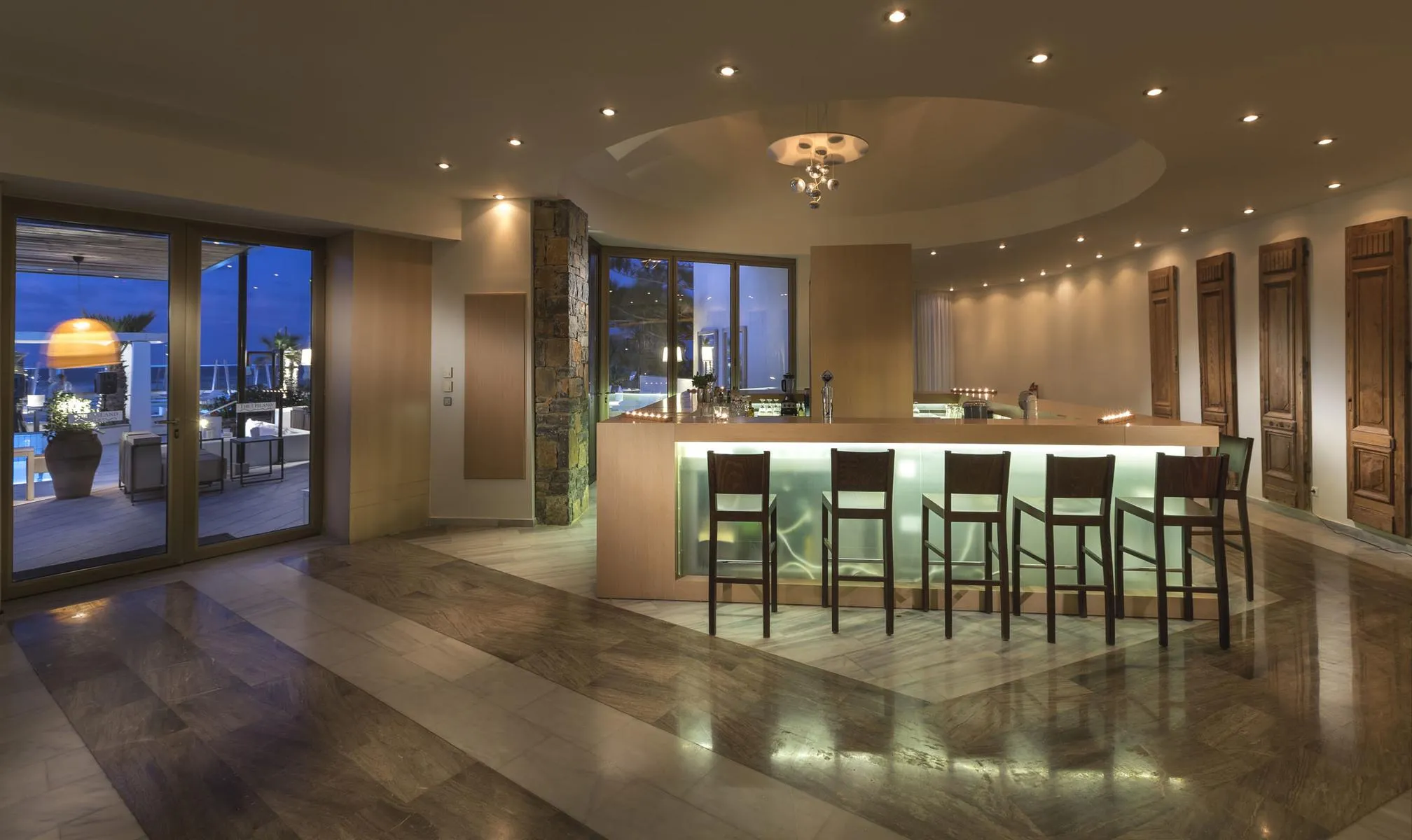 Descriere generală Hotelul The Island Hotel, care este deosebit de popular printre cei aflați în luna de miere, este situat direct pe o plajă cu nisip. Pe plajă sunt disponibile gratuit șezlonguri și umbrele de soare. Centrul turistic al stațiunii se află la aprox. 1 km. Orașul Heraklion este la aprox. 19 km (Chersonissos cca. 9 km). Magazinele sunt la aprox. 20 km de hotel, și veți găsi un supermarket la cca. 200 m. La cele mai apropiate baruri și restaurante se poate ajunge într-un timp foarte scurt. De asemenea, la cca. 18 km de hotel este un cinematograf. Există un teatru la aprox. 17 km de hotel. Există posibilitatea de a închiria mașini și motociclete. De asemenea, aveți în apropiere o stație de autobuz (cca. 800 m) cea ce vă garantează mobilitatea în vacanța dumneavoastră. Pentru îngrijiri medicale în caz de urgență, există un spital la cca. 17 km distanță. Aeroportul (CHQ) se află la aprox. 163 km. Un alt aeroport (HER) este la cca. 17 km. Facilități Hotelul de wellness dispune de 2 etaje și peste 298 camere repartizate între o clădire principală și un total de 24 clădiri secundare. Acesta oferă oaspeților săi recepție (check-in de la 15:00, check out până la 11:00), lobby cu bar, 2 lifturi, aer condiționat, minimarket, parcare (gratuită) și birou de schimb valutar. Pentru a servi masa aveți la dispoziție 3 restaurante și un snackbar. Accesul la internet WiFi este disponibil gratuit pentru oaspeții hotelului. În plus, hotelul oferă o zonă de conferințe. Pentru oaspeții cu dizabilități fizice, unitatea de cazare oferă un lift accesibil pentru scaune cu rotile și acces fără bariere. Serviciul de menaj este gratuit. Room service, spălătorie, călcat și serviciul medical sunt disponibile la un cost suplimentar. Piscină Zona exterioară a hotelului include 3 piscine cu apă dulce. La piscine sunt disponibile gratuit șezlonguri și umbrele de soare. La barul piscinei va puteți bucura de o băutura răcoritoare (deschis între orele 11:00 - 01:00). Catering Mic dejun (între orele 07:30 - 11:00) bufet suedez. Demipensiunea include micul dejun și cina. Sport/Leisure Oferte pentru sport și divertisment: Baschet, fitness, tenis de masă (gratuit), volei, biliard (contra cost), tenis (gratuit), yoga, Pilates și darts (gratuit). La cca. 8 km de hotel este un teren de golf. Oferte de wellness: Zonă de spa cu terasă la soare, saună, jacuzzi, baie turcească, hamam și masaje contra cost. Informații suplimentare Pentru anumite facilități sau activități se pot aplica taxe suplimentare. Unele servicii depind de anotimp și de condițiile climatice locale. Limbi de serviciu: engleză, germană, franceză, olandeză și greacă. Carduri de credit: Visa, American Express și Euro/MasterCard. Casual Junior Room: Cameră cu o canapea extensibilă ca pat suplimentar, pardoseală cu gresie, ceainic (gratuit) și balcon. Prosoapele se schimbă zilnic. Dimensiune: 28 m². Cool Room: Cameră cu o canapea extensibilă ca pat suplimentar, pardoseală cu gresie, ceainic (gratuit) și balcon. Prosoapele se schimbă zilnic. Dimensiune: 28 m². Casual Room: Dotate cu o canapea extensibilă ca pat suplimentar, pardoseală cu gresie, ceainic (gratuit) și balcon. Prosoapele se schimbă zilnic. Dimensiune: 28 m². Casual Room (Privater Pool): Dotate cu o canapea extensibilă ca pat suplimentar, pardoseală cu gresie, ceainic (gratuit) și balcon. Prosoapele se schimbă zilnic. Dimensiune: 28 m². Pool Casual Room: Dotate cu o canapea extensibilă ca pat suplimentar, pardoseală cu gresie, ceainic (gratuit) și balcon. Prosoapele se schimbă zilnic. Dimensiune: 28 m². Doppel Standard Zimmer (Promotion): Dotate cu pat king-size sau pat twin, o canapea extensibilă ca pat suplimentar, pardoseală cu gresie, ceainic (gratuit), balcon sau terasă, acces la internet (gratuit), seif (gratuit) și TV cu ecran plat prin satelit precum și aer condiționat controlat central (din aprilie până în octombrie). Prosoapele se schimbă zilnic. Dimensiune: 28 m². Einzelbelegung Sole Room: Cameră cu o canapea extensibilă ca pat suplimentar, pardoseală cu gresie, ceainic (gratuit) și balcon. Prosoapele se schimbă zilnic. Dimensiune: 28 m².