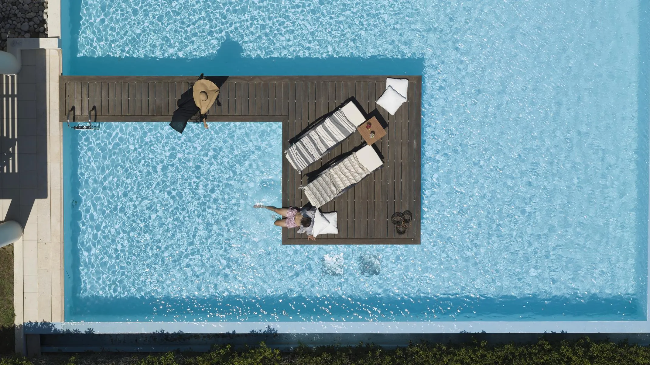 Euro / MasterCard and Visa. Double Room (Inland View): With king size bed, tiled floor, internet (for free), safe (for free) and sat TV as well as centrally controlled air conditioning (from April to October). Towels are changed daily. Double Design Room (Inland View): With king size bed, tiled floor, balcony or terrace, internet (for free), safe (for free) and sat TV as well as centrally controlled air conditioning (from April to October). Bathroom with shower (room size: 28 m²). Towels are changed daily. Deluxe Room (GardenView): With king size bed, tiled floor, balcony, kettle (for free), minibar (for a fee), internet (for free), safe (for free) and sat TV as well as centrally controlled air conditioning (from April to October). Towels are changed daily. Room size: 28 m². Deluxe Room (GardenView, With Jacuzzi): The modern furnished rooms are equipped with king size bed, sofa bed as extra bed, tiled floor, jacuzzi, balcony, kettle (for free), minibar (for a fee), internet (for free), safe (for free) and sat TV as well as centrally controlled air conditioning (from April to October). Towels are changed daily. Room size: 33 m². Deluxe Room (SeaView): With king size bed, tiled floor, kettle (for free), minibar (for a fee), internet (for free), safe (for free) and sat TV as well as centrally controlled air conditioning (from April to October). Towels are changed daily. Room size: 28 m². Deluxe Room (SeaView, With Jacuzzi): The modern furnished rooms are equipped with king size bed, sofa bed as extra bed, tiled floor, jacuzzi, balcony, kettle (for free), minibar (for a fee), internet (for free), safe (for free) and sat TV as well as centrally controlled air conditioning (from April to October). Towels are changed daily. Room size: 33 m². Premium Room (SwimUp-PoolTerrace): The modern furnished rooms are equipped with king size bed, tiled floor, shared pool, minibar (for a fee), capsule coffee machine (for free), internet (for free), safe (for free) and sat TV as well as centrally controlled air conditioning (from April to October). Towels are changed daily. Premium Room (GardenView, With Jacuzzi): The modern furnished rooms are equipped with king size bed, tiled floor, jacuzzi, balcony, kettle (for free), minibar (for a fee), internet (for free), safe (for free) and sat TV as well as centrally controlled air conditioning (from April to October). Bathroom with shower (room size: 30 m²). Towels are changed daily. Grand Suite (Private Pool ): The modern furnished rooms are equipped with king size bed, tiled floor, private pool, minibar (for a fee), capsule coffee machine (for free), internet (for free), safe (for free) and sat TV as well as centrally controlled air conditioning (from April to October). Towels are changed daily. Room size: 45 m². Grand Suite (SeaFront, Private Pool ): The modern furnished rooms are equipped with king size bed, tiled floor, private pool, balcony, minibar (for a fee), capsule coffee machine (for free), internet (for free), safe (for free) and sat TV as well as centrally controlled air conditioning (from April to October). Bathroom with bathtub. Towels are changed daily. Grand Suite (SeaFront, SwimUp-PoolTerrace): The modern furnished rooms are equipped with king size bed, tiled floor, shared pool, minibar (for a fee), capsule coffee machine (for free), internet (for free), safe (for free) and sat TV as well as centrally controlled air conditioning (from April to October). Bathroom with bathtub. Towels are changed daily.
