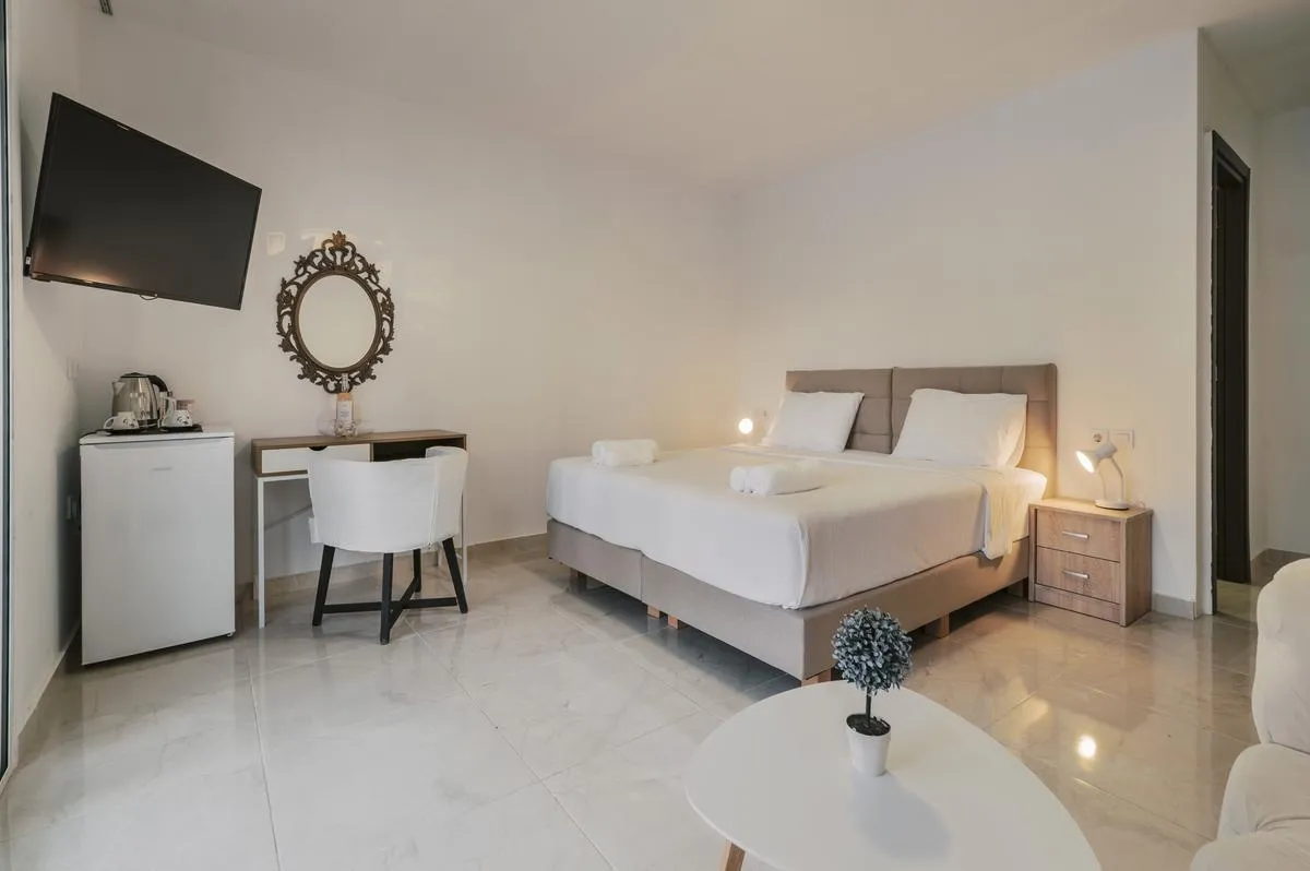 Descriere generală Hotelul Bamboo Suites (doar pentru adulți) este situat la cca. 550 m de RHODES CENTER. Veți găsi un supermarket la cca. 300 m. De asemenea, cele mai apropiate baruri și restaurante sunt la cca. 300 m. Există posibilitatea de a închiria mașini și motociclete. De asemenea, aveți în apropiere o stație de autobuz și o stație de taxi (cca. 300 m) cea ce vă garantează mobilitatea pe insulă. Pentru îngrijiri medicale în caz de urgență, există un spital la cca. 3 km distanță. Aeroportul (RHO) se află la aprox. 10 km. Facilități Hotelul, care a fost renovat în 2025, dispune de 2 etaje și peste 27 camere. Acesta oferă oaspeților săi recepție (check-in de la 15:00, check out până la 11:00), lobby, aer condiționat și parcare (posibil contra cost). Pentru a servi masa aveți la dispoziție un restaurant și un snackbar. Accesul la internet WiFi este disponibil gratuit pentru oaspeții hotelului. Piscină În grădinile acestui hotelul există o piscină cu apă dulce. La piscină sunt disponibile șezlonguri (posibil contra cost). Catering Mic dejun bufet suedez. Sport/Leisure Este disponibil: Biliard (posibil contra cost). Există serviciu de închiriere de biciclete. Informații suplimentare Pentru anumite facilități sau activități se pot aplica taxe suplimentare. Unele servicii depind de anotimp și de condițiile climatice locale. Limbi de serviciu: engleză și greacă. Carduri de credit: Visa și Euro/MasterCard. JuniorSuite (Poolblick): Cameră cu pat dublu, pat suplimentar, pardoseală cu gresie, jacuzzi, încălzire controlată centralizat, balcon sau terasă, acces la internet (posibil contra cost), seif (posibil contra cost) și TV cu ecran plat precum și aer condiționat controlat central. Baie cu cadă și duș. Dimensiune: 42 m². JuniorSuite (Poolblick, Nicht erstattbar): Cameră cu pat dublu, pat suplimentar, pardoseală cu gresie, jacuzzi, încălzire controlată centralizat, balcon sau terasă, acces la internet (posibil contra cost), seif (posibil contra cost) și TV cu ecran plat precum și aer condiționat controlat central. Baie cu cadă și duș. Dimensiune: 42 m². Suite (Balkon): Dotate cu pat dublu, pat suplimentar, pardoseală cu gresie, jacuzzi, încălzire controlată centralizat, balcon sau terasă, acces la internet (posibil contra cost), seif (posibil contra cost) și TV cu ecran plat precum și aer condiționat controlat central. Baie cu cadă și duș. Dimensiune: 42 m². Suite (Balkon Nicht erstattbar): Dotate cu pat dublu, pat suplimentar, pardoseală cu gresie, jacuzzi, încălzire controlată centralizat, balcon sau terasă, acces la internet (posibil contra cost), seif (posibil contra cost) și TV cu ecran plat precum și aer condiționat controlat central. Baie cu cadă și duș. Dimensiune: 42 m². Suite (Privater Jacuzzi - Terrasse): Cameră cu pat dublu, pat suplimentar, pardoseală cu gresie, jacuzzi, încălzire controlată centralizat, balcon sau terasă, acces la internet (posibil contra cost), seif (posibil contra cost) și TV cu ecran plat precum și aer condiționat controlat central. Baie cu cadă și duș. Dimensiune: 42 m². Suite (Privater Jacuzzi - Terrasse Nicht erstattbar): Dotate cu pat dublu, pat suplimentar, pardoseală cu gresie, jacuzzi, încălzire controlată centralizat, balcon sau terasă, acces la internet (posibil contra cost), seif (posibil contra cost) și TV cu ecran plat precum și aer condiționat controlat central. Baie cu cadă și duș. Dimensiune: 42 m². Suite (Bergblick): Cameră cu pat dublu, pat suplimentar, pardoseală cu gresie, jacuzzi, încălzire controlată centralizat, balcon sau terasă, acces la internet (posibil contra cost), seif (posibil contra cost) și TV cu ecran plat precum și aer condiționat controlat central. Baie cu cadă și duș. Dimensiune: 42 m². Suite (Bergblick, Nicht erstattbar): Cameră cu pat dublu, pat suplimentar, pardoseală cu gresie, jacuzzi, încălzire controlată centralizat, balcon sau terasă, acces la internet (posibil contra cost), seif (posibil contra cost) și TV cu ecran plat precum și aer condiționat controlat central. Baie cu cadă și duș. Dimensiune: 42 m². Suite (Poolblick): Cameră cu pat dublu, pat suplimentar, pardoseală cu gresie, jacuzzi, încălzire controlată centralizat, balcon sau terasă, acces la internet (posibil contra cost), seif (posibil contra cost) și TV cu ecran plat precum și aer condiționat controlat central. Baie cu cadă și duș. Dimensiune: 42 m². Suite (Poolblick, Nicht erstattbar): Dotate cu pat dublu, pat suplimentar, pardoseală cu gresie, jacuzzi, încălzire controlată centralizat, balcon sau terasă, acces la internet (posibil contra cost), seif (posibil contra cost) și TV cu ecran plat precum și aer condiționat controlat central. Baie cu cadă și duș. Dimensiune: 42 m².