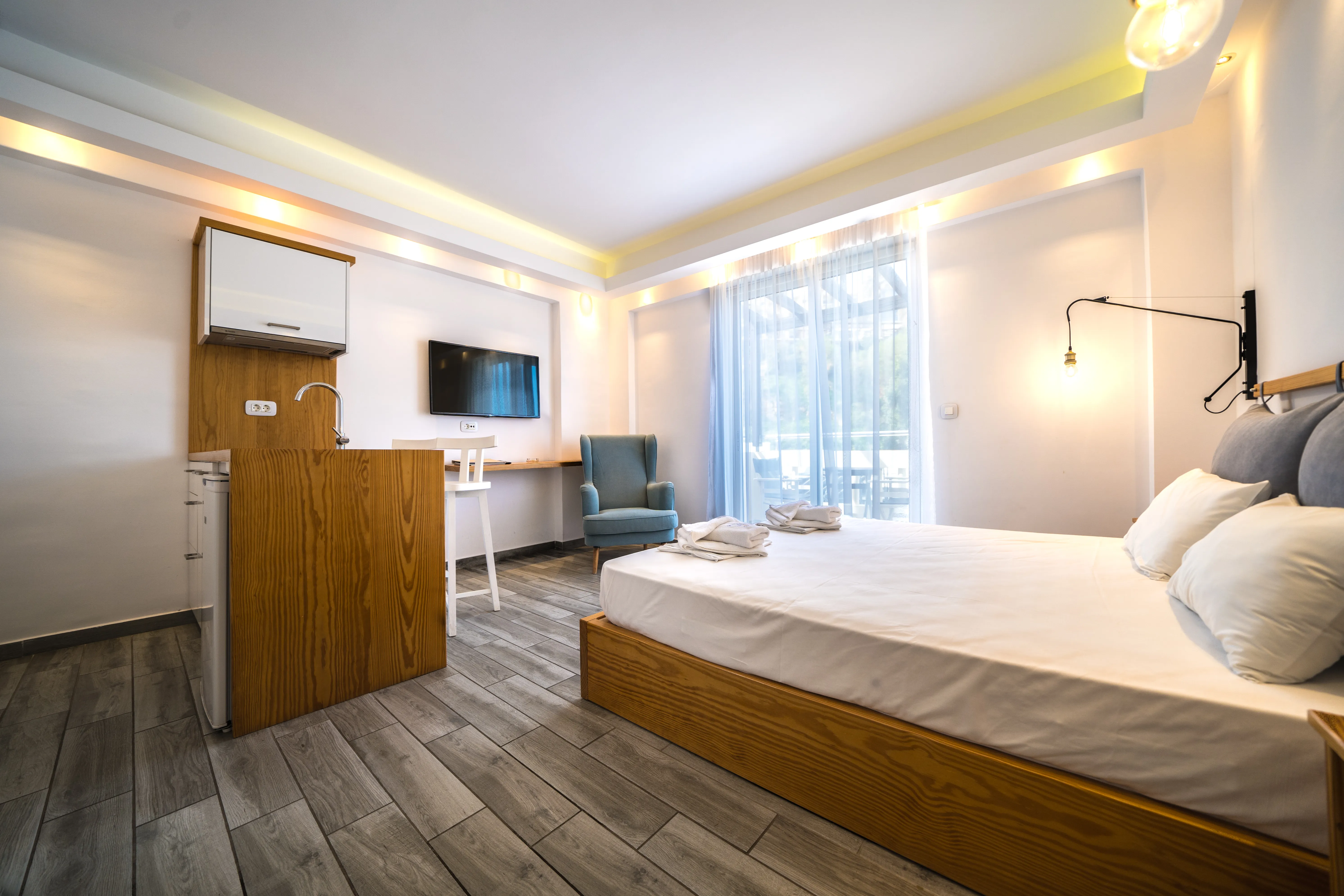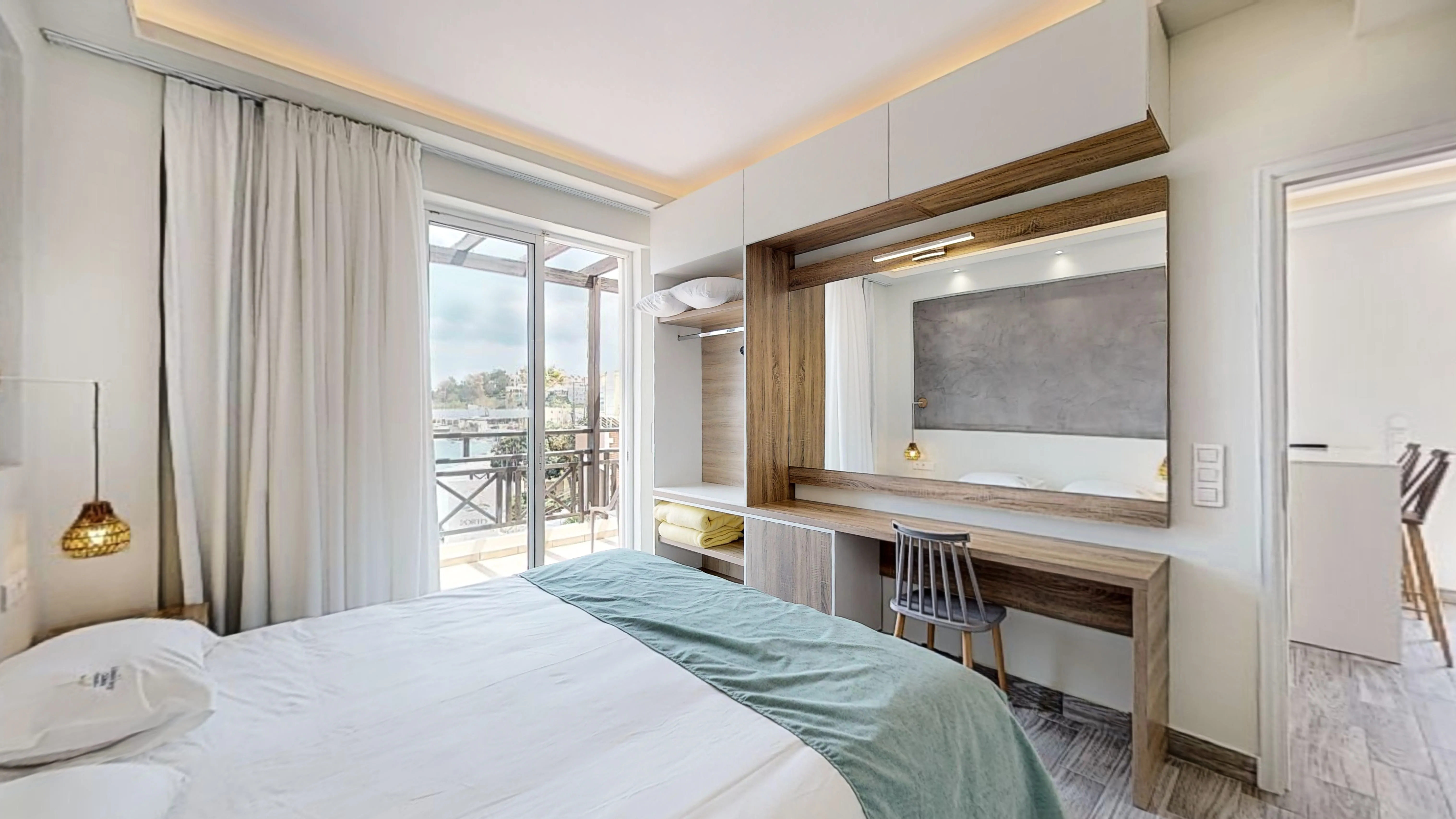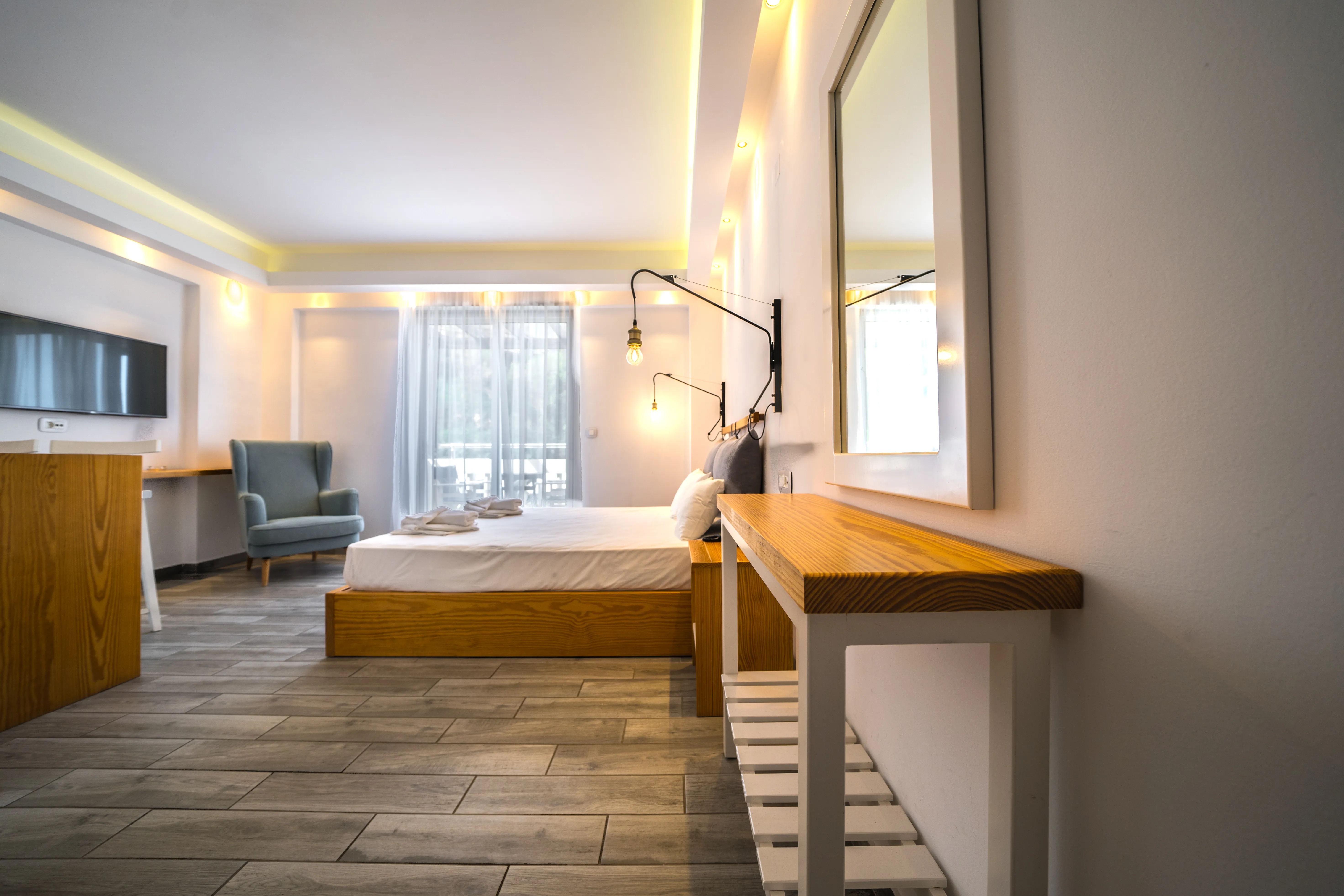 The appealing hotel is conveniently situated in Kalamaki, only 400 m away from the wonderful sandy beach and the warm waters of the Mediterranean Sea. It is only 5 km away from the picturesque city of Chania with its beautiful old town and Venetian harbour, easily reachable by public bus connection. Hotel include a children's pool, a poolside pub and a restaurant serving delicious Mediterranean cuisine prepared with fresh and healthy ingredients from Crete. This hotel is a great place for couples and families wishing to spend a nice holiday in a quiet atmosphere. The hotel is built in a modern style around the central pool and welcomes guests with traditional Cretan hospitality. The studios and flats are well-appointed and have a modern decoration. Location:2006 Year of construction; 2019 Year of most recent renovation; 48 Total number of rooms; 2 Number of floors (main building); 1 Junior suites; 1 Suites; 22 Apartments; 24 Studios Hotel type:hotel Methods of payment:American Express; MasterCard; Visa; Maestro; Visa Electrón Distances (in meters):City centre (5000); Nearest Bus / Metro Stop (100); Airport (19000); Beach (400) Room facilities (Standard room):1 Number of bedrooms; 1 Bathroom; Disability-friendly bathroom; Wi-fi; Internet access; TV; Tea and coffee making facilities ; Individually adjustable air conditioning; Individually adjustable heating ; Safe (Extra Fee); Balcony; Wheelchair-accessible; Wake-up service; Smoking rooms; Extra beds on demand Facilities:Wheelchair-accessible; Car park; 24-hour reception; Check-in hour; Check-out hour; Mobile phone coverage; Wi-fi; Laundry service; Babysitting service; Multilingual staff; Hotel safe; Lift access; Newspaper stand; Supermarket; Shop; Luggage room; Library Catering:Café; Bar; 1 Restaurant; Highchairs; Poolside snack bar Entertainment:1 Indoor freshwater pool; 1 Children’s swimming area; Sun loungers; Parasols; TV lounge