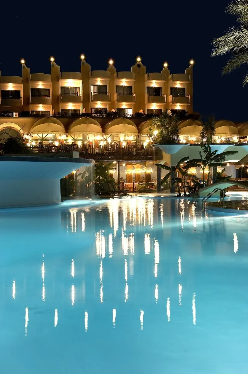 The 3-storey spa hotel consists of a main building and 2 adjoining buildings, and has 320 rooms in total. It is equipped with a reception (check-in from 15:00, check-out until 11:00), a lobby with bar, 3 lifts, an air conditioning, a mini market, a parking area (for free) as well as a money changing facility. For the meals, there are 4 restaurants (air-conditioned) and a snack bar. In a total 4 bars, you can relax in good company. WiFi is available for free. For guests dependent on a wheelchair the accommodation provides a barrier-free access and a wheelchair accessible lift. Room cleaning is free of charge. Room service, laundry / ironing service and medical service are available for a fee. Pool: In the outdoor area of the hotel you will find 7 fresh water pools with a children´s pool. Here, there are sun umbrellas and sun loungers for free available. Refreshing beverages can be consumed directly at the pool bar.