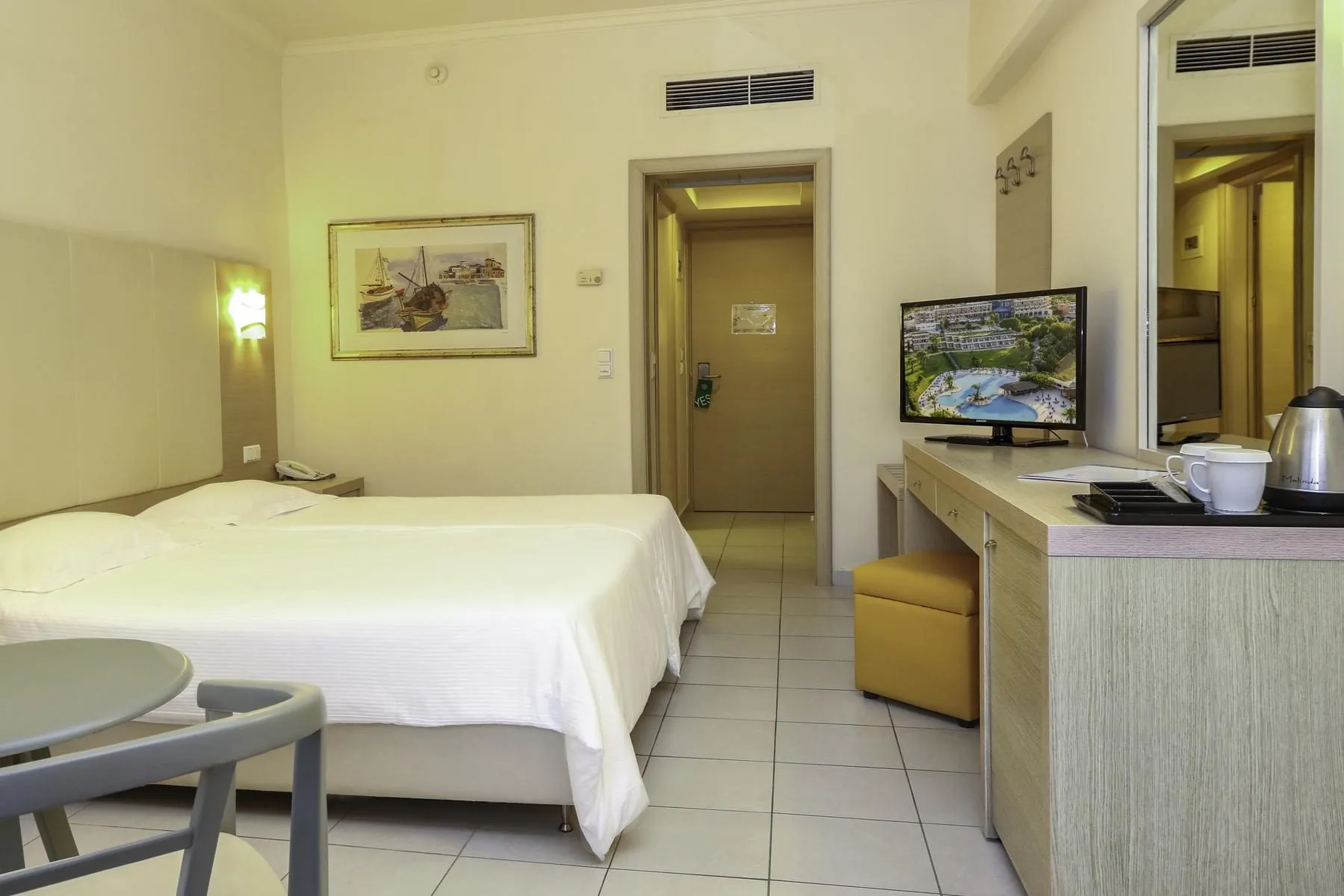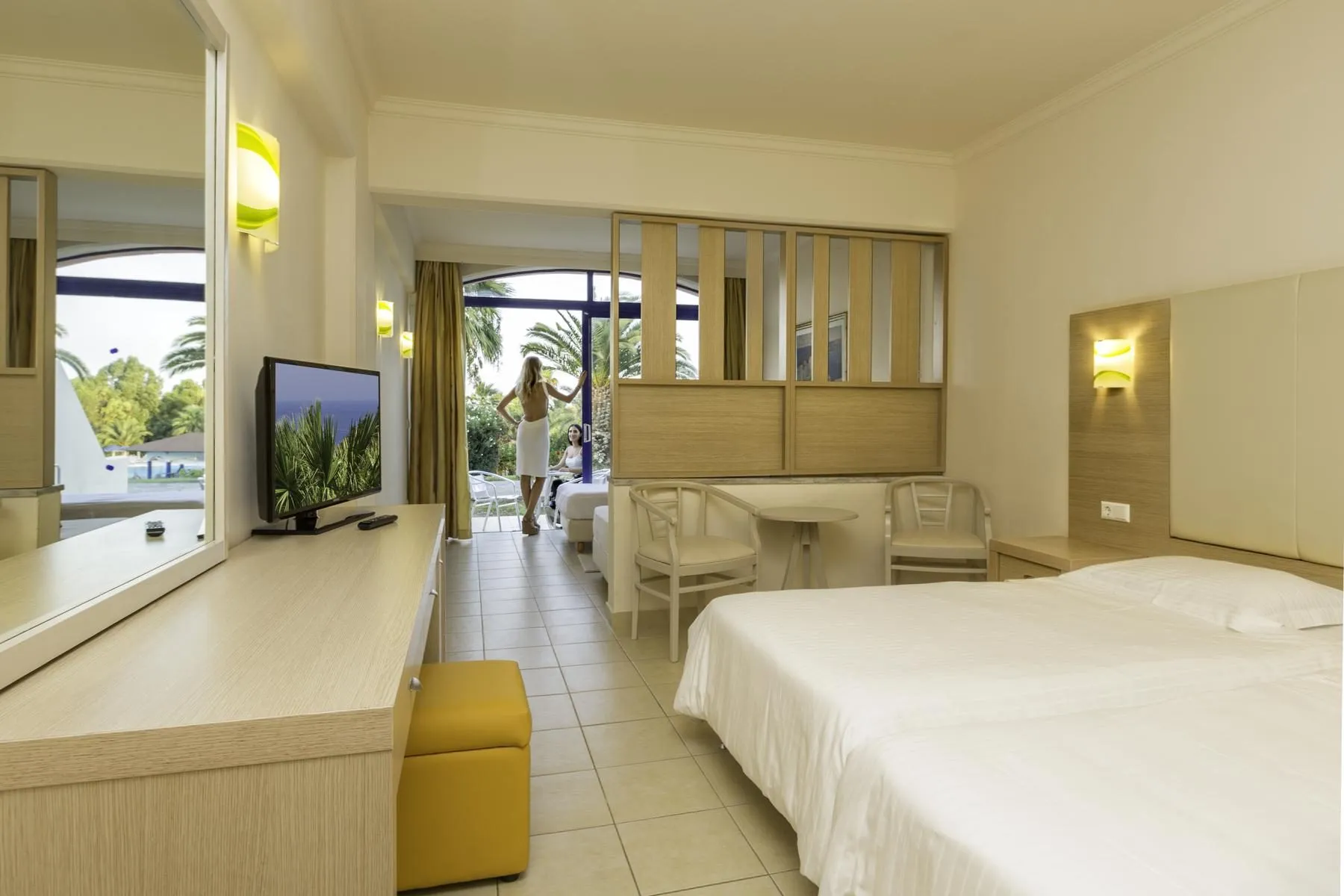Descriere generală La cca. 200 m de o plajă cu pietriș/de pietre veți găsi hotelul Kresten Palace. Pe plajă sunt disponibile gratuit șezlonguri și umbrele de soare. Centrul turistic al stațiunii se află la aprox. 1 km. Orașul Rhodes este la aprox. 6 km (Faliraki cca. 4 km, Lindos cca. 44 km). Puteți face cumpărături în diverse magazine și într-un supermarket aflat la cca. 1 km distanță. De asemenea, cele mai apropiate baruri și restaurante sunt la cca. 1 km. O discotecă aflată la aprox. 4 km vă invită la dans. De asemenea, la cca. 6 km de hotel este un cinematograf. Există posibilitatea de a închiria mașini și motociclete. De asemenea, aveți în apropiere o stație de autobuz și o stație de taxi (cca. 50 m) cea ce vă garantează mobilitatea pe insulă. Pentru îngrijiri medicale în caz de urgență, există un spital la cca. 6 km distanță. Aeroportul (RHO) se află la aprox. 18 km. Facilități Resortul dispune de 3 etaje și peste 285 camere repartizate între o clădire principală și de 3 clădiri secundare. Acesta oferă oaspeților săi recepție deschisă 24h (check-in de la 15:00, check out până la 11:00), lobby, un total de 5 lifturi, aer condiționat, minimarket, parcare (gratuită) și birou de schimb valutar. Pentru a satisface apetitul aveți la dispoziție în hotel 2 restaurante cu aer condiționat. Accesul la internet WiFi este disponibil gratuit pentru oaspeții hotelului. Pentru oaspeții care depind de un scaun cu rotile, hotelul oferă un lift accesibil pentru scaune cu rotile și acces fără bariere. Serviciul de menaj este gratuit. Spălătorie, călcat și serviciul medical sunt disponibile la un cost suplimentar. Este posibil să se perceapă un cost suplimentar pentru room service. Piscină Zona exterioară a hotelului include o piscină cu apă dulce precum și o piscină pentru copii integrată în piscina principală. La piscină sunt disponibile gratuit șezlonguri și umbrele de soare. La barul de la piscină sunt disponibile băuturi răcoritoare (deschis între orele 10:00 - 18:00). Catering Mic dejun (între orele 07:00 - 10:00) bufet suedez. Demipensiunea include micul dejun și cina. Sport/Leisure Oferte pentru sport și divertisment: Minigolf, aerobic, darts (gratuit), tenis de masă (gratuit), fitness, biliard (contra cost), tenis (gratuit) și volei pe plajă. La cca. 4 km de hotel, sunt oferite sporturi nautice (unele de către furnizori locali). Există serviciu de închiriere de biciclete. Oferte de wellness: Zonă de spa, saună și masaje contra cost. Jacuzzi posibil contra cost. Divertisment pentru adulți: program de animație cu spectacole de seară. Teren de joacă. Îngrijirea copiilor: program de animație pentru copii (de la 5 - 12 ani). Sală de jocuri. Informații suplimentare Pentru anumite facilități sau activități se pot aplica taxe suplimentare. Unele servicii depind de anotimp și de condițiile climatice locale. Limbi de serviciu: engleză, germană, franceză, rusă și greacă. Carduri de credit: Visa și Euro/MasterCard. Deluxe Familienzimmer (Meerblick, SwimUp-Pool Terrasse): Cameră cu ceainic (gratuit) și TV prin satelit precum și aer condiționat reglabil individual. Baie cu duș. Dimensiune: 35 m². Standard Familienzimmer: Cameră cu pat twin, pat suplimentar, pat pentru bebeluși (gratuit), pardoseală cu gresie, balcon sau terasă, acces la internet (gratuit), seif (contra cost) și TV prin satelit precum și aer condiționat reglabil individual. Baie cu duș. Dimensiune: 35 m². Standard Familienzimmer (Meerblick): Cameră cu pat twin, pat suplimentar, pat pentru bebeluși (gratuit), pardoseală cu gresie, balcon sau terasă, acces la internet (gratuit), seif (contra cost) și TV prin satelit precum și aer condiționat reglabil individual. Baie cu duș. Dimensiune: 35 m². Doppel Deluxe Zimmer (Meerblick, SwimUp-Pool Terrasse): Cameră cu ceainic (gratuit) și TV prin satelit precum și aer condiționat reglabil individual. Baie cu duș. Doppel Standard Zimmer: Dotate cu pat twin, pat suplimentar, pat pentru bebeluși (gratuit), pardoseală cu gresie, balcon sau terasă, acces la internet (gratuit), seif (contra cost) și TV prin satelit precum și aer condiționat reglabil individual. Baie cu duș. Dimensiune: 25 m². Doppel Standard Zimmer (Meerblick): Dotate cu pat twin, pat suplimentar, pat pentru bebeluși (gratuit), pardoseală cu gresie, balcon sau terasă, acces la internet (gratuit), seif (contra cost) și TV prin satelit precum și aer condiționat reglabil individual. Baie cu duș. Dimensiune: 25 m². Einzelbelegung Standard Zimmer: Cameră cu pat twin, pat pentru bebeluși (gratuit), pardoseală cu gresie, balcon sau terasă, acces la internet (gratuit), seif (contra cost) și TV prin satelit precum și aer condiționat reglabil individual. Baie cu duș. Dimensiune: 25 m². Einzelbelegung Standard Zimmer (Meerblick): Cameră cu pat twin, balcon sau terasă, acces la internet (gratuit) și TV prin satelit precum și aer condiționat reglabil individual. Baie cu duș. Dimensiune: 25 m².