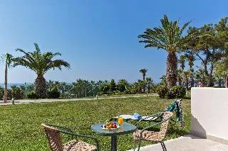 The hotel Rodos Princess Beach Resort and Spa is located approximately 50 m from a beach. The city centre is around 55,8 km away. A supermarket and other shops you reach after around 200 m. Nearby there is a disco which offers entertainment in high season. On the beach are sun loungers, sun umbrellas and beach towels available. Cold drinks are served at the bar on the beach. The air-conditioned hotel is equipped with a 24h reception (check-in is possible around the clock), a lobby bar, Wi-Fi, internet access, a lift, a shop, a hairdresser, a jacuzzi, showers and changing rooms, a first aid kit, parking spaces as well as a TV lounge. In the outdoor area you will find a supervised pool (open from May to November), where sun loungers, sun umbrellas and pool towels are available for free. Furthermore, you can relax outdoors on a terrace. Inside the hotel you can use an indoor pool. You can store your valuables in the safe, and your luggage in the hotel`s storage room. For very young guests, highchairs can be provided. For the smallest children prams can be rented in the hotel. There is also a laundry service available at an additional cost to customers. Ironing equipment can be rented at the hotel for a fee. For your comfort, in addition to the concierge service the hotel page will ensure you are looked after. If necessary, you can contact the medical centre at any time (for a fee). Guests at the accommodation can get a wake-up call from the hotel personnel. For conventions and other business meetings, the hotel offers a business centre as well as a conference area with a total of 250 seats, scanner as well as a catering service. If you want to explore the holiday region, you can use the car and motorbike rental service close to the hotel (extra fee). For guests on their honeymoon, the hotel has special offers such as special honeymoon packages. In your hotel, a lot of focus is placed on sustainability. This includes among others a central room air-conditioning. Euro/Master Card and Visa are accepted as means of payment. Due to its barrier-free facilities , such as separate, barrier-free entrances and wheelchair accessible rooms, the hotel is also suitable for wheelchair users. Catering As catering services the hotel offers all-inclusive, full board and self-catering. Breakfast is offered American, continental or from the buffet. Enjoy your lunch from the buffet. Dinner is also served as a buffet or à la carte. As part of the all-inclusive service, local alcoholic beverages (24h) are available around the clock and at no extra charge. For the meals, there are a restaurant with terrace (gluten-free and vegetarian dishes) and several bars, a 24h snackbar as well as the pool bar. The drinks menu of the hotel includes 24h international alcoholic beverages. For dinner, guests are asked to wear appropriate clothing in the restaurant. Distances