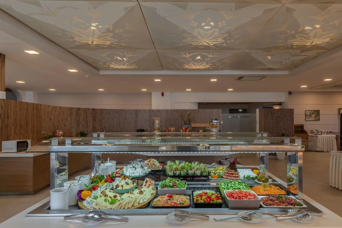Descriere generală Hotelul Themis Beach este situat in Kokkini Hani, în apropierea unei plaje private cu nisip. Pe plajă sunt disponibile umbrele de soare și șezlonguri la un cost suplimentar. Locul de cazare se află la doar câțiva metri de centrul turistic al orașului. Cel mai apropiat oraș este KOKKINI CHANI (HERAKLION cca. 15 km, CHERSONISSOS cca. 10 km). Veți găsi un supermarket la cca. 100 m. La cele mai apropiate baruri și restaurante se poate ajunge într-un timp foarte scurt. Există posibilitatea de a închiria mașini și motociclete. De asemenea, aveți în apropiere o stație de autobuz și o stație de taxi (cca. 50 m) cea ce vă vă oferă mobilitate în stațiune. Pentru îngrijiri medicale în caz de urgență, există un spital la cca. 15 km distanță. Aeroportul (CHQ) se află la aprox. 156 km. Un alt aeroport (HER) este la cca. 10 km. Facilități Resortul, care a fost renovat în 2025, dispune de 3 etaje și peste 158 camere. Acesta oferă oaspeților săi recepție (check-in de la 15:00, check out până la 11:00), lobby cu bar, 3 lifturi, aer condiționat, seif (contra cost), magazin, teatru și parcare (gratuită). Pentru a servi masa vă stau la dispoziție un restaurant cu aer condiționat. Accesul la internet WiFi este disponibil gratuit pentru oaspeții hotelului. Serviciul de menaj și room service sunt gratuite. Spălătorie și serviciul medical sunt disponibile la un cost suplimentar. Piscină În grădinile acestui hotelul există o piscină cu apă sărată precum și o piscină pentru copii integrată în piscina principală. Acolo sunt disponibile gratuit șezlonguri și umbrele de soare. La barul de la piscină sunt disponibile băuturi răcoritoare (deschis între orele 10:00 - 18:00). Catering Mic dejun (între orele 07:30 - 10:00) bufet suedez. Demipensiunea include micul dejun și cina. All Inclusive: micul dejun, prânzul și cina. Cocktailuri. Băuturi răcoritoare (07:30 - 23:00), cafea și ceai (10:00 - 18:00), prăjituri și produse de patiserie (16:30 - 17:30), aperitive (10:00 - 18:00), bere (10:00 - 23:00), vin (10:00 - 23:00), băuturi alcoolice naționale (10:00 - 23:00), anumite băuturi alcoolice importate (între orele 10:00 - 01:00, în anumite restaurante sau baruri) și internet gratuit. Sport/Leisure Oferte pentru sport și divertisment: Tenis (gratuit), tenis de masă (gratuit), volei pe plajă și biliard (contra cost). La cca. 100 m de hotel, sunt oferite sporturi nautice precum jet ski și schi nautic (unele de către furnizori locali). La cca. 15 km de hotel este un teren de golf. Există serviciu de închiriere de biciclete. Oferte de wellness: Masaje posibil contra cost. Divertisment pentru adulți: spectacole de seară și muzică live. Pentru distracția celor mici există un loc de joacă. Informații suplimentare Pentru anumite facilități sau activități se pot aplica taxe suplimentare. Unele servicii depind de anotimp și de condițiile climatice locale. Limbi de serviciu: engleză, germană, franceză și greacă. Carduri de credit: Euro/MasterCard și Visa. Familienzimmer: Camerele primitoare sunt echipate cu pat supraetajat ca pat suplimentar, pat pentru bebeluși (posibil contra cost), pardoseală cu gresie, ceainic (gratuit), balcon sau terasă, acces la internet (gratuit), seif (contra cost) și TV cu ecran plat prin satelit precum și aer condiționat reglabil individual. Baie cu duș. Prosoapele se schimbă de 3 ori pe săptămână, lenjeria de pat de 2 ori pe săptămână. Dimensiune: 25 - 30 m². JuniorSuite (Meerblick): Camerele moderne sunt echipate cu pat supraetajat ca pat suplimentar, pat pentru bebeluși (posibil contra cost), pardoseală cu gresie, ceainic (gratuit), balcon sau terasă, acces la internet (gratuit), seif (contra cost) și TV cu ecran plat prin satelit precum și aer condiționat reglabil individual. Baie cu duș. Prosoapele se schimbă de 3 ori pe săptămână, lenjeria de pat de 2 ori pe săptămână. Dimensiune: 25 - 30 m². Einzel Zimmer (Gartenblick): Camerele primitoare sunt echipate cu pat supraetajat ca pat suplimentar, pat pentru bebeluși (posibil contra cost), pardoseală cu gresie, ceainic (gratuit), balcon sau terasă, acces la internet (gratuit), seif (contra cost) și TV cu ecran plat prin satelit precum și aer condiționat reglabil individual. Baie cu duș. Prosoapele se schimbă de 3 ori pe săptămână, lenjeria de pat de 2 ori pe săptămână. Dimensiune: 25 - 30 m². Einzel Zimmer (Meerblick): Camerele primitoare sunt echipate cu pat supraetajat ca pat suplimentar, pat pentru bebeluși (posibil contra cost), pardoseală cu gresie, ceainic (gratuit), balcon sau terasă, acces la internet (gratuit), seif (contra cost) și TV cu ecran plat prin satelit precum și aer condiționat reglabil individual. Baie cu duș. Prosoapele se schimbă de 3 ori pe săptămână, lenjeria de pat de 2 ori pe săptămână. Dimensiune: 25 - 30 m². Doppel Zimmer (Gartenblick): Camerele primitoare sunt echipate cu pat supraetajat ca pat suplimentar, pat pentru bebeluși (posibil contra cost), pardoseală cu gresie, ceainic (gratuit), balcon sau terasă, acces la internet (gratuit), seif (contra cost) și TV cu ecran plat prin satelit precum și aer condiționat reglabil individual. Baie cu duș. Prosoapele se schimbă de 3 ori pe săptămână, lenjeria de pat de 2 ori pe săptămână. Dimensiune: 25 - 30 m². Doppel Zimmer (Meerblick): Camerele primitoare sunt echipate cu pat supraetajat ca pat suplimentar, pat pentru bebeluși (posibil contra cost), pardoseală cu gresie, ceainic (gratuit), balcon sau terasă, acces la internet (gratuit), seif (contra cost) și TV cu ecran plat prin satelit precum și aer condiționat reglabil individual. Baie cu duș. Prosoapele se schimbă de 3 ori pe săptămână, lenjeria de pat de 2 ori pe săptămână. Dimensiune: 25 - 30 m².