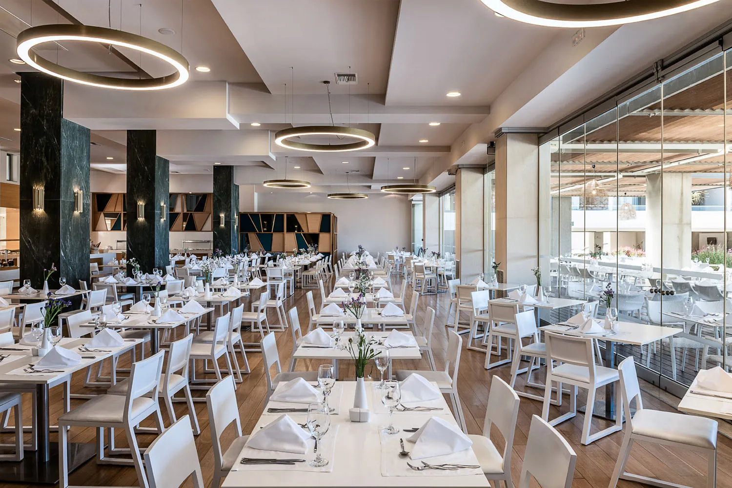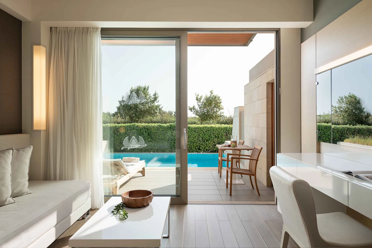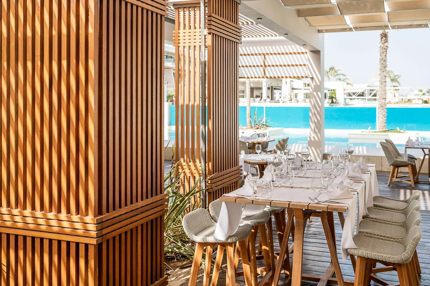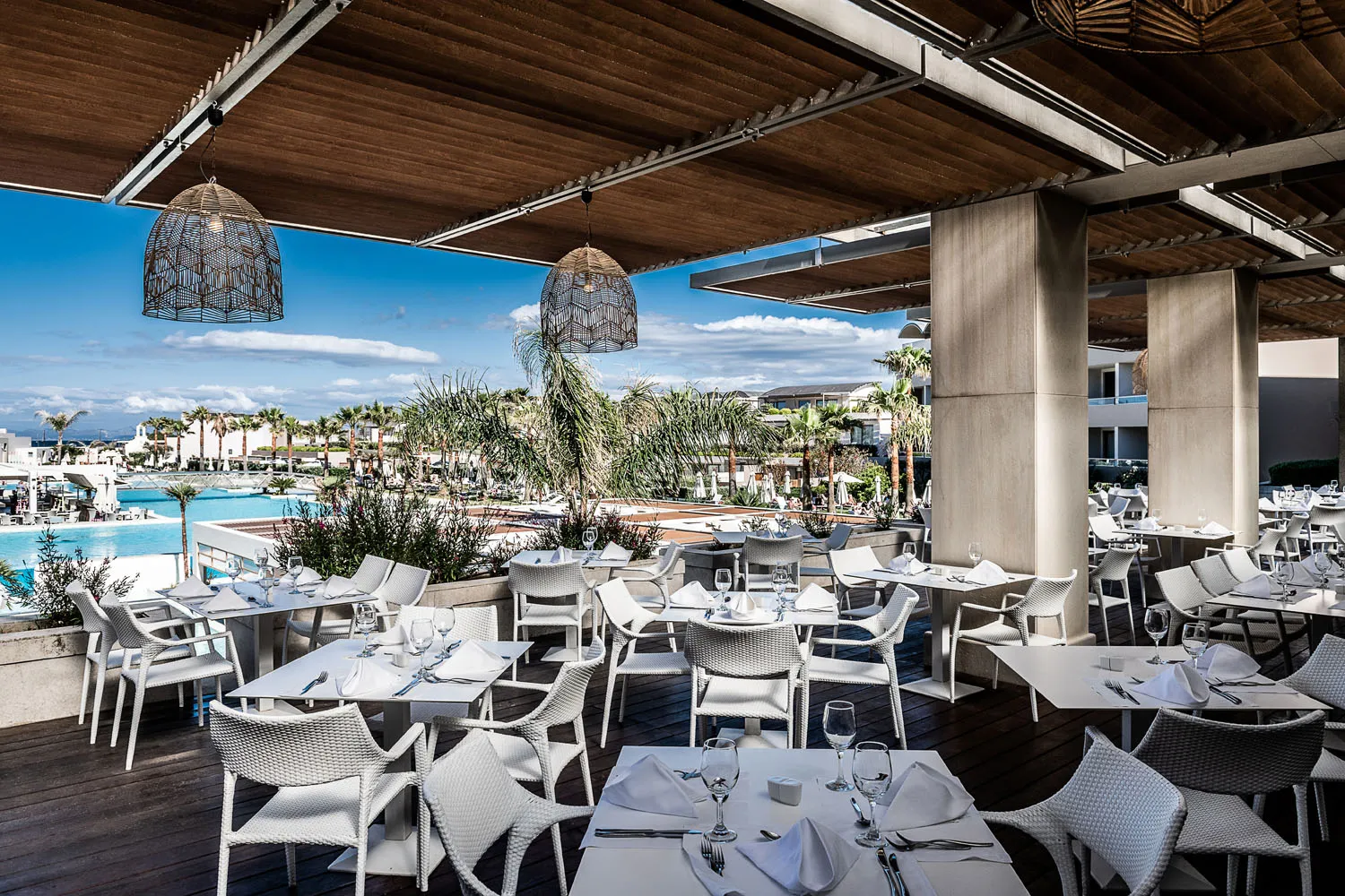 Avra Imperial Hotel combines simplicity with luxury and innovation. It offers excellent facilities and impeccable services. Guests enjoy remarkable facilities created to provide a unique sense of hospitality for the whole family. In Avra Imperial Rooms & Suites, sophistication meets comfort and contemporary design meets ancient-inspired architecture, creating an exquisite and luxurious yet simple and practical setting. Avra Imperial Hotel is the ideal setting for combining business with pleasure. Featuring a state-of-the-art conference center, Avra Imperial is the ultimate venue for corporate and private events. Enhance an inner glow in the fully equipped wellness center. The unique atmosphere of the APIVITA Spa will soothe all the senses and take guests to new levels of relaxation. Surrounded by fragrant gardens and palm trees, with a spacious, welcoming pool lounge and three stunningly beautiful swimming pools for adults, two pools for children, and an indoor heated pool for year-round enjoyment, Avra Imperial Hotel in Chania ensures a truly relaxing retreat in the enchanting island of Crete. The hotel's stunning swimming pools and extensive sun-kissed terraces, complete with two incredible pool lounges, provide the perfect setting for refreshing swims and relaxation. The dedicated staff will be serving guests refreshing drinks and cocktails or freshly prepared snacks. The little ones will be thrilled by the water games, and the private or shared swimming pools will come "to save the day". With 118 rooms and suites featuring private or shared pools, Avra Imperial Hotel offers an unparalleled experience. Avra Imperial is a beach hotel in Chania Crete, located right next to the wonderful beach of Kolymvari, one of the best and easily accessible beaches located close to Chania city. Featuring fine sand and pebbles, Kolymvari beach is well-known for its unparalleled beauty. Kolymvari beach is renowned for its untouched beauty and crystal-clear waters, offering breathtaking views of the picturesque Rodopou peninsula to the west and the Thodorou islet, a preservation area of the Cretan wild goat, widely known as Kri-kri. The beach's tranquil atmosphere is the perfect setting for unwinding and enjoying the breathtaking Cretan Sea. For those who want to soak up the sun with a cocktail in hand, the sophisticated Avra Seaside Restaurant Bar is the perfect spot, right next to the beach.