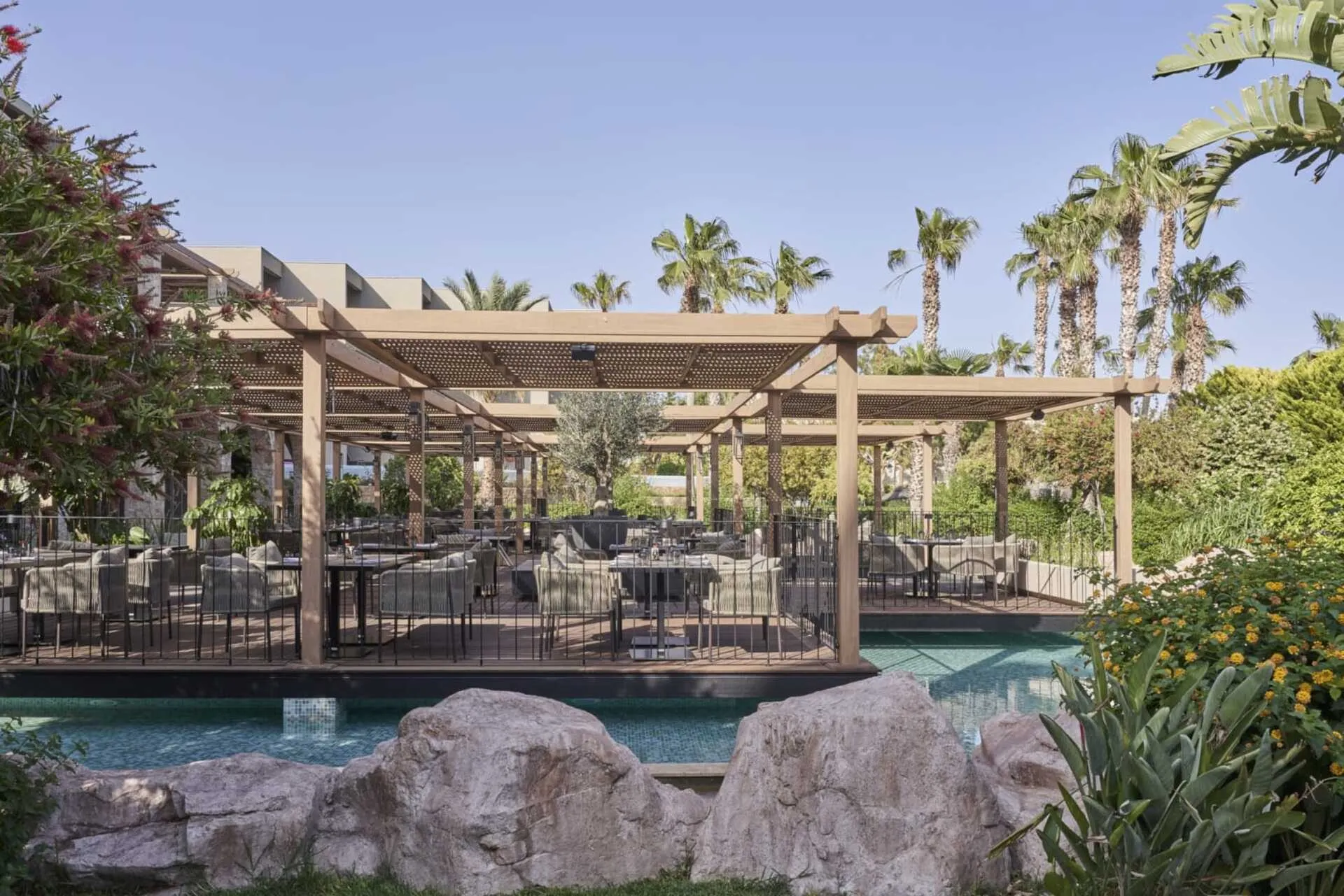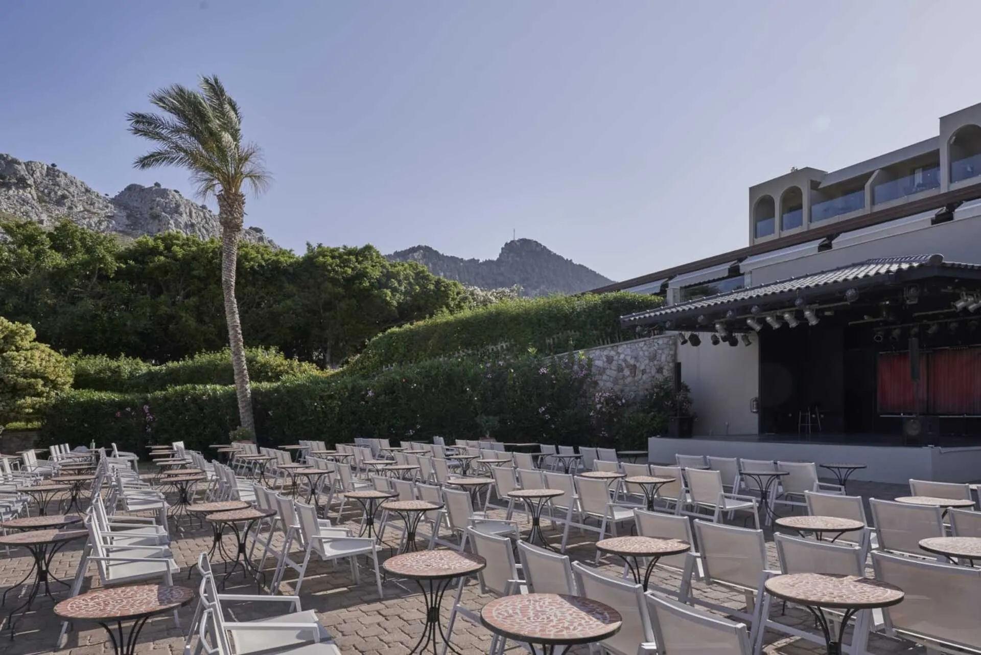 The 5 star accommodation Atlantica Aegean Blue is located approximately 1 km from a public rocky beach. The nearest bars and restaurants can be found at a distance of around 3 km. The old town is around 30 km away. The nearest shops you can reach within around 5 km, a supermarket is around 3 km away. On the beach are beach towels available. The seasonally air-conditioned hotel is equipped with a 24h reception, a lobby bar, Wi-Fi, internet access, 3 lifts, a supermarket, a kiosk and other shops, a boutique, a hairdresser, a jacuzzi, showers and changing rooms, a first aid kit, parking spaces as well as a TV lounge with satellite TV. In the outdoor area you will find a garden as well as a seasonally heated and supervised pool that is open seasonally (open all year), where sun loungers, sun umbrellas and pool towels are available for free. There is also a children's pool with 5 water slides. Furthermore, outside you can find a terrace. You can store your valuables in the safe, and your luggage in the hotel`s storage room. For the young hotel guests there is a playground. Highchairs and kid`s chairs are available for a fee. Cots are available. For the smallest children prams can be rented in the hotel. There is also a laundry service available at an additional cost to customers. Ironing equipment can be rented at the hotel for a fee. If necessary, you can contact the medical centre (for a fee). Guests at the accommodation can get a wake-up call from the hotel personnel. The energy supply is 220 Volts. If you want to explore the holiday region, you can use the car rental service close to the hotel (extra fee). For guests on their honeymoon, the hotel has special offers such as special honeymoon packages, champagne, sparkling wine or a basket of fruit in the room. In your hotel, a lot of focus is placed on sustainability. This includes waste segregation in the rooms, the hotel`s own recycling bins, the provision of soap and shampoo dispensers and ecological meals. That is why the hotel Atlantica Aegean Blue was also awarded a sustainability certificate. American Express, Euro/Master Card and Visa are accepted as means of payment. Due to its barrier-free facilities , such as barrier-free entrances, wheelchair accessible rooms, a wheelchair accessible lift and wheelchair-accessible bathrooms, the hotel is also suitable for wheelchair users. Catering As catering services the hotel offers all-inclusive. Breakfast is offered continental or from the buffet (extras on request). Enjoy your lunch from the buffet with starters, salads and desserts (extras on request). Dinner is also served as a buffet or à la carte with starters, salads and desserts (extras on request). All Inclusive Light includes coffee & tea, cake & pastries, beer, wine as well as local alcoholic beverages. When booking all-inclusive, one welcome drink and one meal in the à la carte restaurant are included. As part of the all-inclusive service, water (24h) is available around the clock and at no extra charge. For the meals, there are a buffet restaurant with terrace (Italian, gluten-free and vegetarian dishes) and several bars as well as the pool bar. The drinks menu of the hotel includes water, soft drinks, coffee and tea, beer and wine. Distances