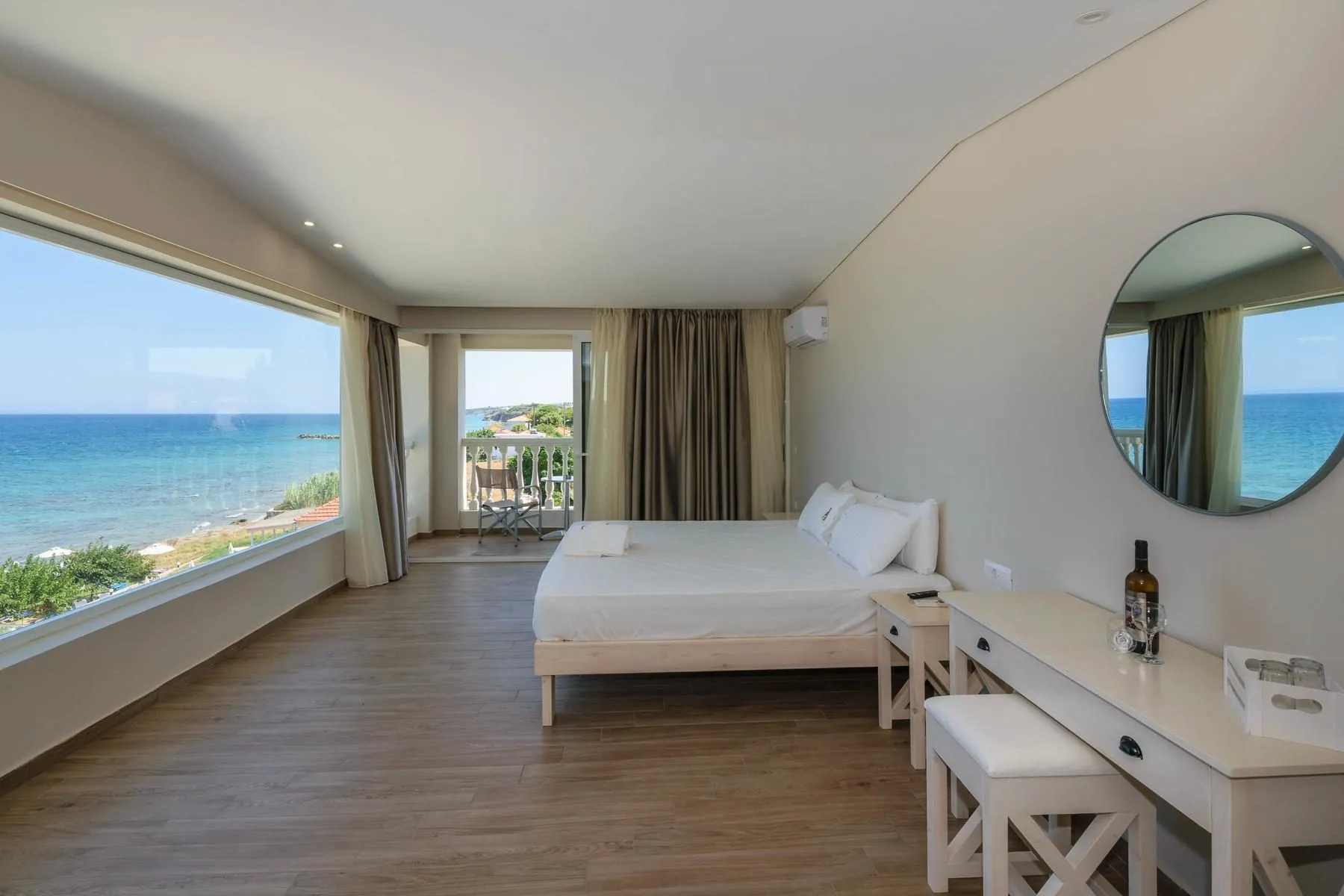 Descriere generală Aproape de o plajă private cu nisip/pietriș/cu stânci/de pietre veți găsi hotelul Belussi Beach Hotel, care este deosebit de popular printre cei aflați în luna de miere. Pe plajă sunt disponibile gratuit șezlonguri și umbrele de soare. Centrul turistic al orașului se află la aprox. 4 km. Orașul Zakynthos este la aprox. 12 km (Tsilivi cca. 4 km). Magazinele sunt la aprox. 4 km de hotel, și un supermarket este la cca. 1 km. De asemenea, cele mai apropiate baruri și restaurante sunt la cca. 4 km. O discotecă aflată la aprox. 4 km vă invită la dans. Următoarele atracții pot fi accesate de la hotel: Shipwrek (cca. 25 km), Blue Caves (cca. 25 km), keri caves (cca. 25 km) și Xigia beach (cca. 15 km). Există posibilitatea de a închiria mașini și motociclete. De asemenea, aveți în apropiere o stație de autobuz (cca. 100 m) și o stație de taxi cea ce vă garantează mobilitatea pe insulă. Pentru îngrijiri medicale în caz de urgență, există un spital la cca. 10 km distanță. Aeroportul (ZTH) se află la aprox. 12 km. Facilități Încântătorul hotel dispune de 2 etaje și peste 85 camere repartizate între o clădire principală și un total de 6 clădiri secundare. Acesta oferă oaspeților săi recepție (check-in de la 14:00, check out până la 11:00), lobby, lift, aer condiționat, seif (contra cost), chioșc, minimarket, alte magazine și parcare (gratuită). Pentru a satisface apetitul vă stau la dispoziție un restaurant cu aer condiționat și un snackbar. Accesul la internet WiFi este disponibil gratuit pentru oaspeții hotelului. Pentru oaspeții care depind de un scaun cu rotile, hotelul oferă un lift accesibil pentru scaune cu rotile și acces fără bariere. Room service și spălătorie sunt disponibile la un cost suplimentar. Este posibil să se perceapă un cost suplimentar pentru călcat. Piscină Zona exterioară a hotelului include o piscină cu apă dulce (deschisă din aprilie până în octombrie). Acolo sunt disponibile gratuit șezlonguri și umbrele de soare. Un bar lângă piscină oferă oaspeților băuturi răcoritoare (deschis între orele 11:00 - 22:45). Catering Mic dejun (între orele 07:30 - 10:00) bufet suedez. Demipensiunea Plus include micul dejun și cina. All Inclusive: Cafea și ceai (07:30 - 23:00) și băuturi alcoolice naționale (10:00 - 23:00). Sport/Leisure Există serviciu de închiriere de biciclete. În plus parcare pentru biciclete (gratuit). Oferte de wellness: terasă la soare. Informații suplimentare Pentru anumite facilități sau activități se pot aplica taxe suplimentare. Unele servicii depind de anotimp și de condițiile climatice locale. Limbi de serviciu: engleză, germană, franceză, italiană, rusă și greacă. Carduri de credit: Visa, American Express, cecuri de călătorie, JCB, Diners Club, card EC și Euro/MasterCard. Standard Familienzimmer (Landschaftsblick): Cameră cu pat twin sau pat single, o canapea extensibilă ca pat suplimentar, pat pentru bebeluși (gratuit), încălzire reglabilă individual, ceainic (contra cost), minibar (contra cost), balcon sau terasă, acces la internet (gratuit), seif (contra cost), aparat de cafea cu capsule (contra cost), TV prin satelit și canale locale precum și aer condiționat reglabil individual (din iunie până în octombrie). Baie cu duș. Prosoapele se schimbă zilnic, lenjeria de pat de 2 ori pe săptămână. Dimensiune: 25 - 40 m². Standard Familienzimmer (Seitlicher Meerblick): Dotate cu pat twin sau pat single, o canapea extensibilă ca pat suplimentar, pat pentru bebeluși (gratuit), încălzire reglabilă individual, ceainic (contra cost), minibar (contra cost), balcon sau terasă, acces la internet (gratuit), seif (contra cost), aparat de cafea cu capsule (contra cost), TV prin satelit și canale locale precum și aer condiționat reglabil individual (din iunie până în octombrie). Baie cu duș. Prosoapele se schimbă zilnic, lenjeria de pat de 2 ori pe săptămână. Dimensiune: 25 - 40 m². JuniorSuite (Meerblick): Cameră cu pat queen-size, pat king-size, pat dublu, pat twin sau pat single, o canapea extensibilă ca pat suplimentar, pat pentru bebeluși (gratuit), încălzire reglabilă individual, ceainic (contra cost), minibar (contra cost), balcon sau terasă, acces la internet (gratuit), seif (contra cost), aparat de cafea cu capsule (contra cost), TV prin satelit și canale locale precum și aer condiționat reglabil individual (din iunie până în octombrie). Baie cu duș. Prosoapele se schimbă zilnic, lenjeria de pat de 2 ori pe săptămână. Dimensiune: 25 - 40 m². Standard Zimmer (Landschaftsblick): Dotate cu pat twin sau pat single, o canapea extensibilă ca pat suplimentar, pat pentru bebeluși (gratuit), încălzire reglabilă individual, ceainic (contra cost), minibar (contra cost), balcon sau terasă, acces la internet (gratuit), seif (contra cost), aparat de cafea cu capsule (contra cost), TV prin satelit și canale locale precum și aer condiționat reglabil individual (din iunie până în octombrie). Baie cu duș. Prosoapele se schimbă zilnic, lenjeria de pat de 2 ori pe săptămână. Dimensiune: 25 - 40 m². Standard Zimmer (Seitlicher Meerblick): Dotate cu pat twin sau pat single, o canapea extensibilă ca pat suplimentar, pat pentru bebeluși (gratuit), încălzire reglabilă individual, ceainic (contra cost), minibar (contra cost), balcon sau terasă, acces la internet (gratuit), seif (contra cost), aparat de cafea cu capsule (contra cost), TV prin satelit și canale locale precum și aer condiționat reglabil individual (din iunie până în octombrie). Baie cu duș. Prosoapele se schimbă zilnic, lenjeria de pat de 2 ori pe săptămână. Dimensiune: 25 - 40 m². Superior Zimmer (Landschaftsblick): Dotate cu pat twin sau pat single, o canapea extensibilă ca pat suplimentar, pat pentru bebeluși (gratuit), încălzire reglabilă individual, ceainic (contra cost), minibar (cont